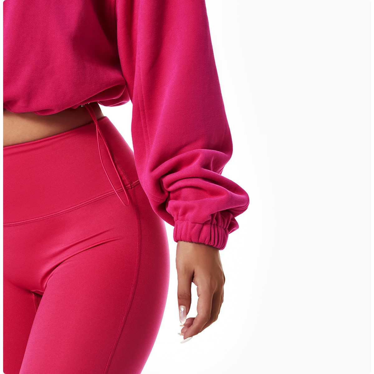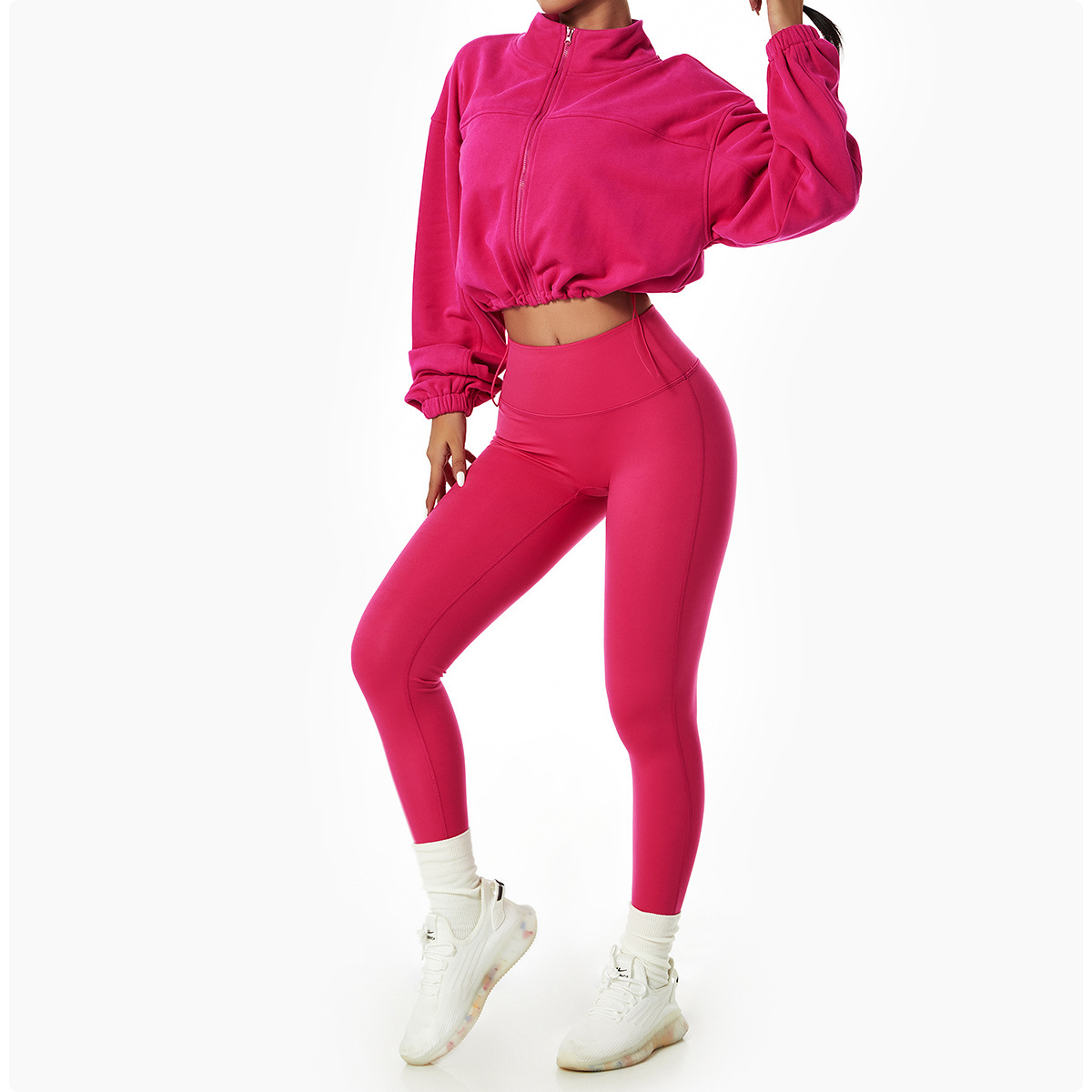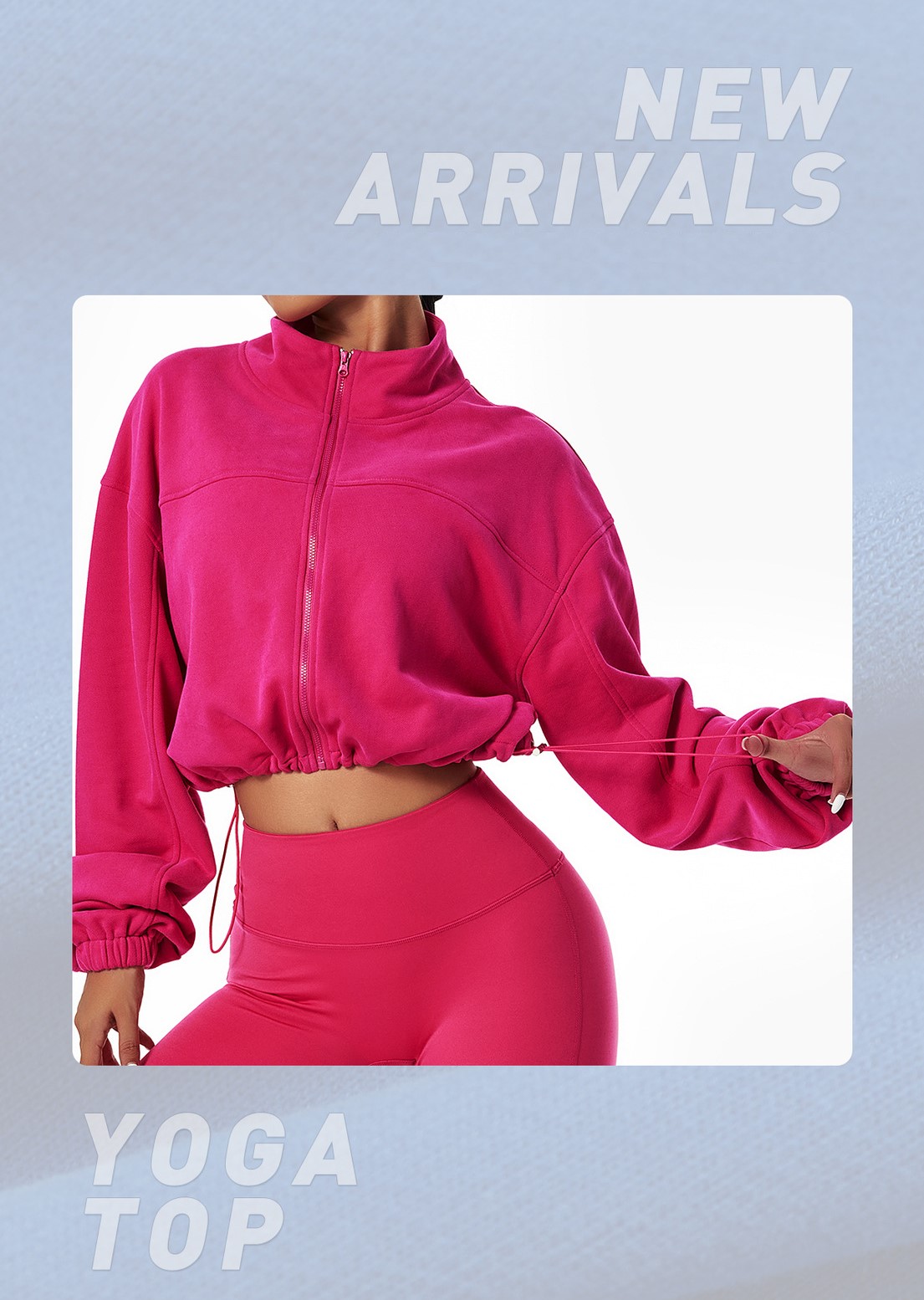 Women loose long sleeve sports zip sweatshirts outdoor running training drawstring hem crop coats