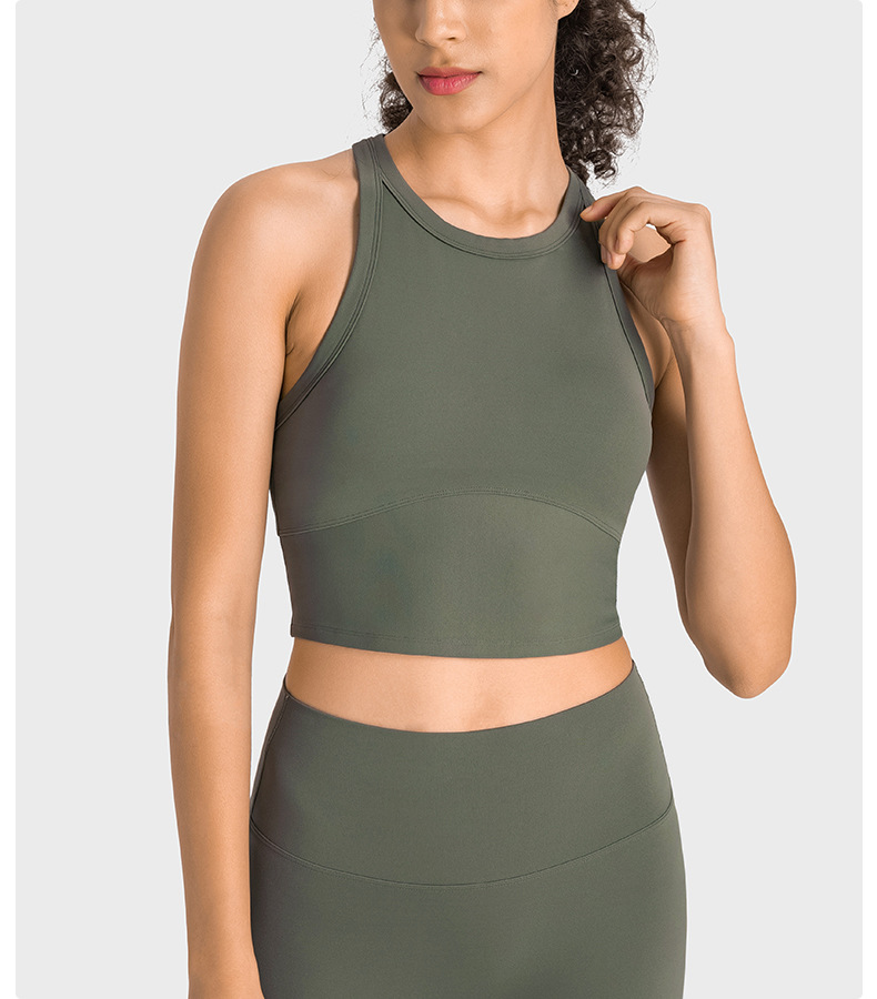 Women padded yoga tank top high neck racerback sleeveless gym running sports bra crop top