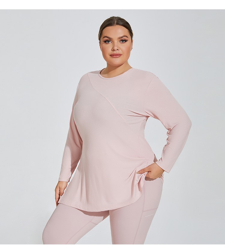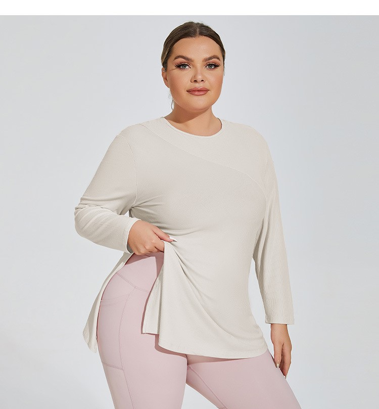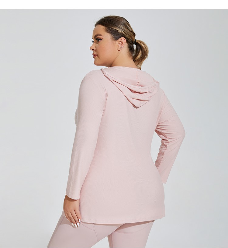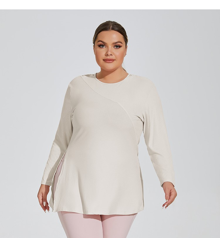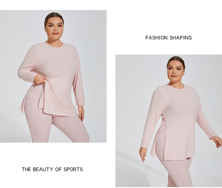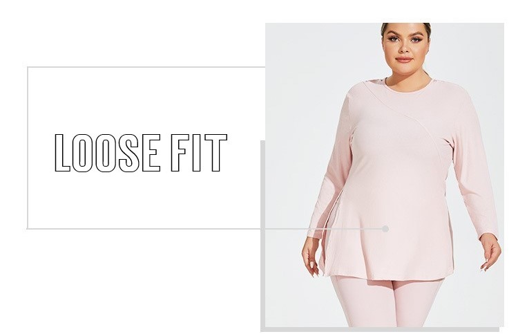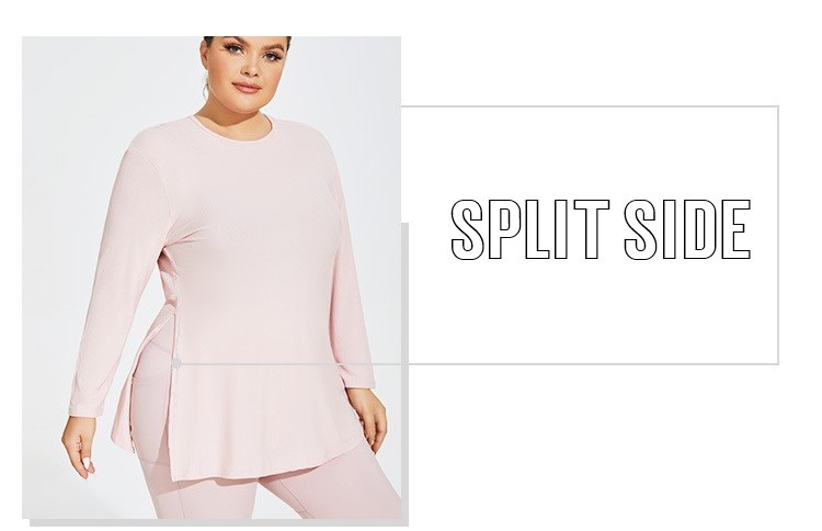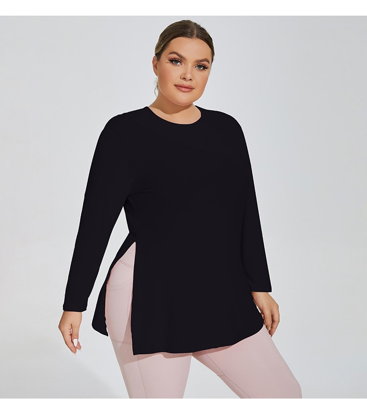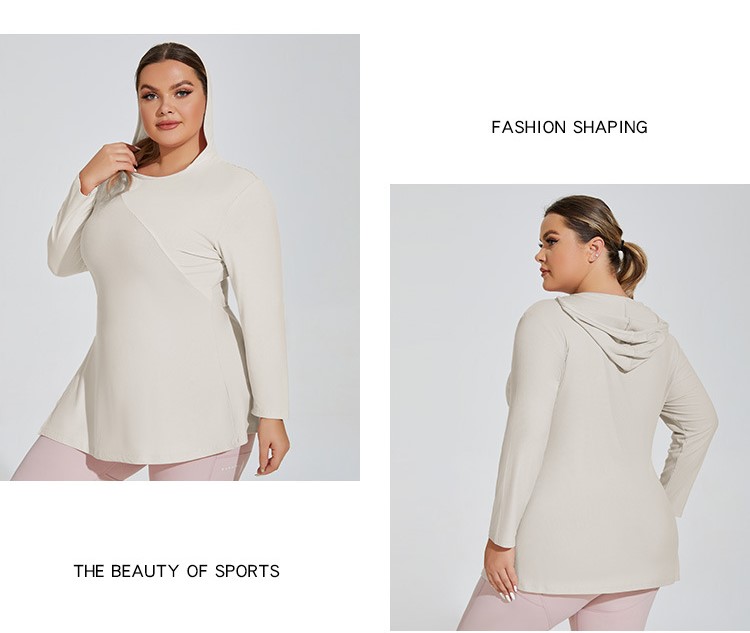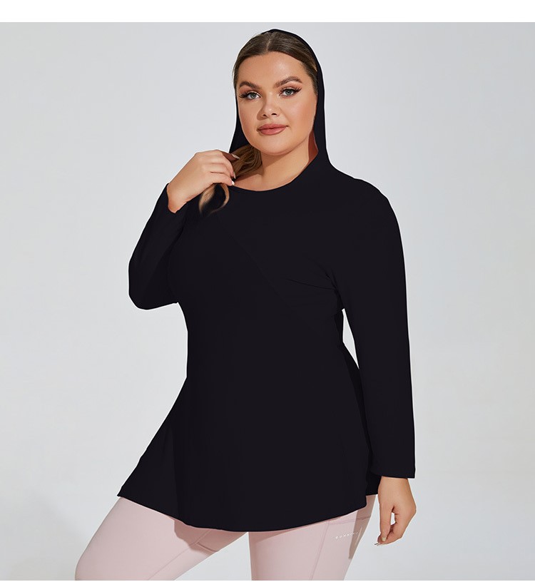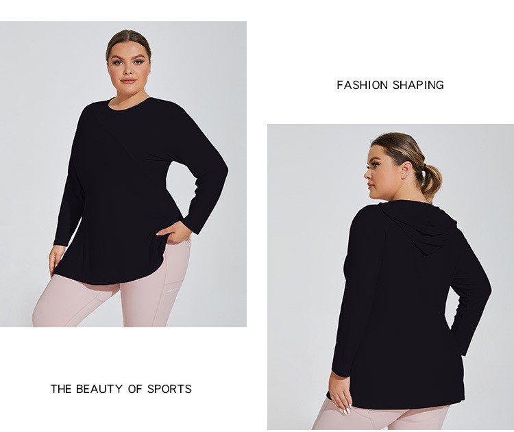 Women plus size loose fit split side sports top yoga long sleeve hooded running oversized t-shirt