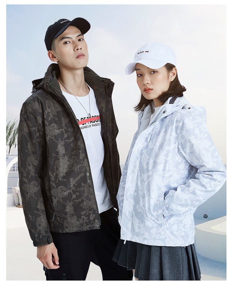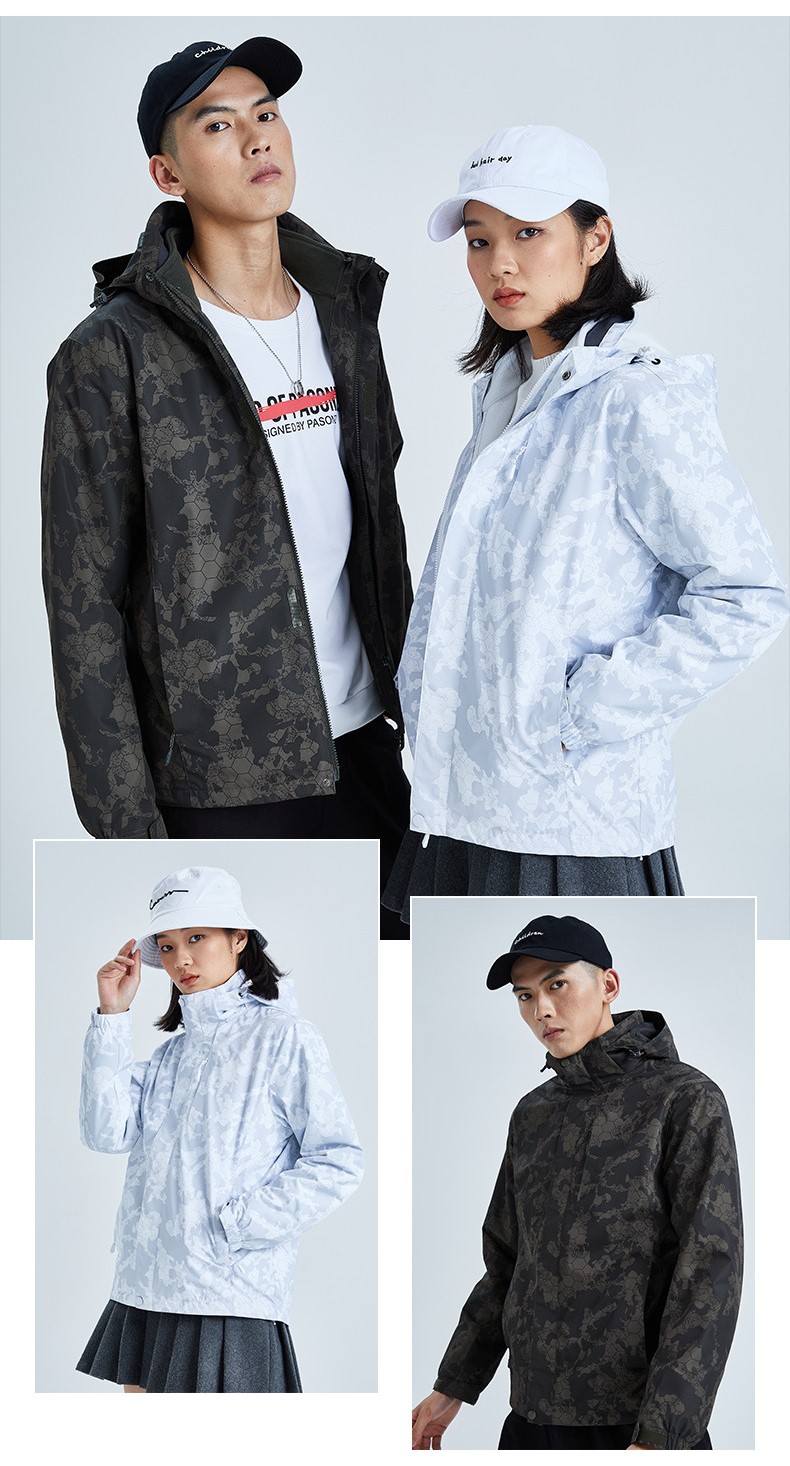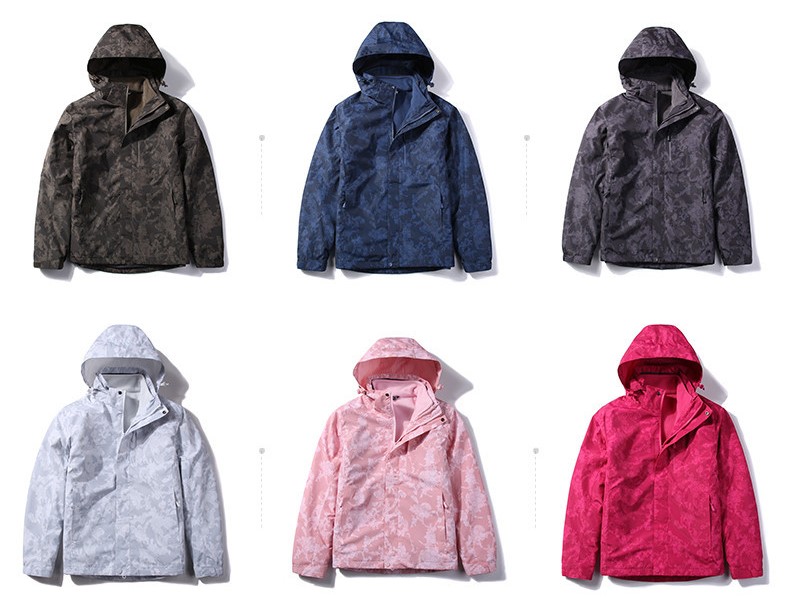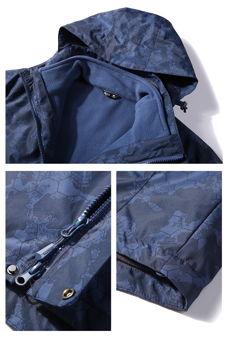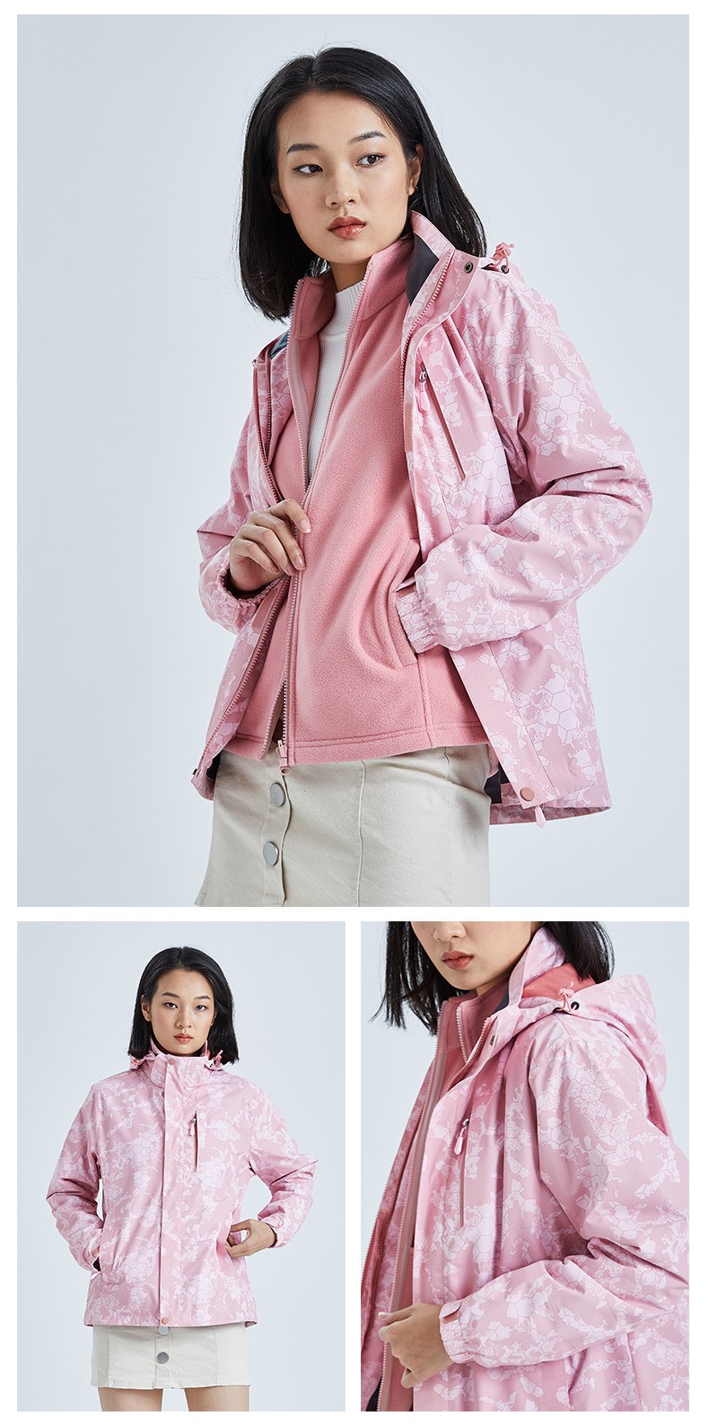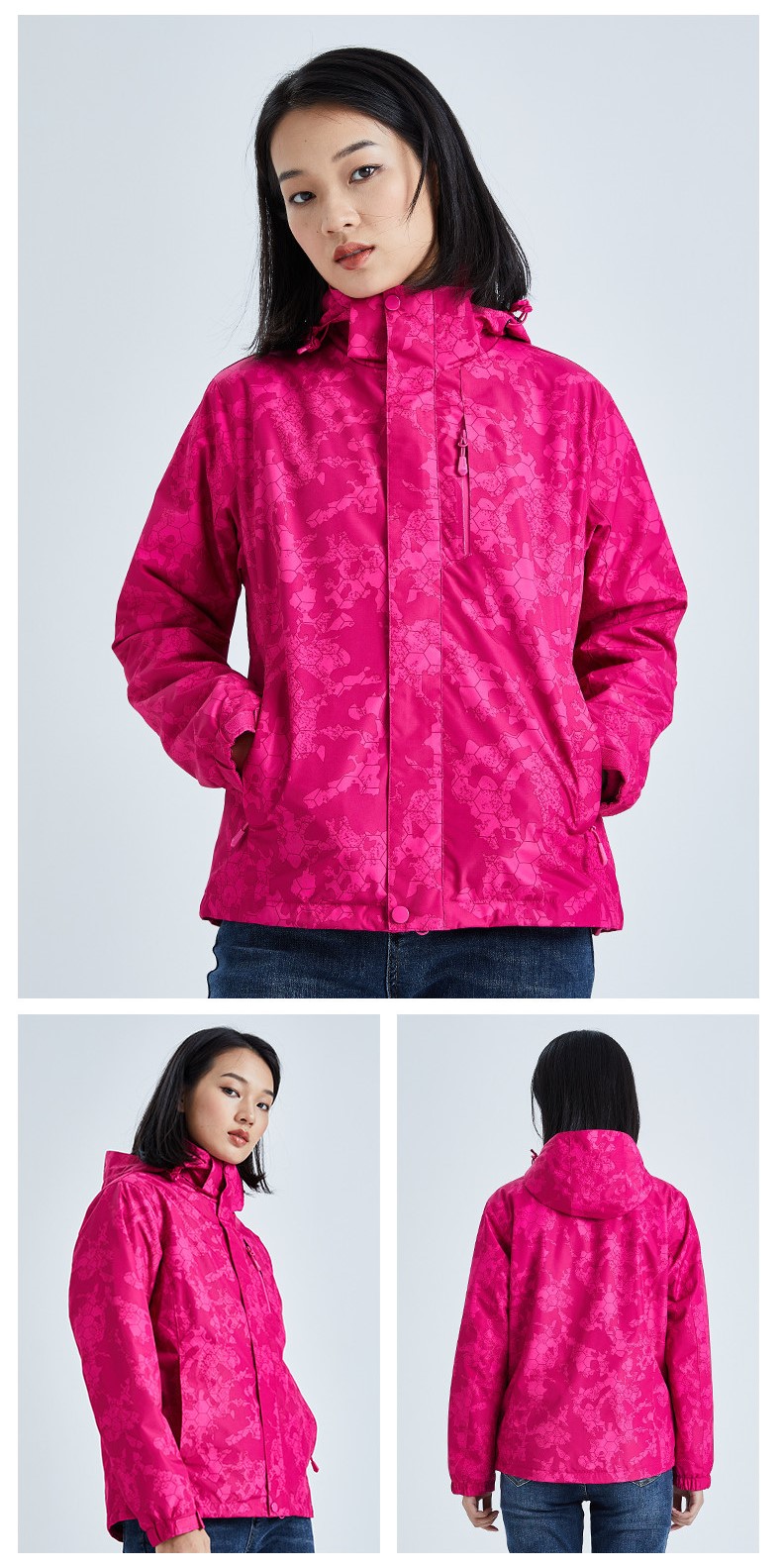 Women printed softshell jacket rainproof warm outdoor climbing coat two piece men travel 3in1 coat