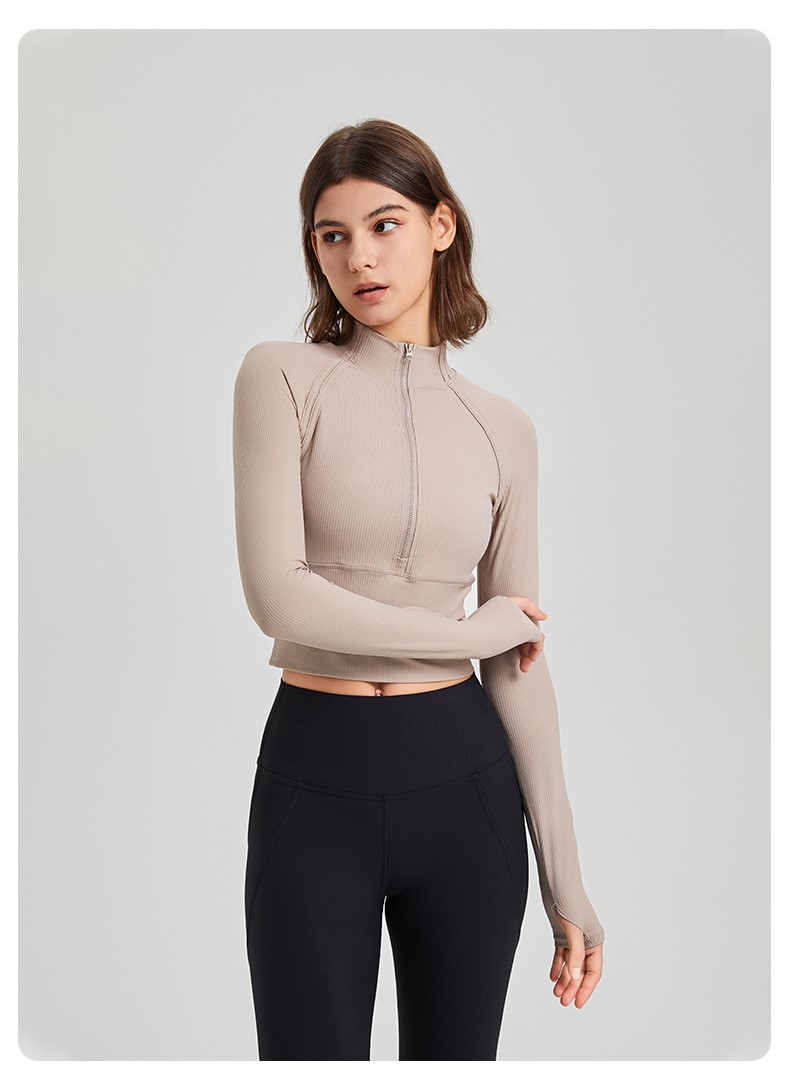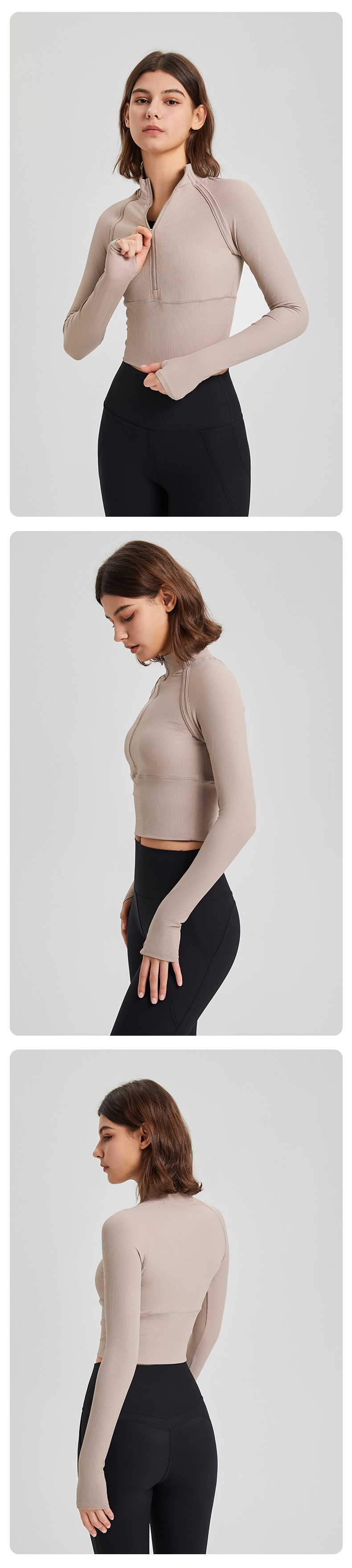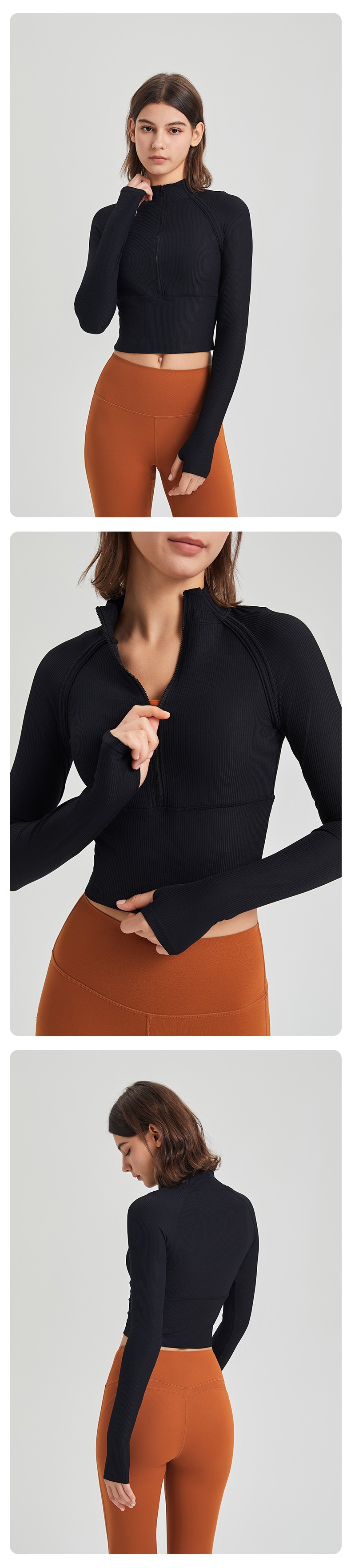 Women quick dry crop yoga top stand collar half zip jacket coat running long sleeve sweatshirt