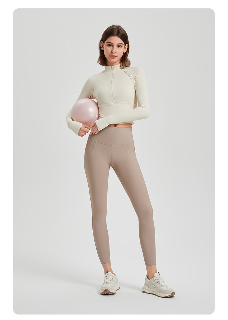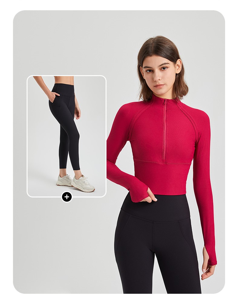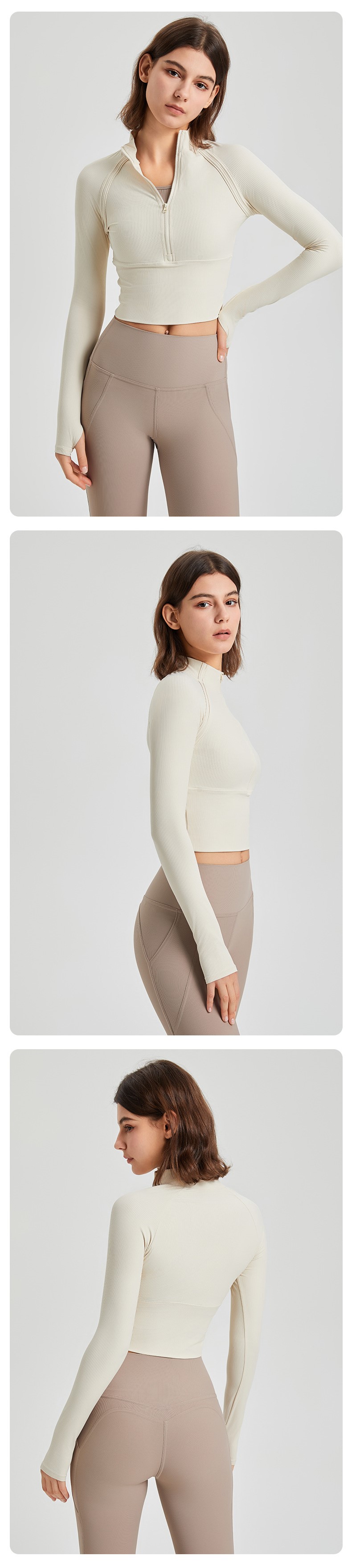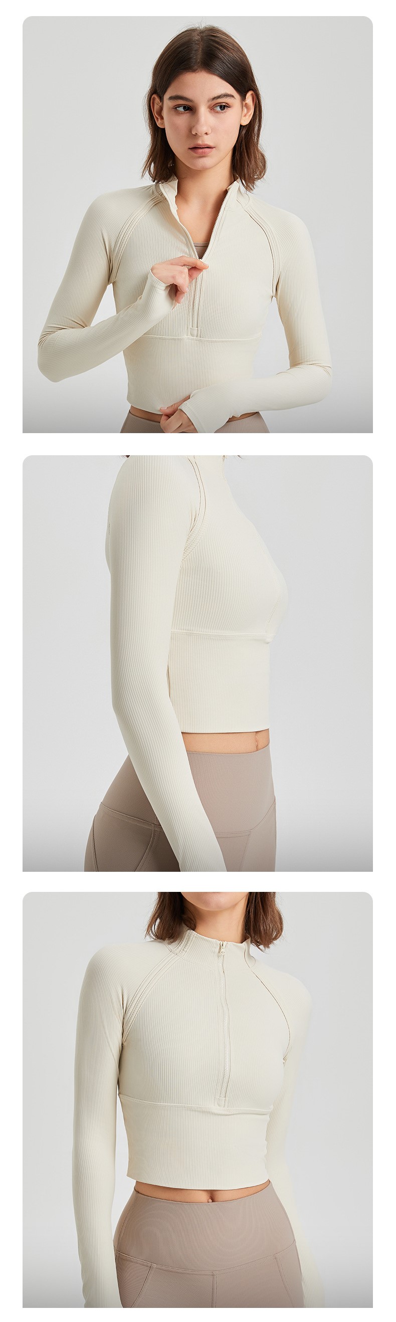Women quick dry crop yoga top stand collar half zip jacket coat running long sleeve sweatshirt