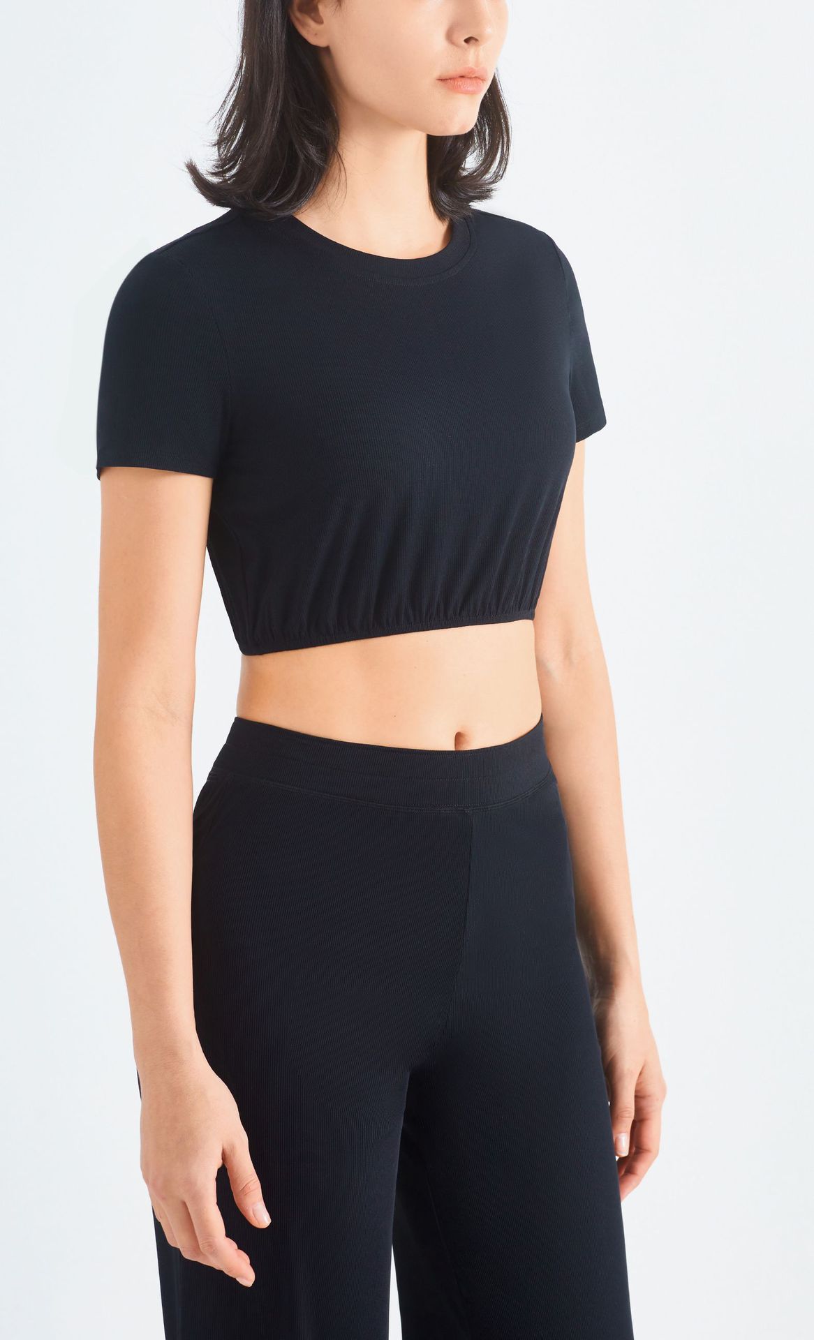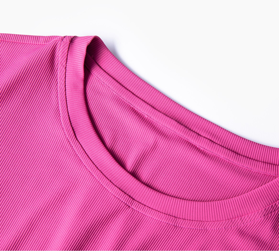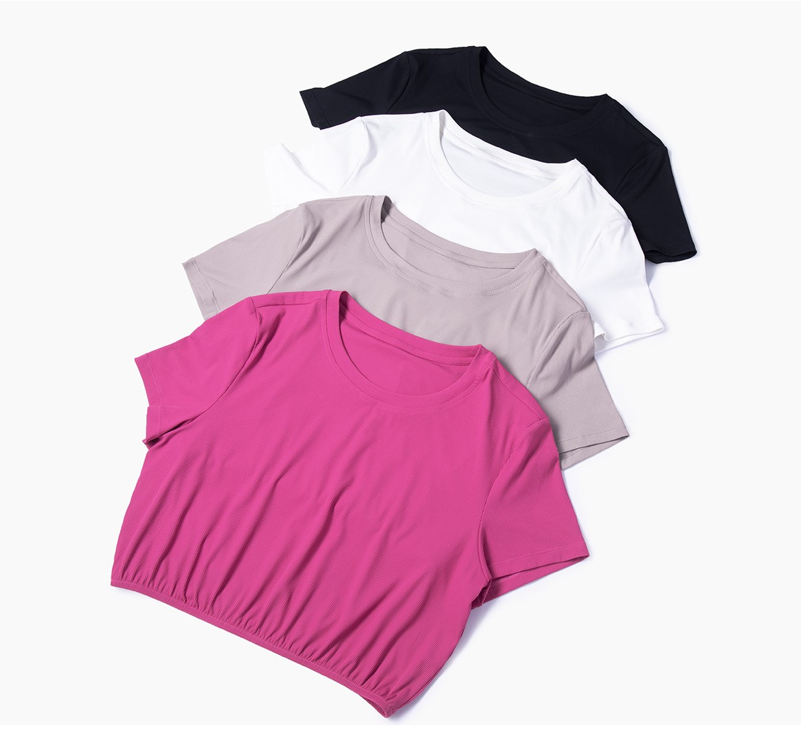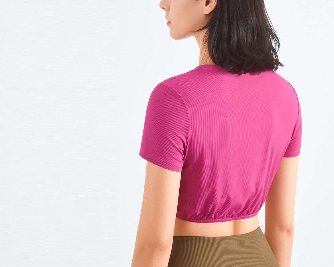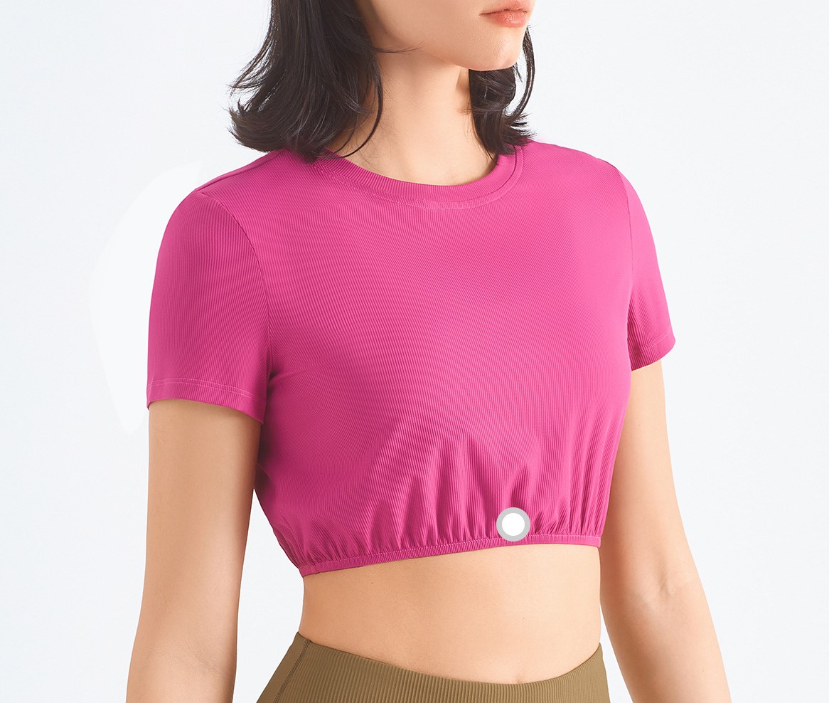Women rib crop short sleeve t-shirts round neck quick dry corset hem workout running yoga tshirts