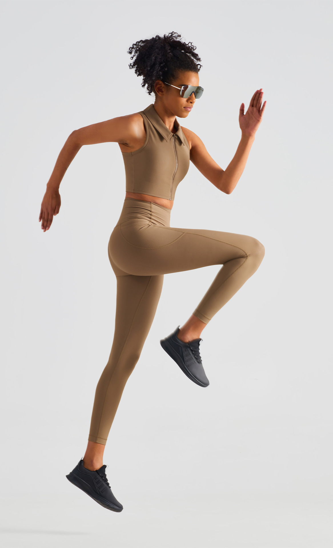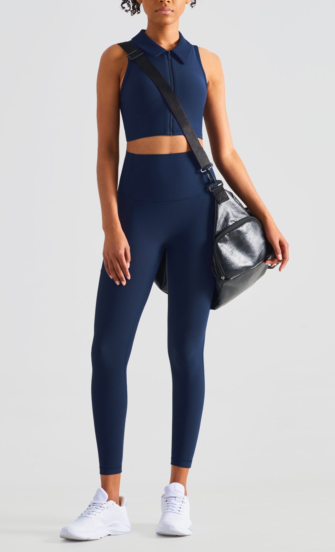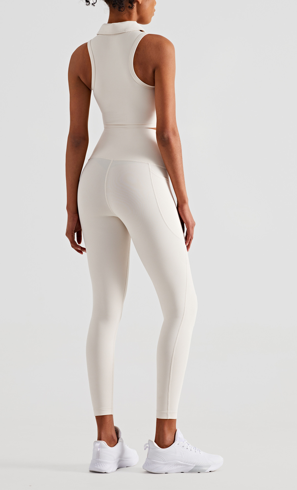 Women rib lapel zip tank top outdoor sleeveless tennis fitness workout running athletic crop tops