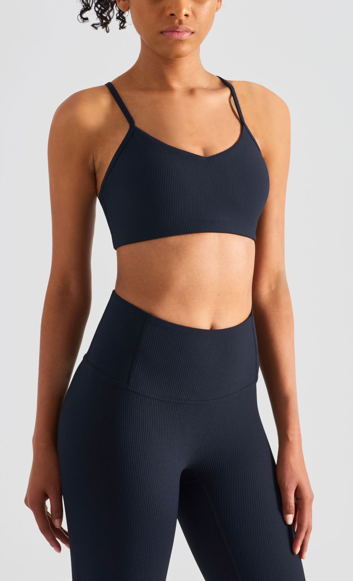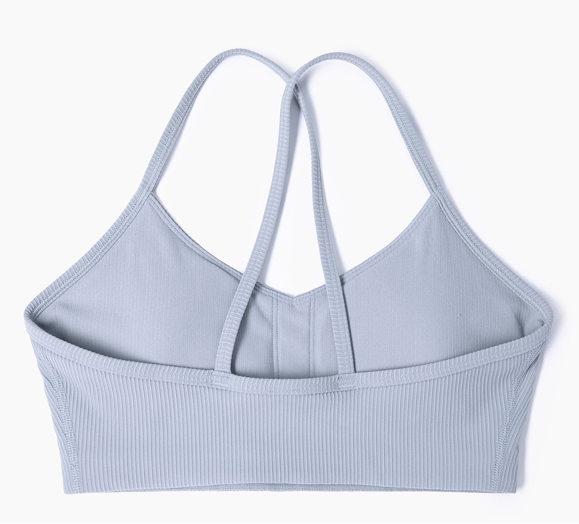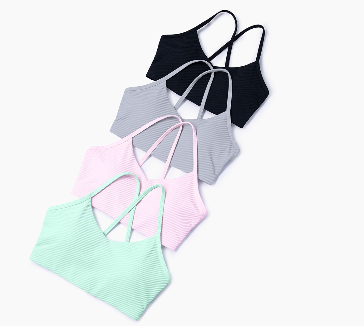 Women rib sexy V neck sports bra criss cross spaghetti straps workout yoga running crop tank top