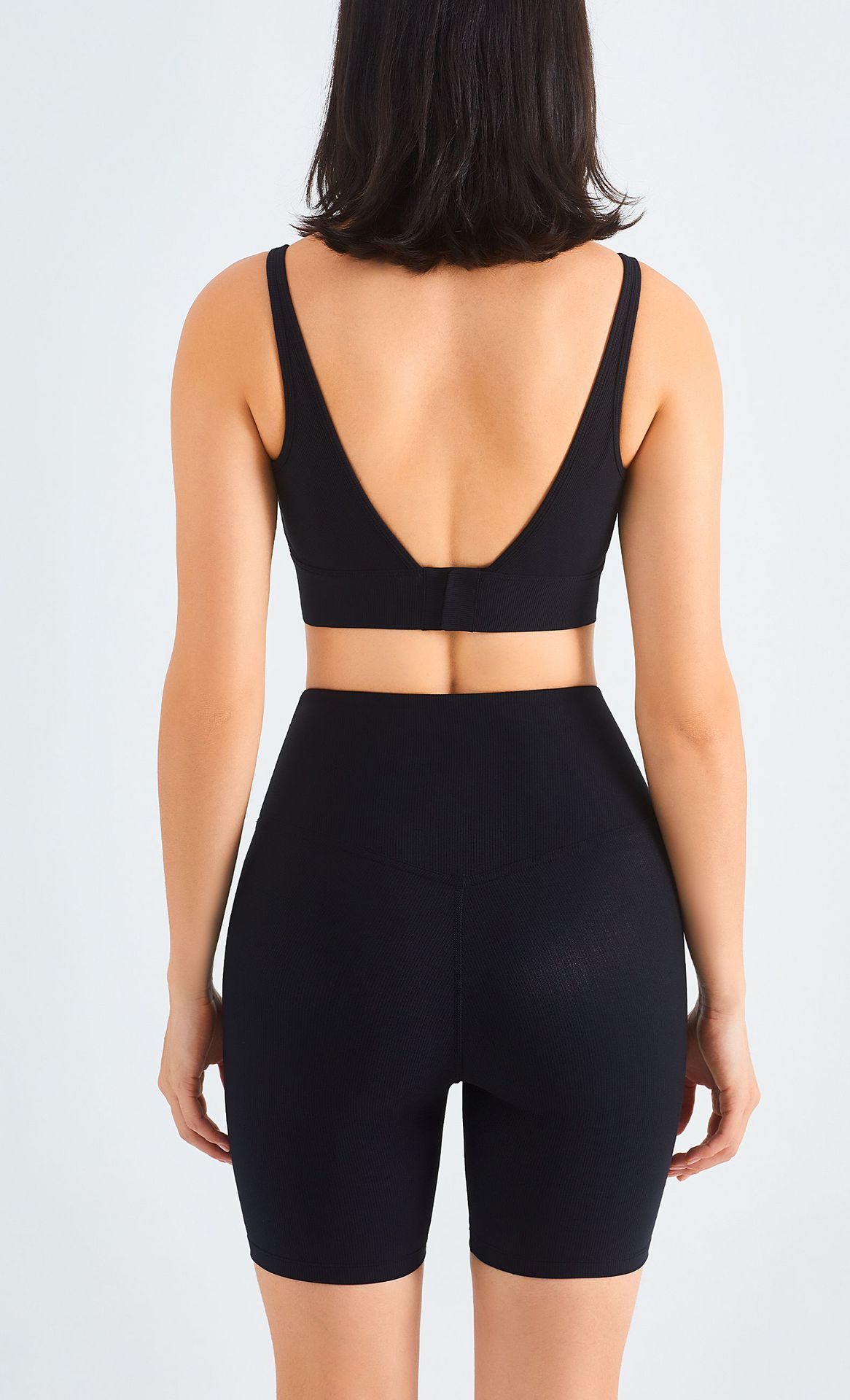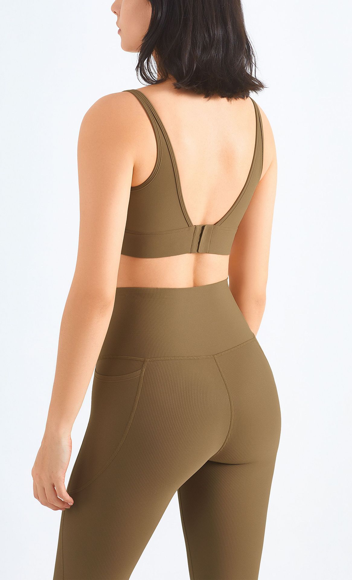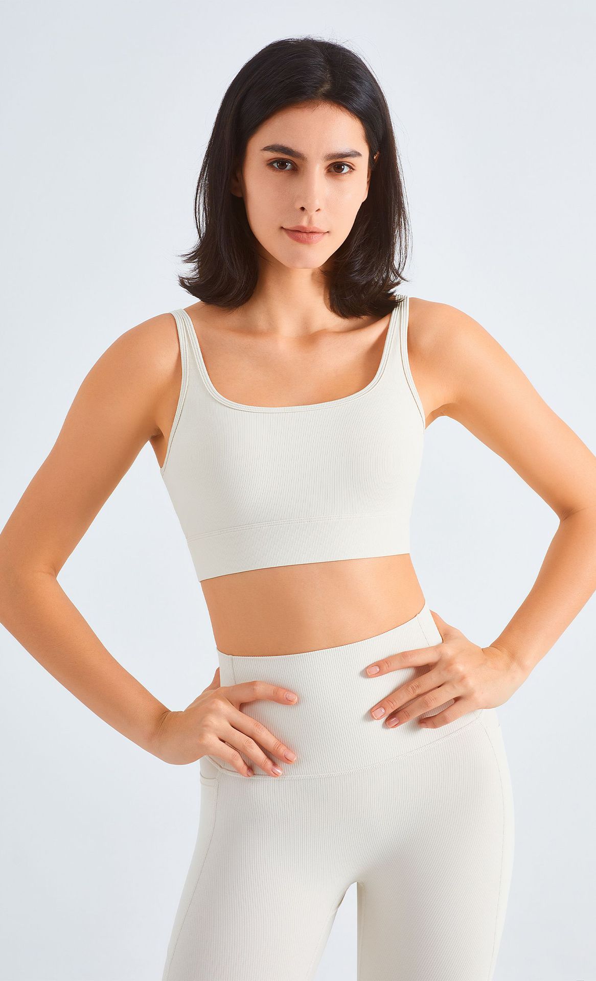 Women rib yoga sports bra U neck sexy back hook and eye closure workout fitness running tops