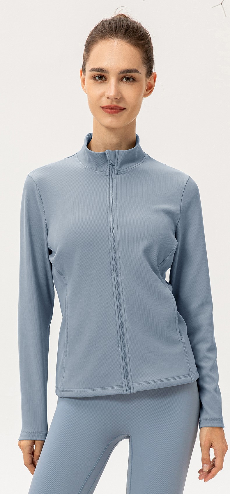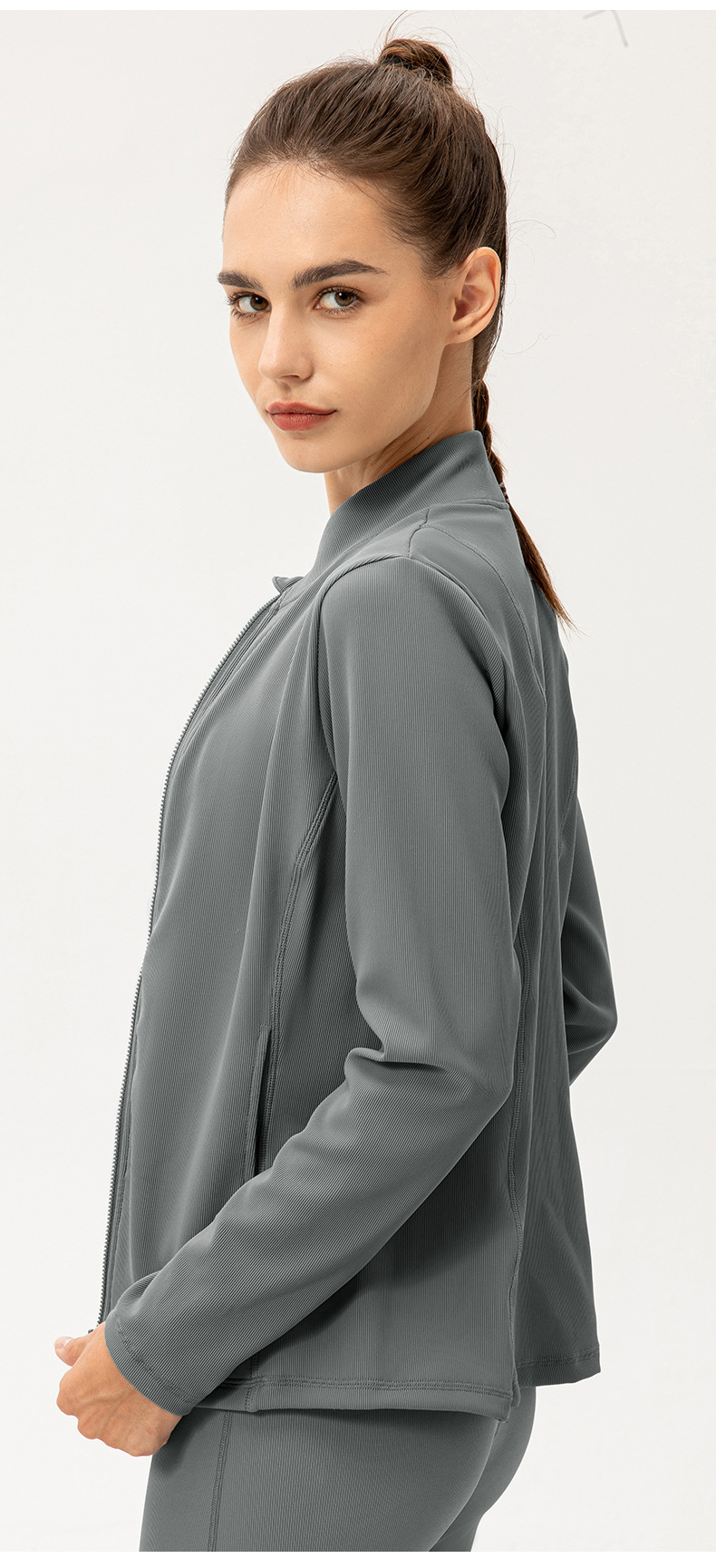 Women rib zip jacket silm fit sportswear running fitness sweatshirts yoga long sleeve workout coat
