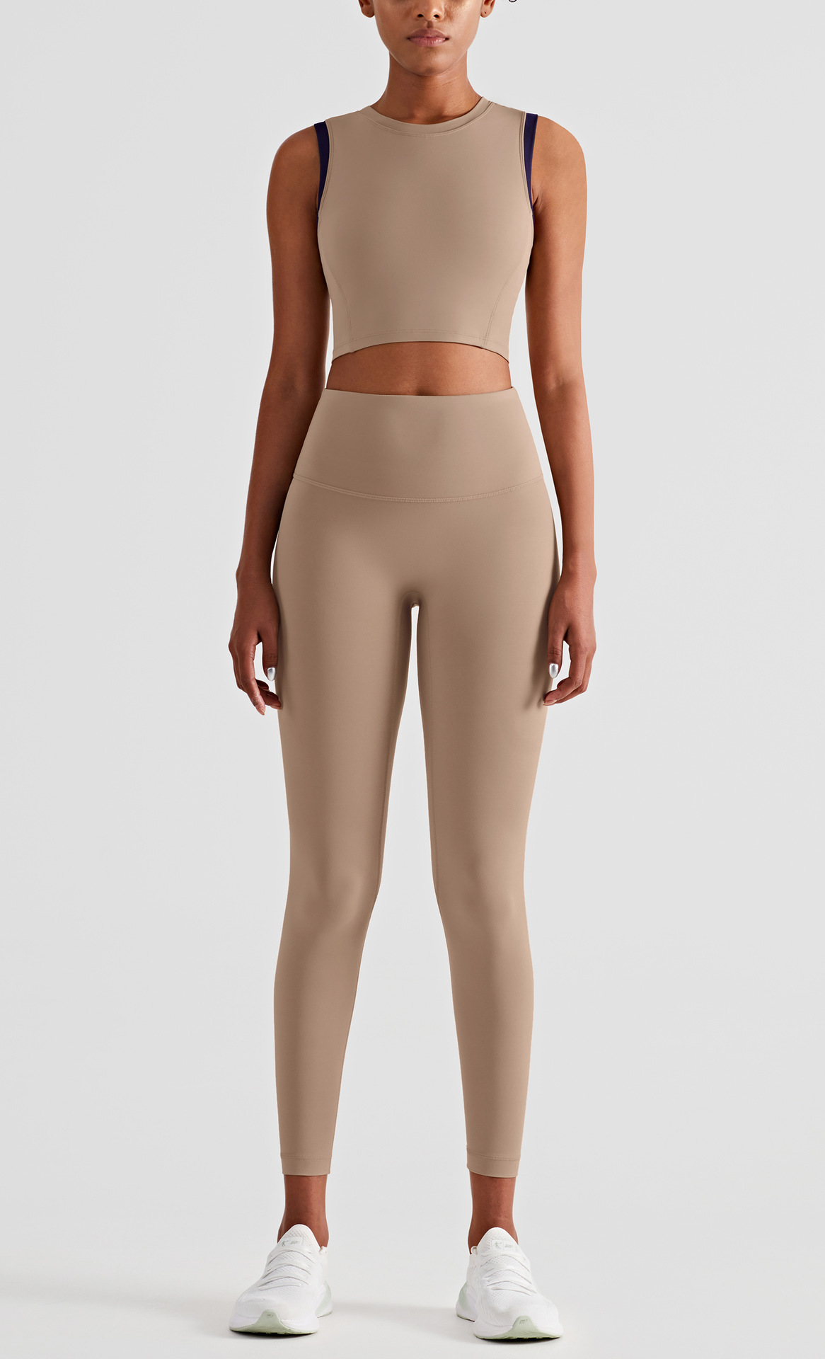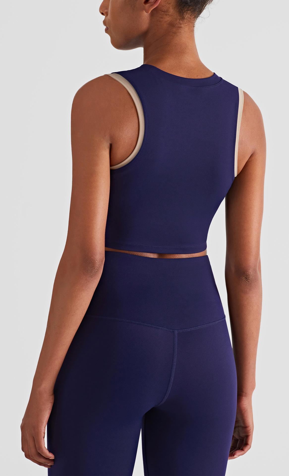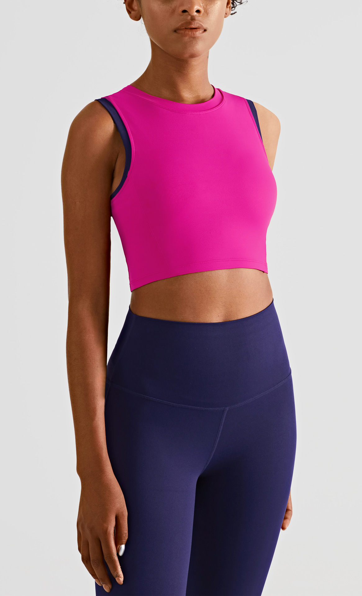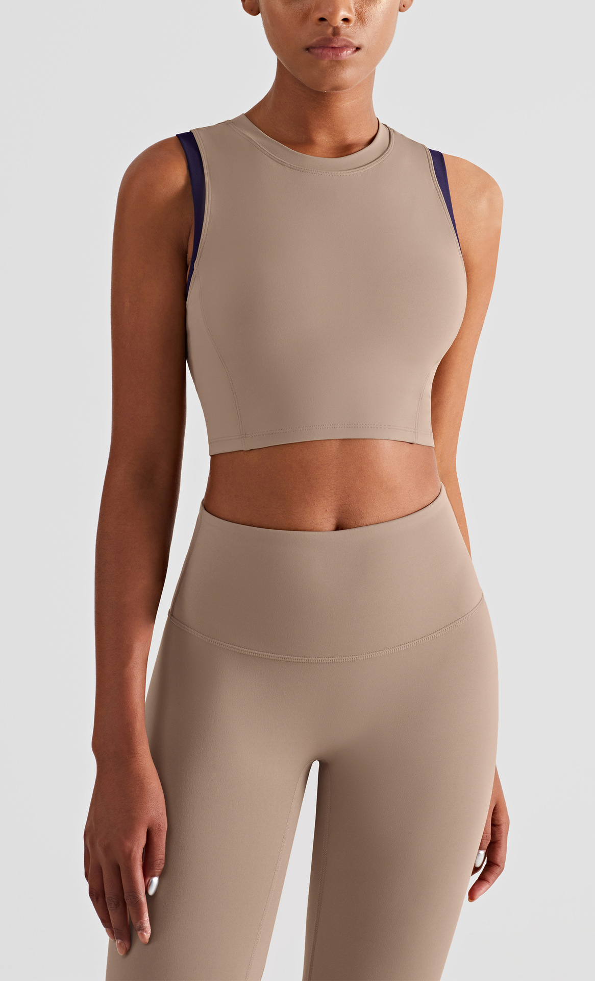 Women round neck yoga tank top colorblock nude feeling running workout tommy control crop tops