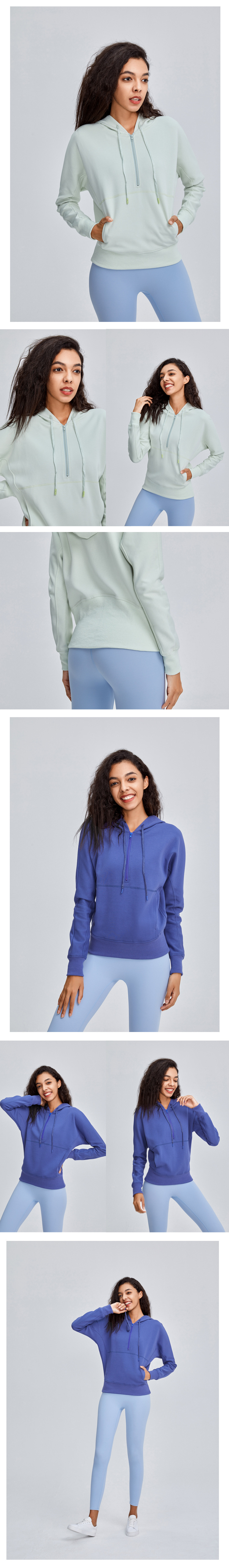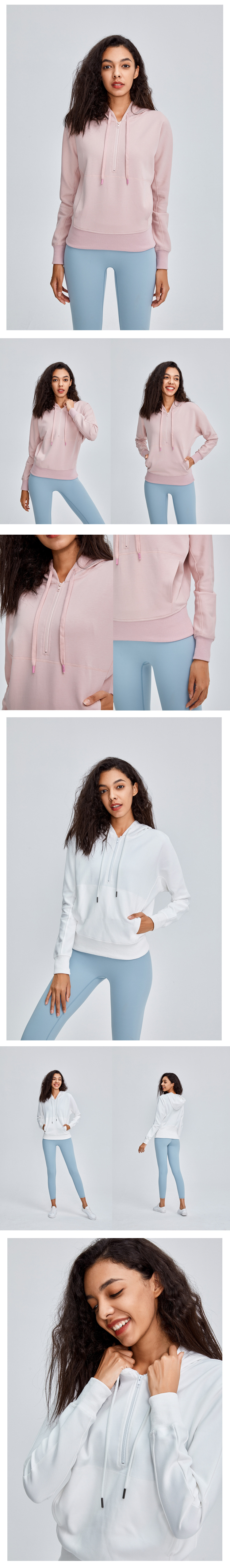 Women sports coat autumn running yoga wear long sleeve fitness 1/2 zip pullover hoodies