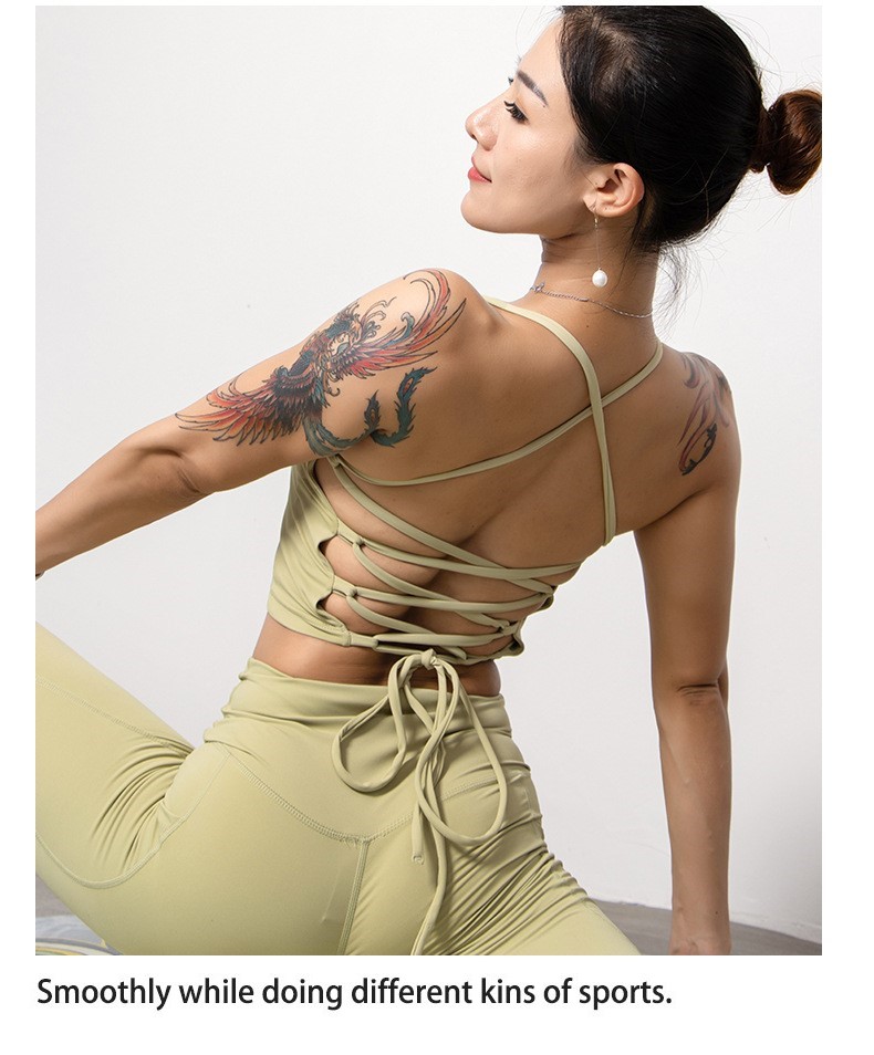Women strappy sports bra backless fitness spaghetti straps yoga workout athletic crop tank tops
