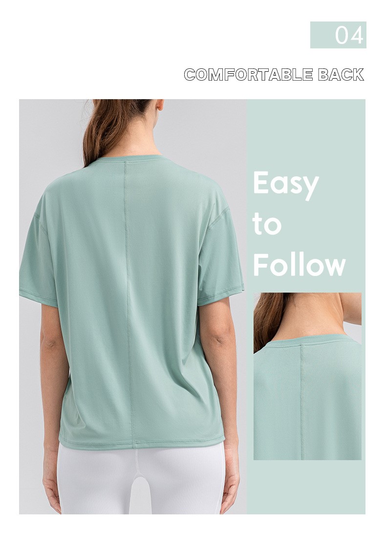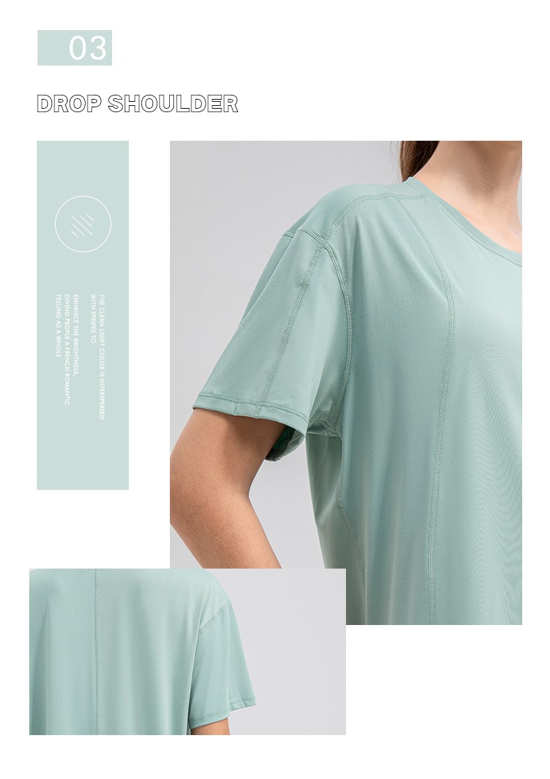Women summer loose short sleeve t-shirt quick-dry running fitness moisture-wicking yoga tee