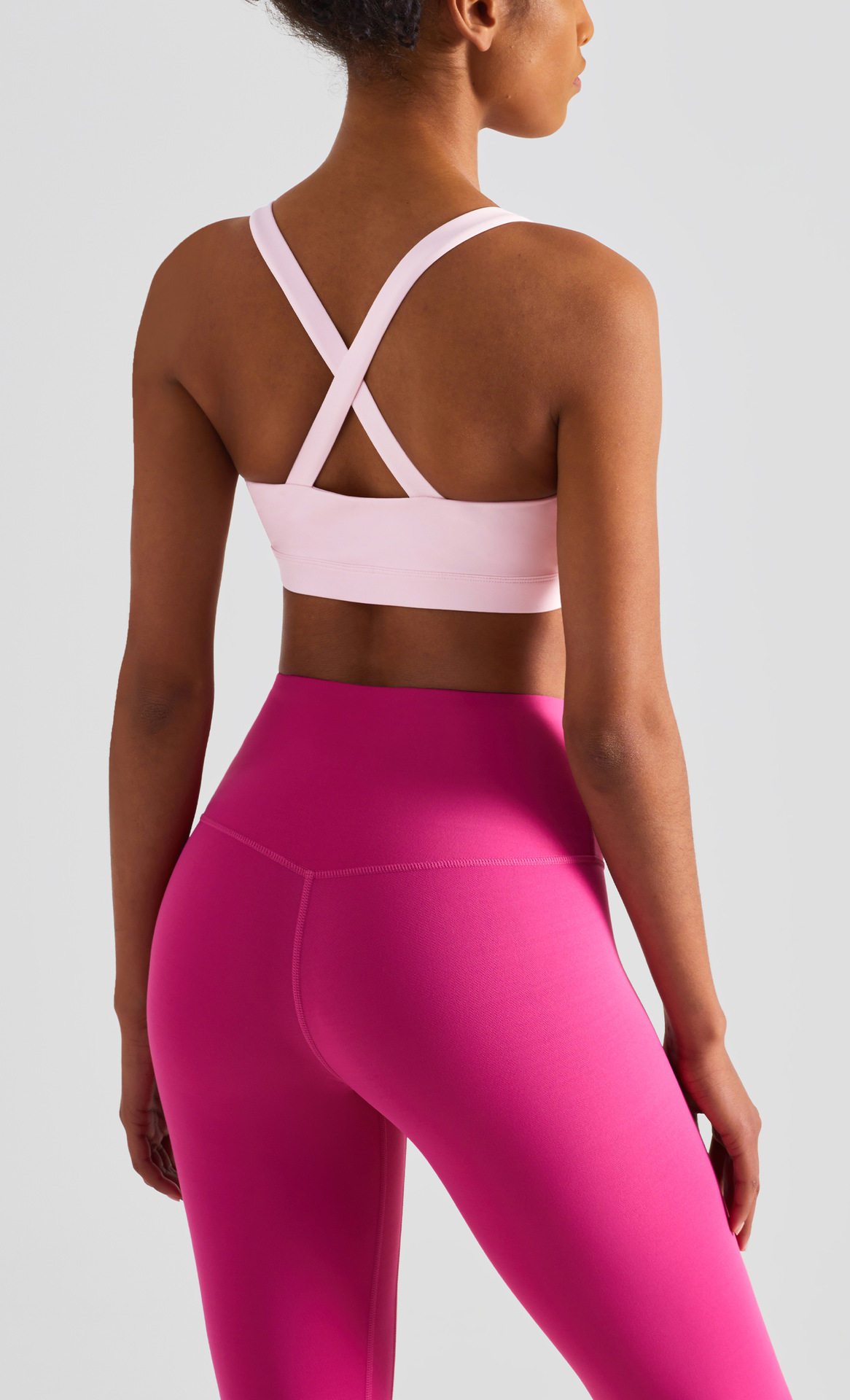 Women U neck wrinkles sports bra X back fitness workout yoga gym running athletic pilates tops