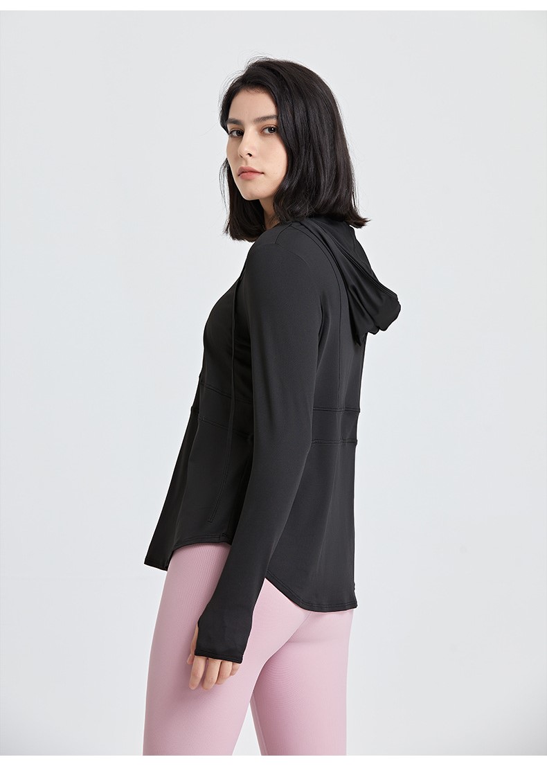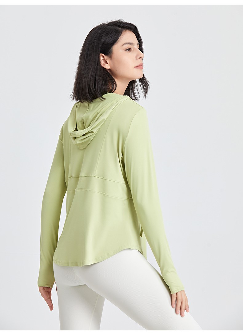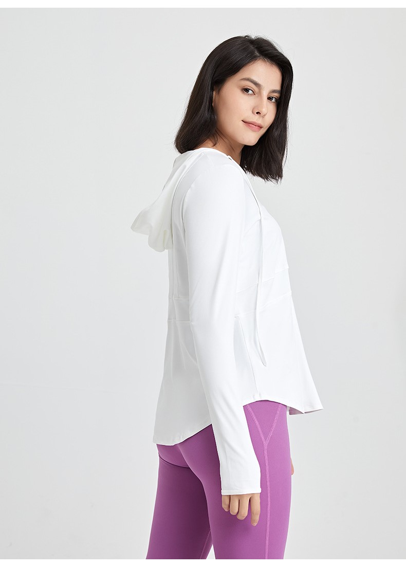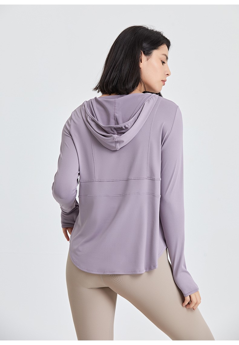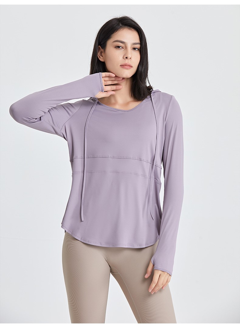 Women v neck loose breathable long sleeve tshirt hooded drawstring running top with finger hole