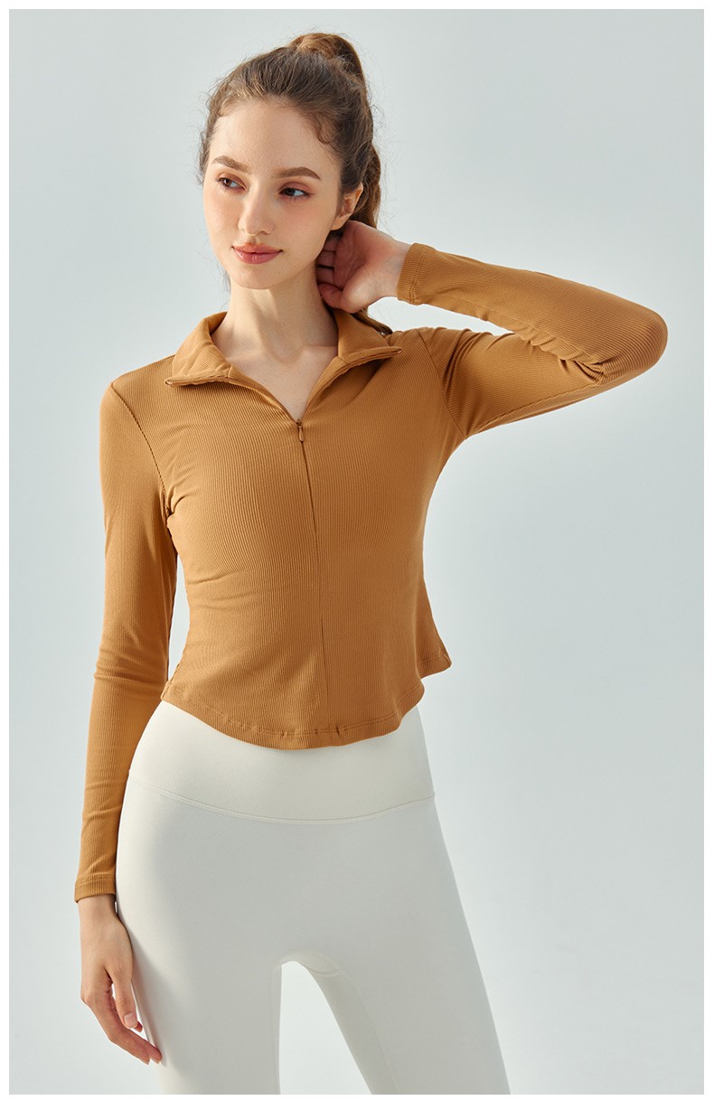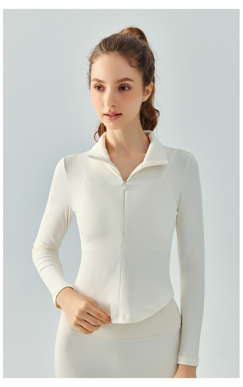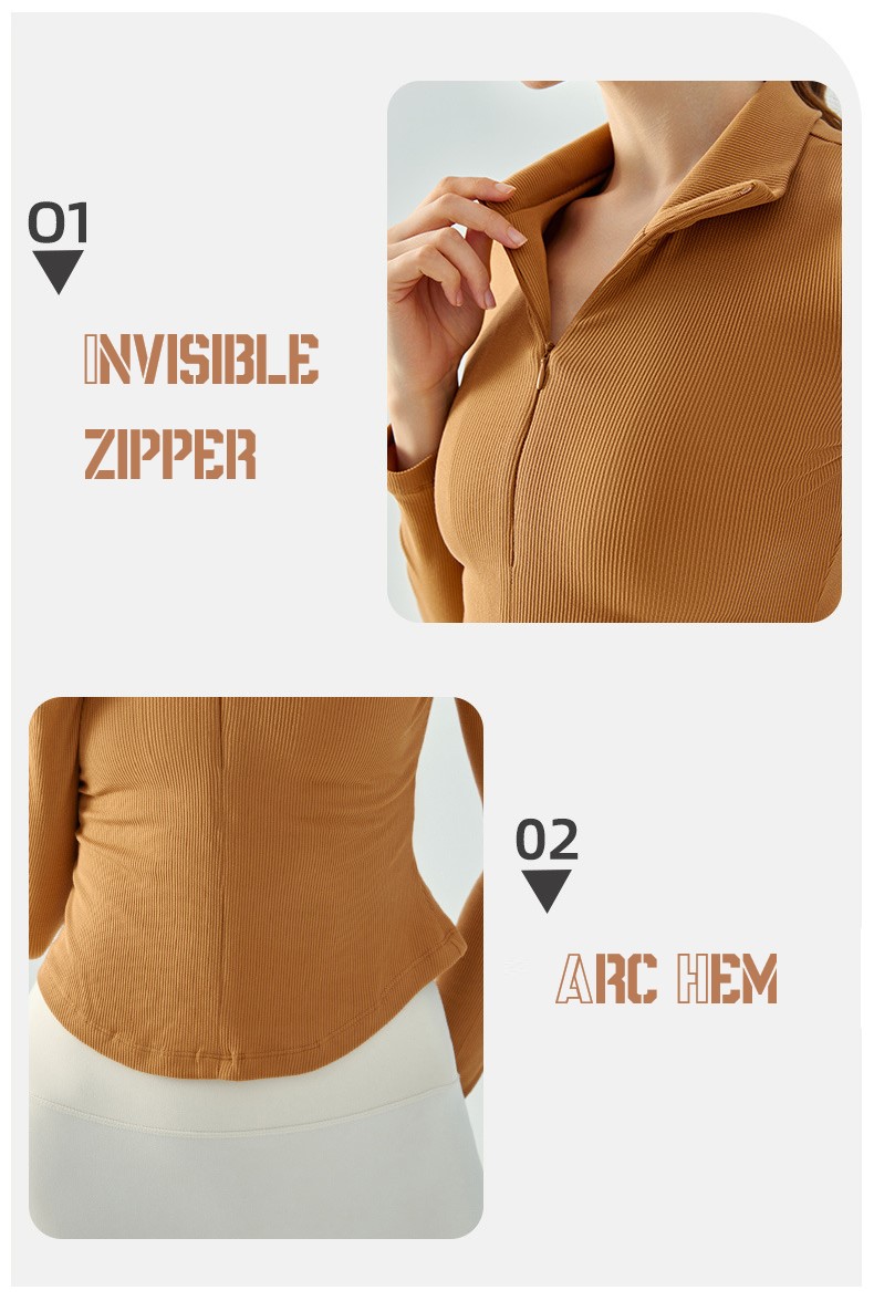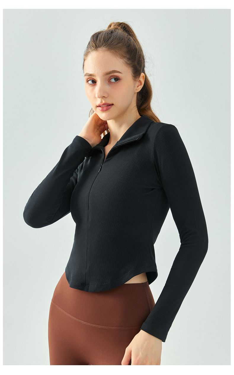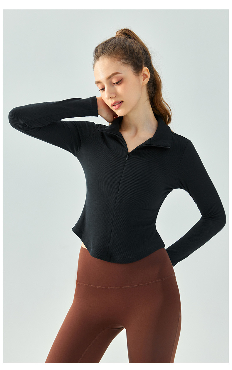 Women winter lapel neck crop long sleeve coat invisible zip slim fit running yoga workout jacket