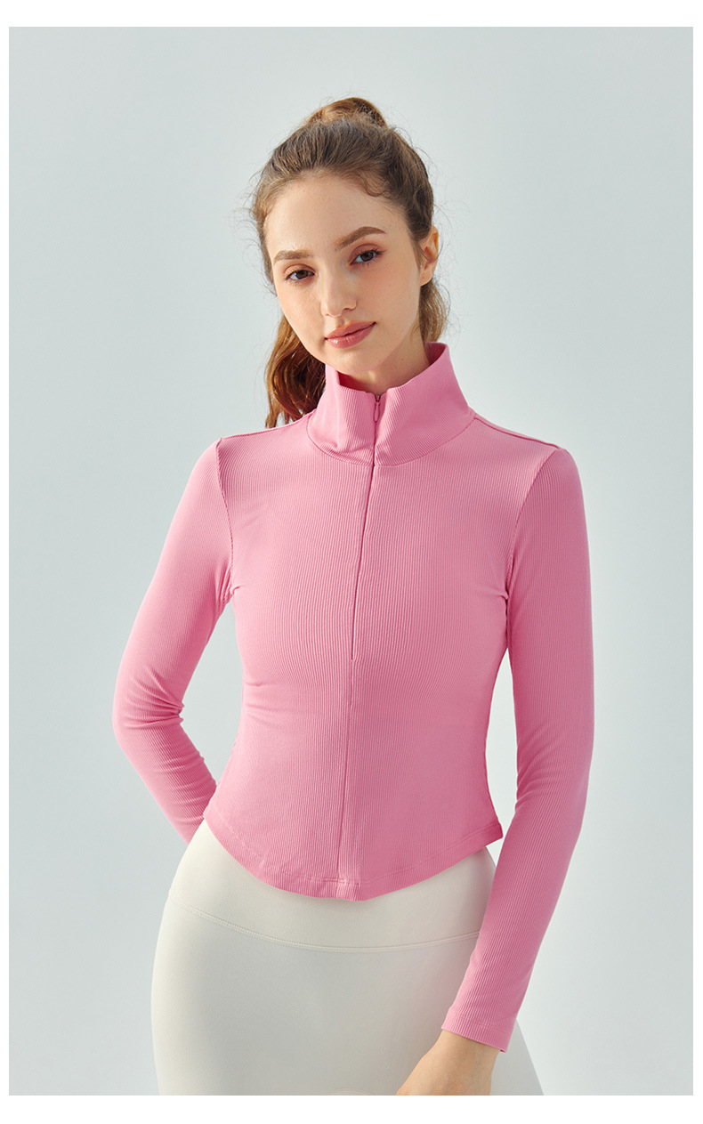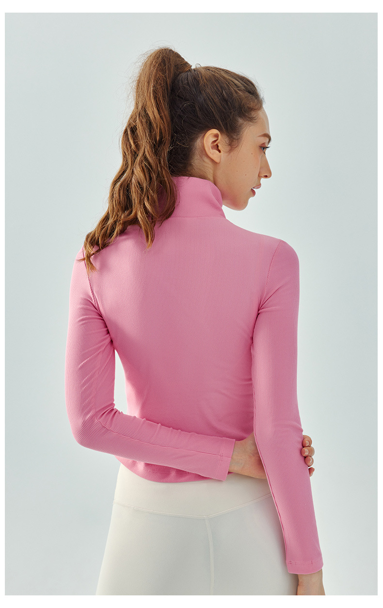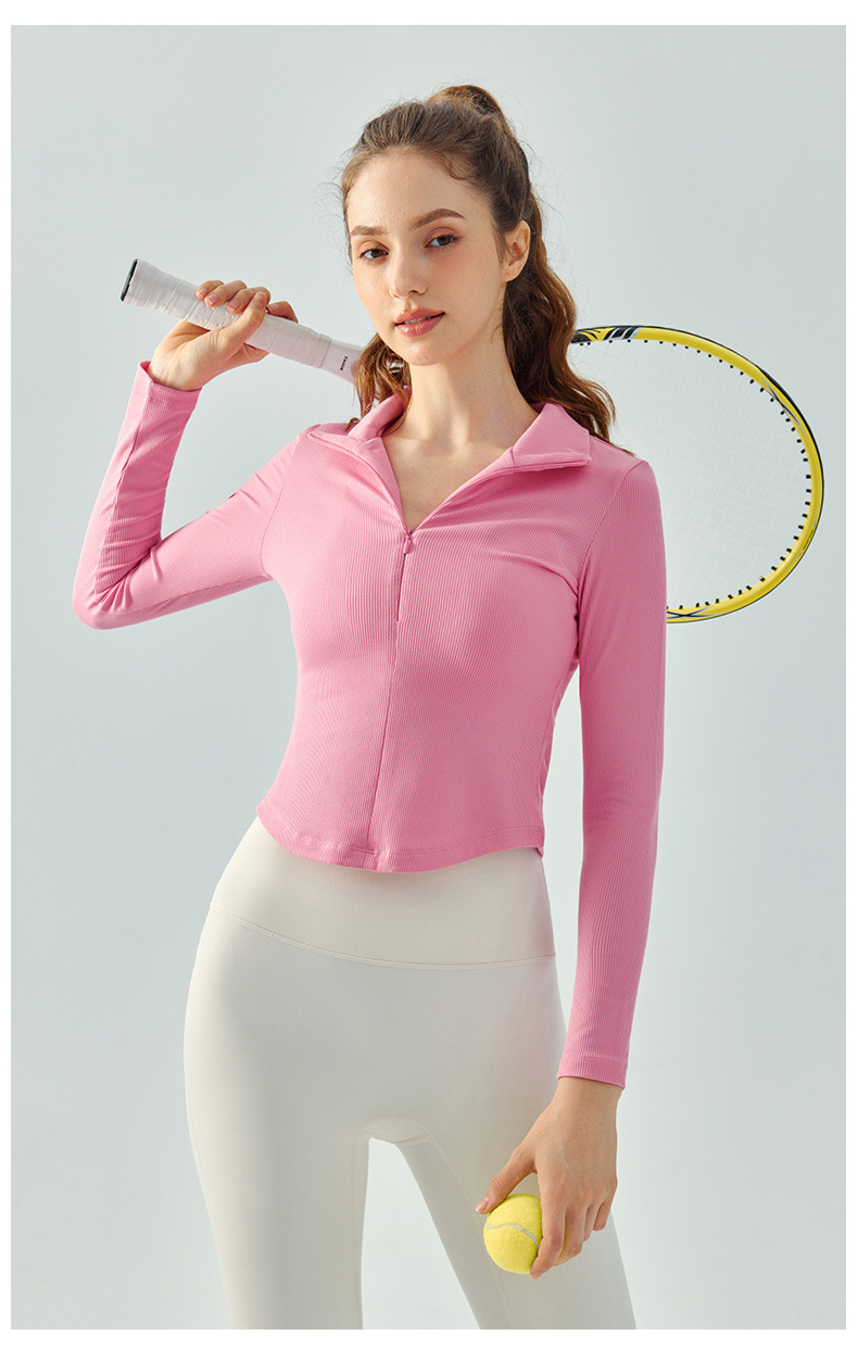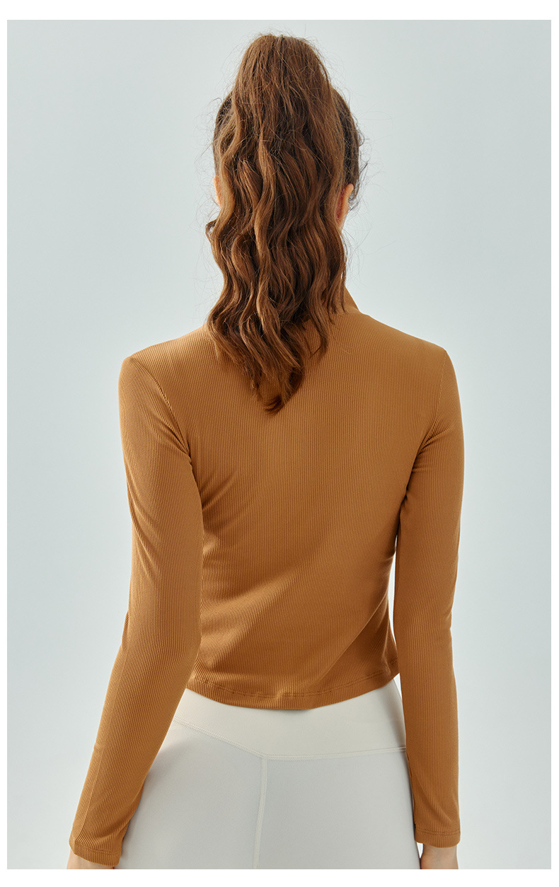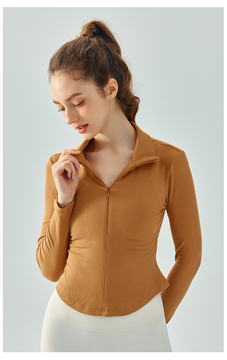 Women winter lapel neck crop long sleeve coat invisible zip slim fit running yoga workout jacket