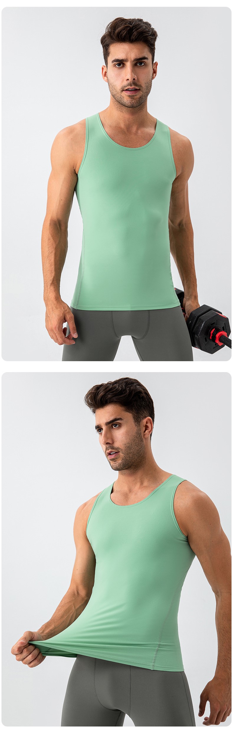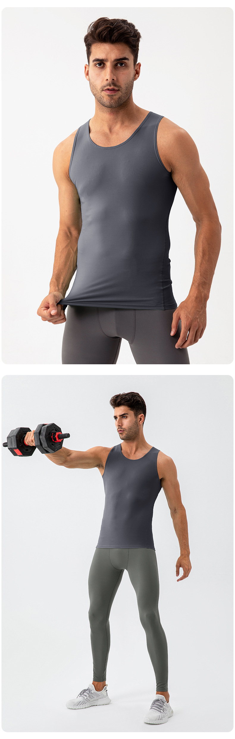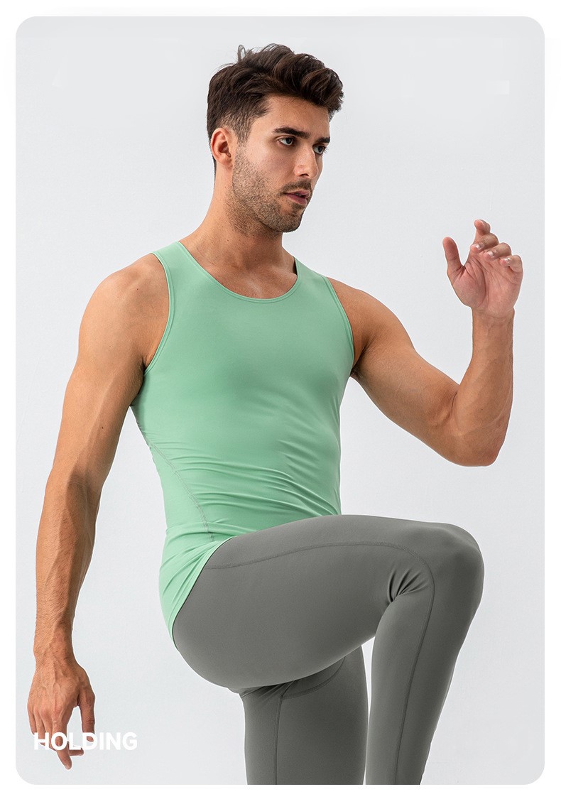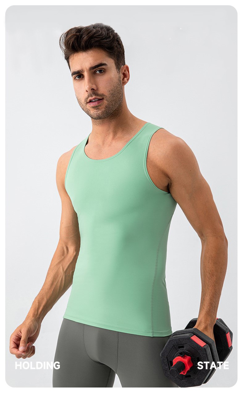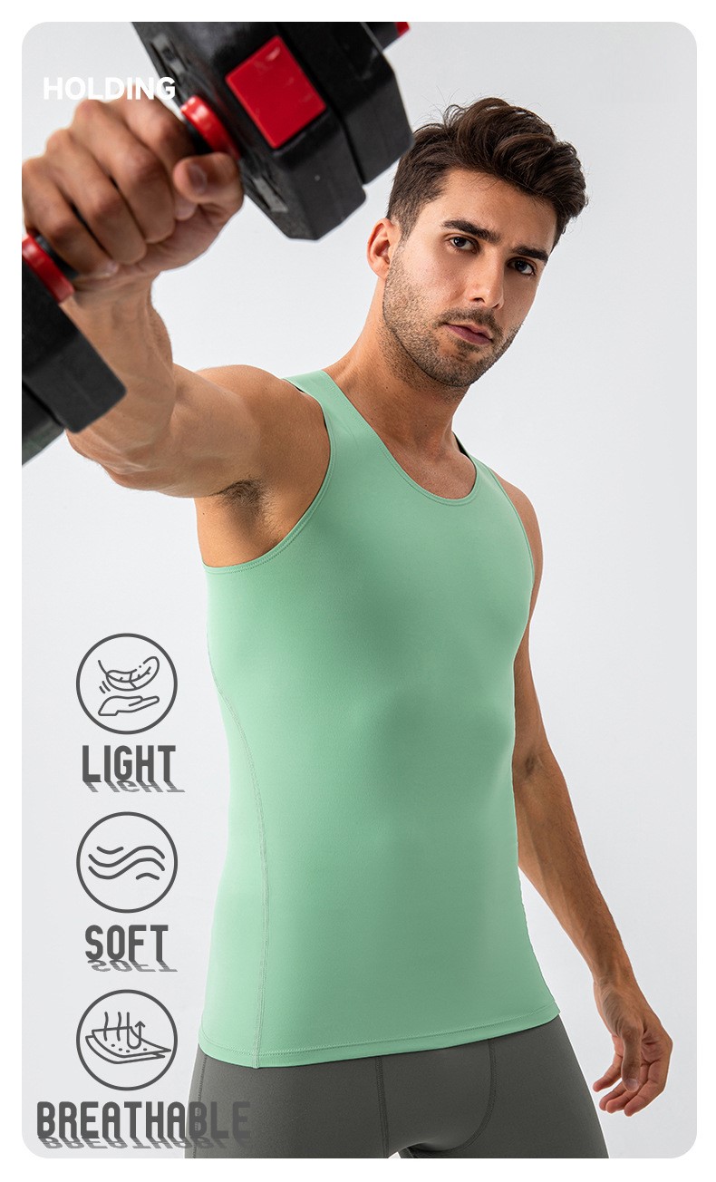 Men workout sleeveless tee tights sportswear high stretch breathable running fitness tank top
