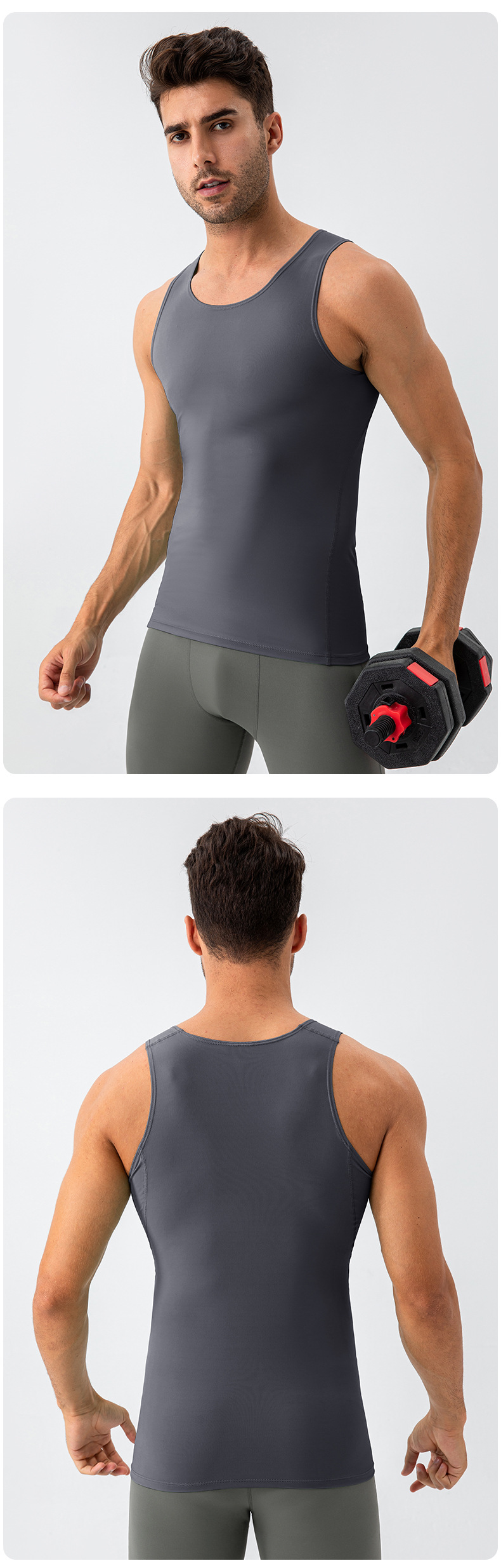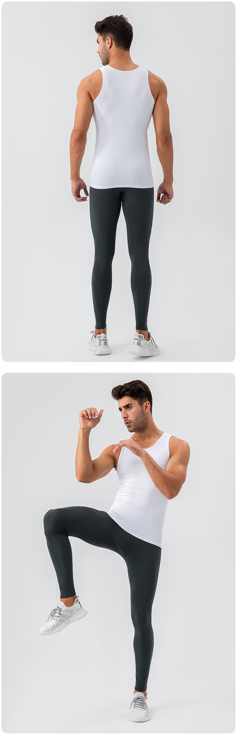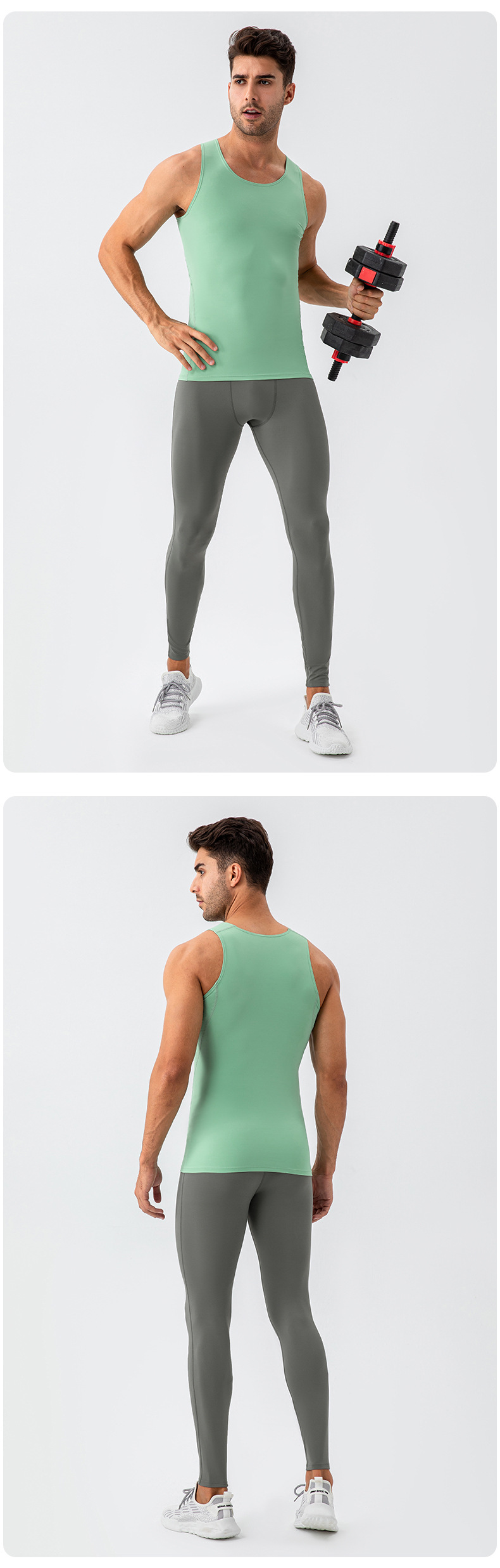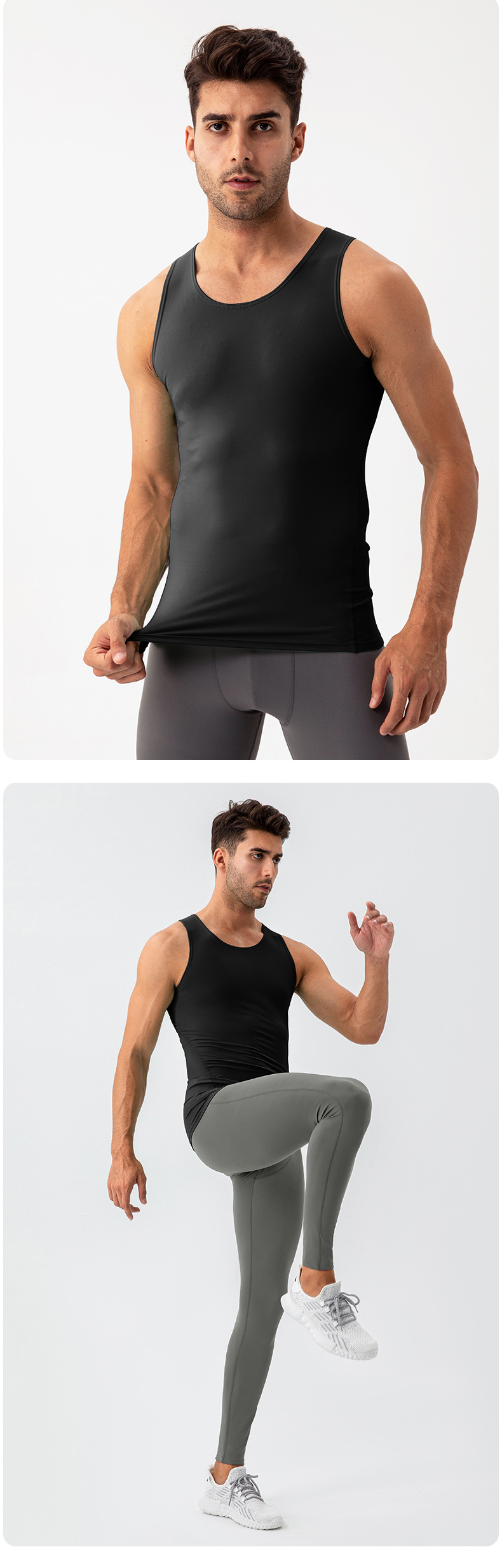 Men workout sleeveless tee tights sportswear high stretch breathable running fitness tank top