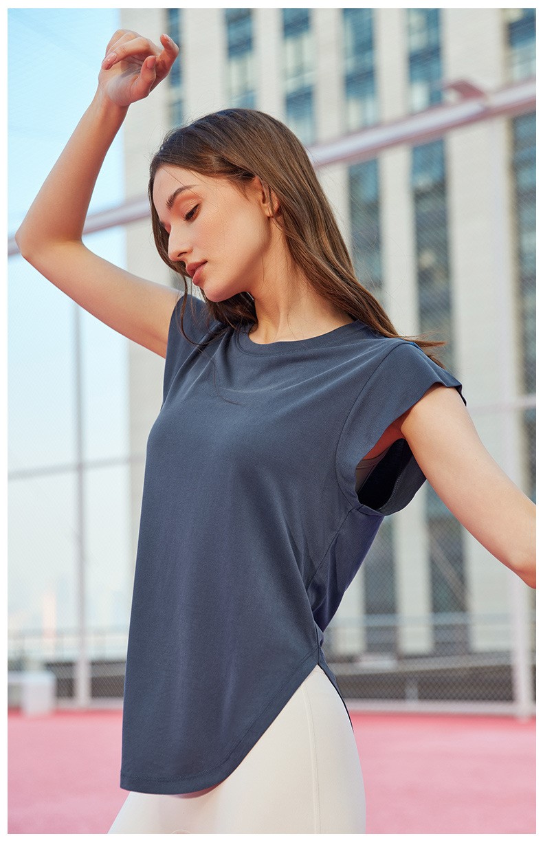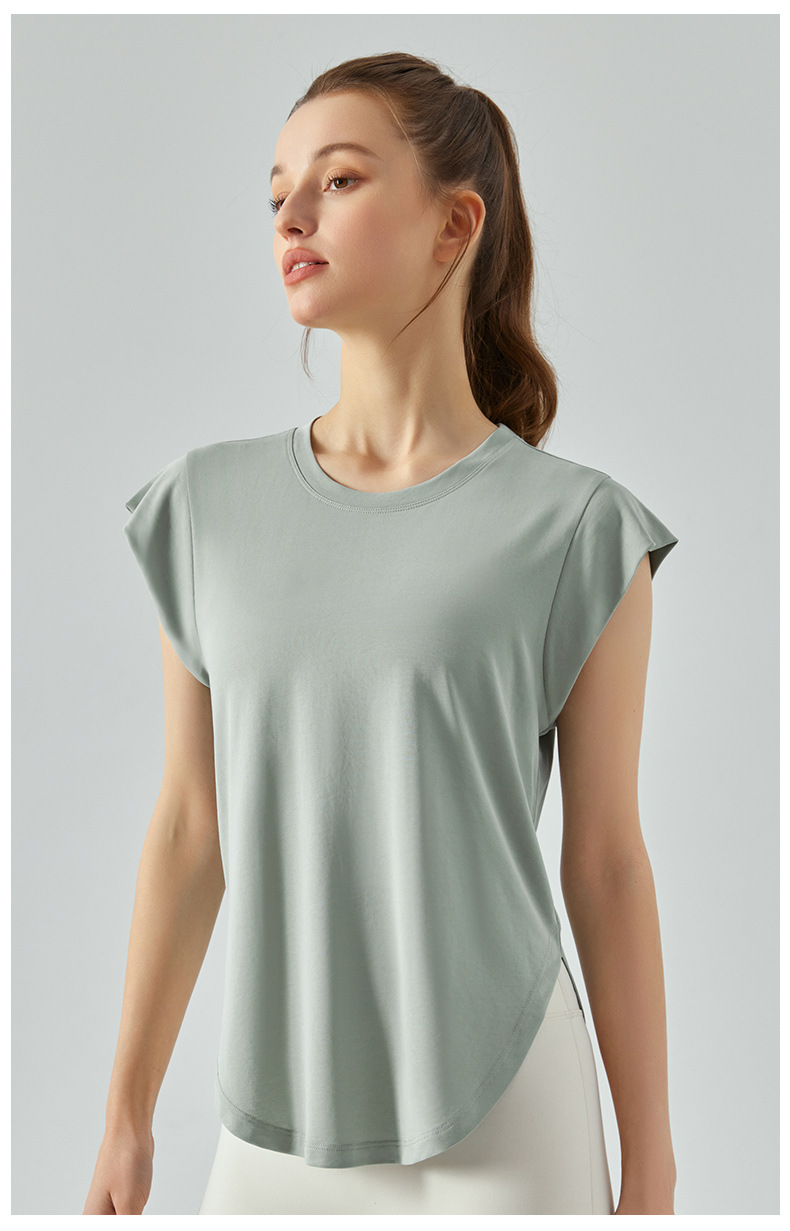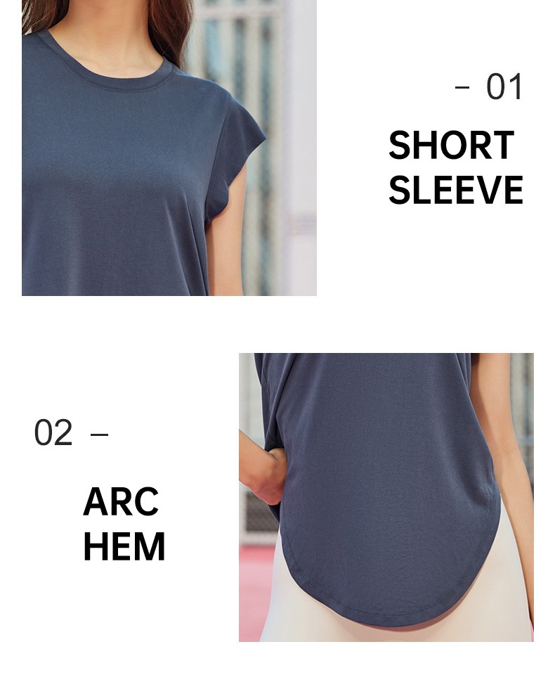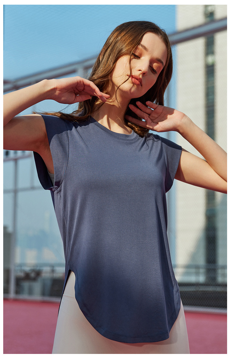 Women yoga tank top arc hem outdoor sports split side running breathable fitness short sleeve tshirt