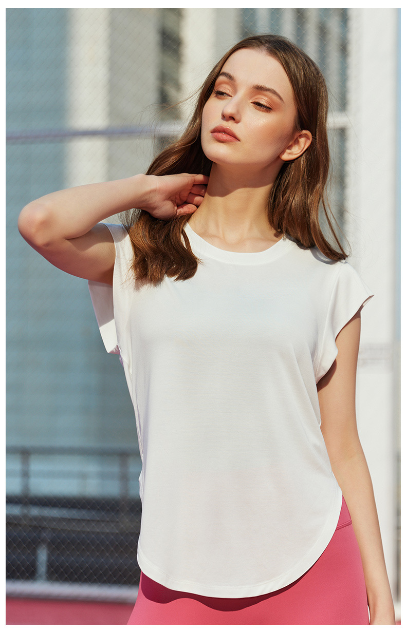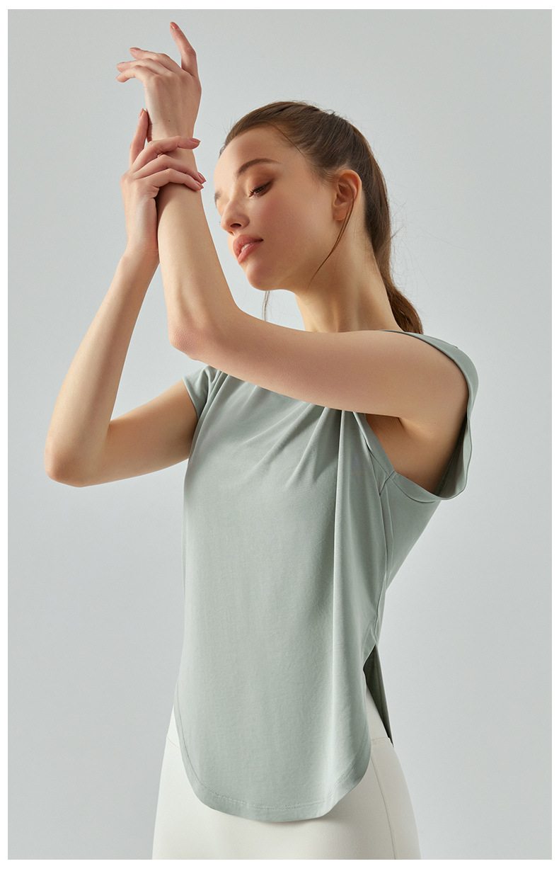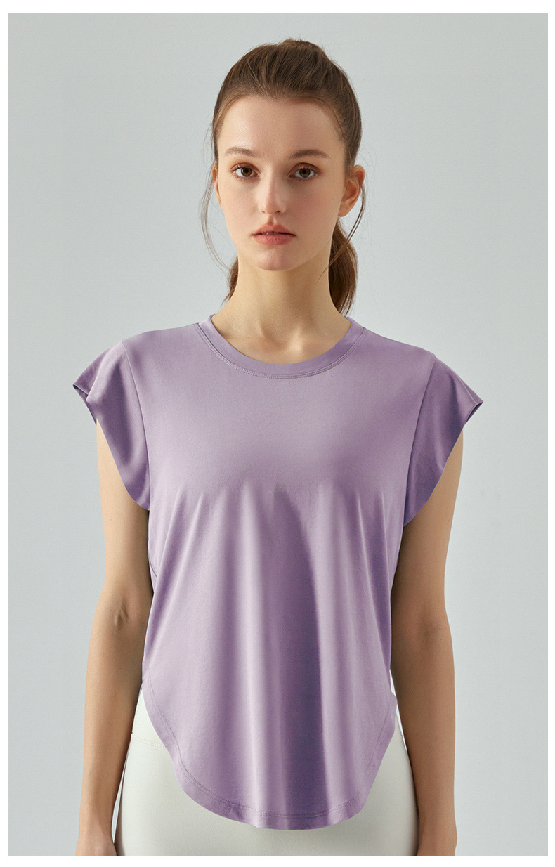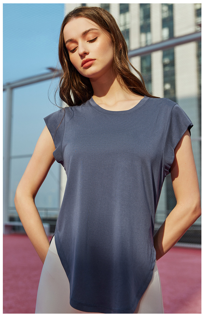 Women yoga tank top arc hem outdoor sports split side running breathable fitness short sleeve tshirt