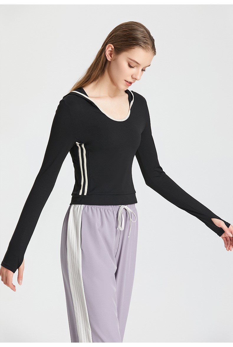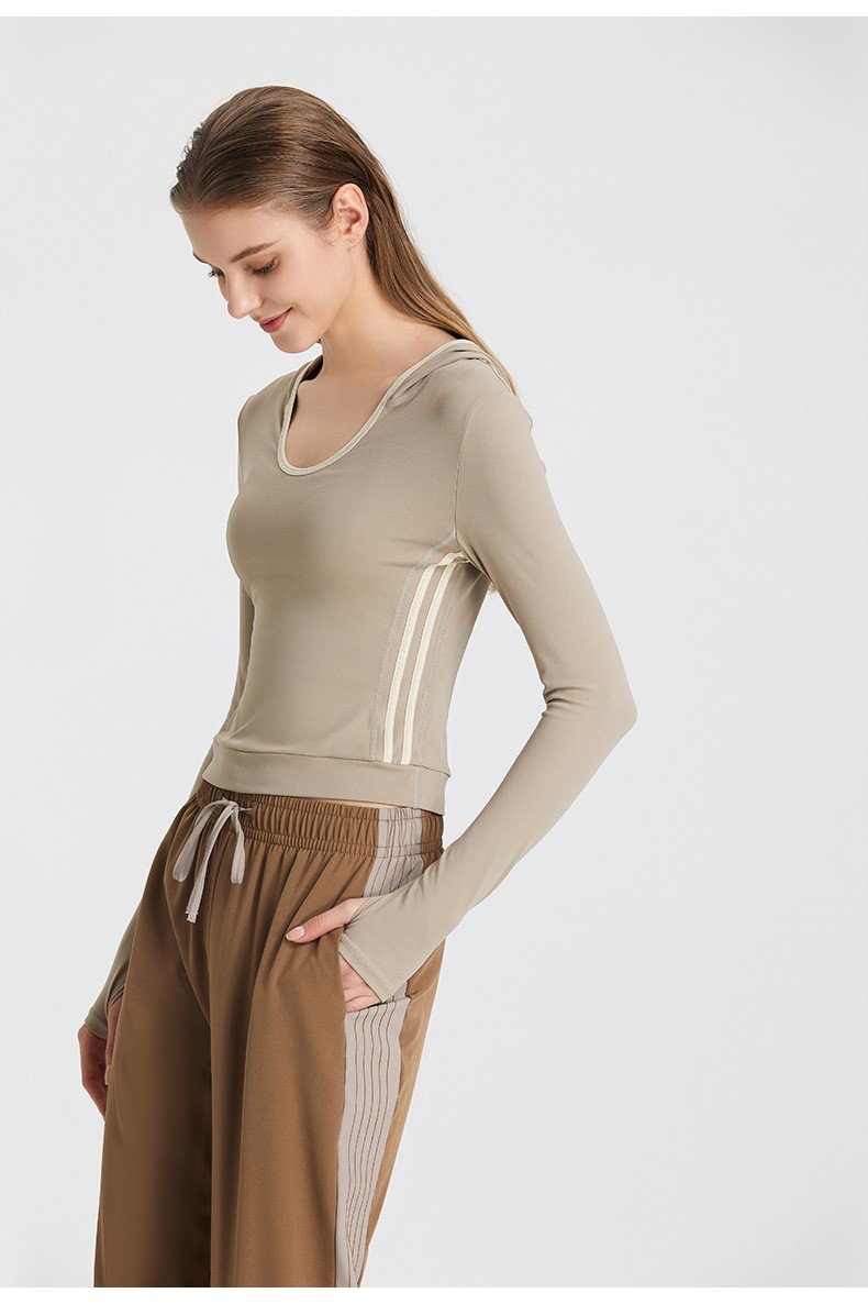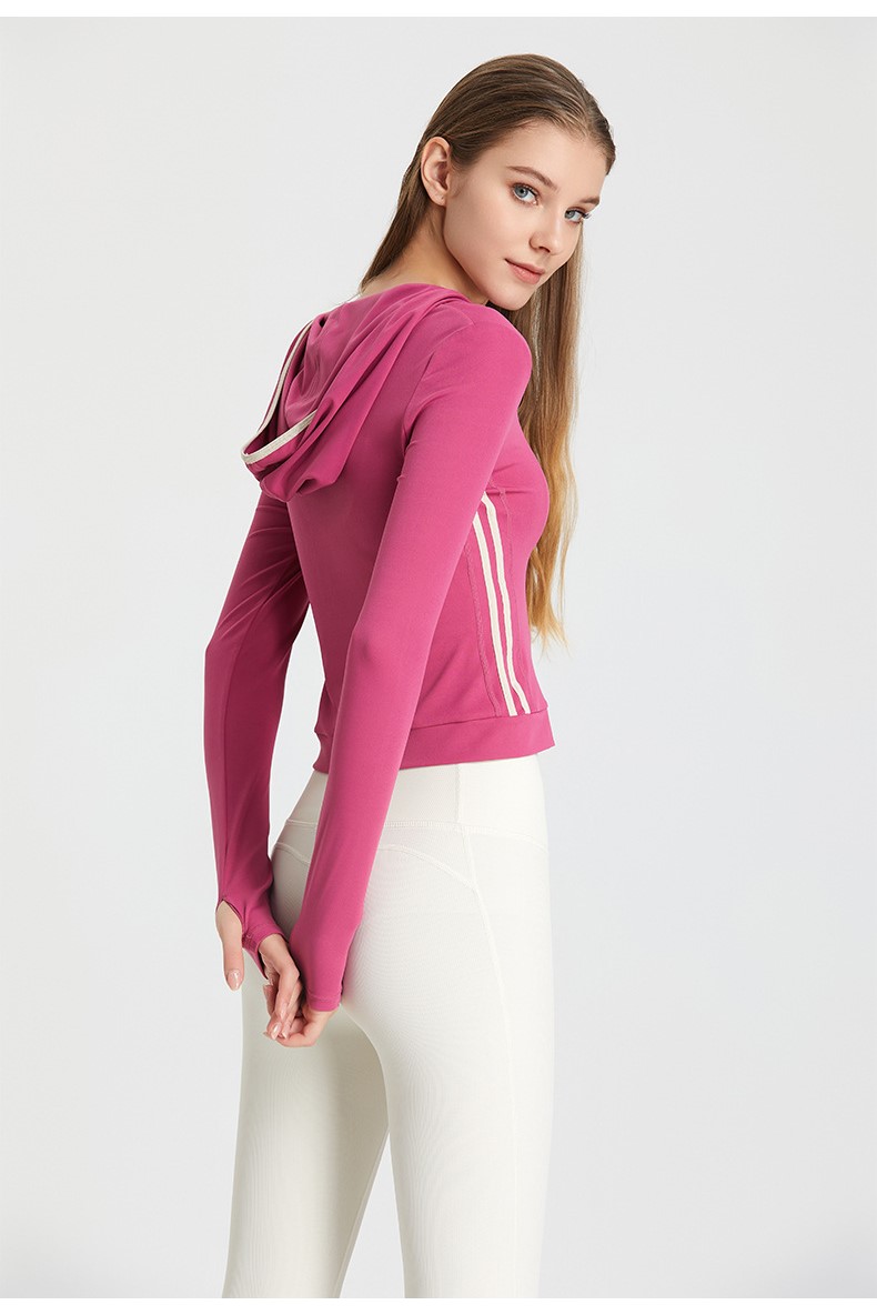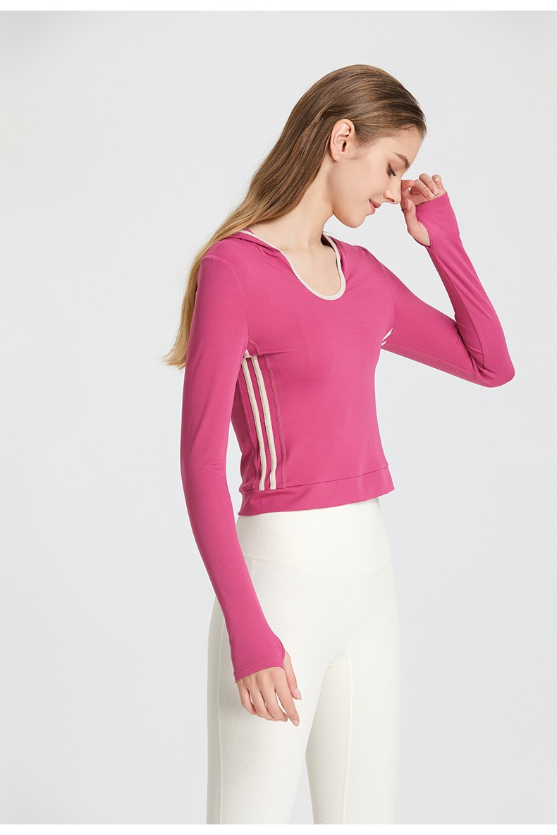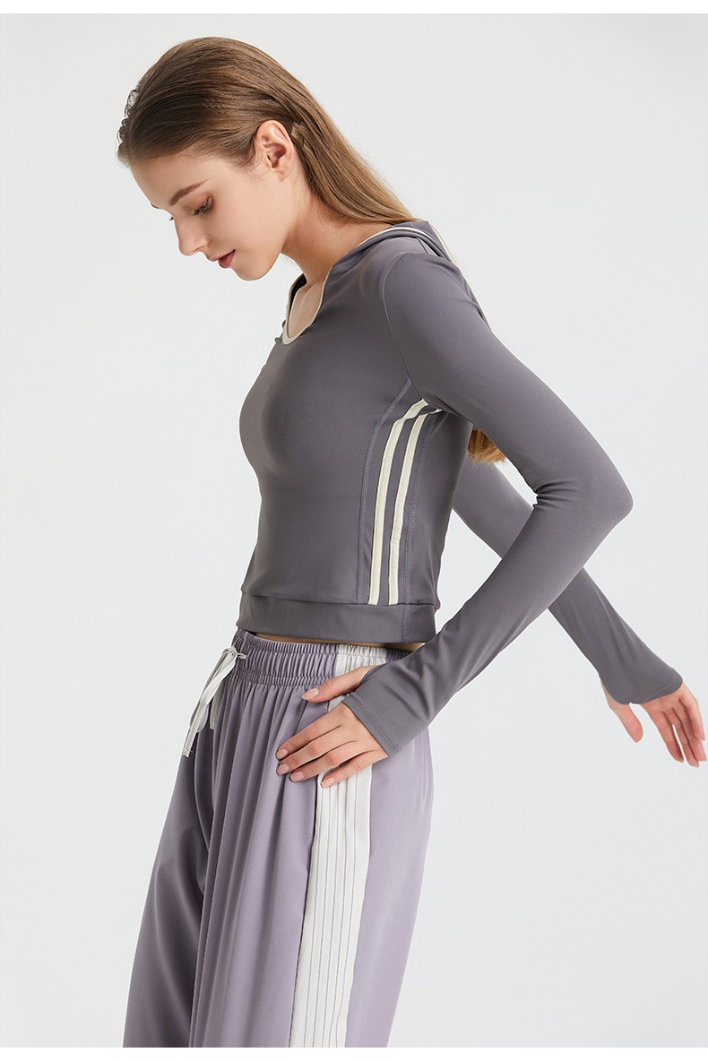 Women yoga top autumn silm fit hooded sports hoodies long sleeve stripe running fitness sweatshirts