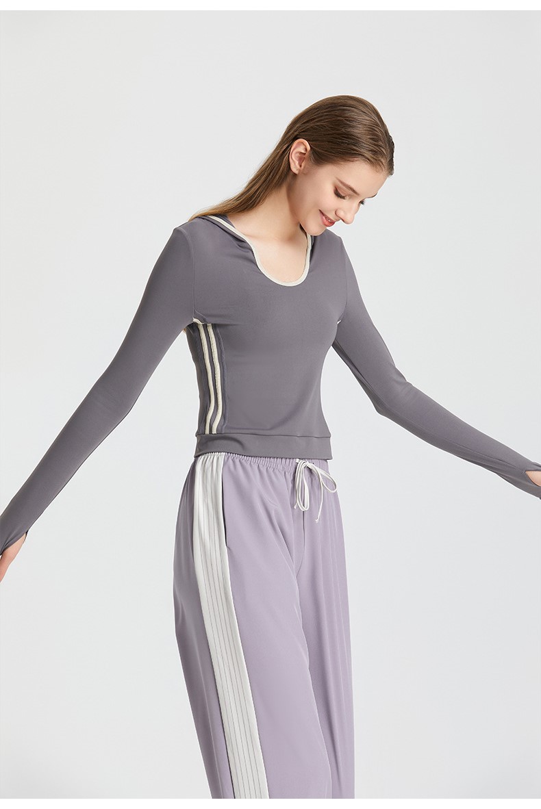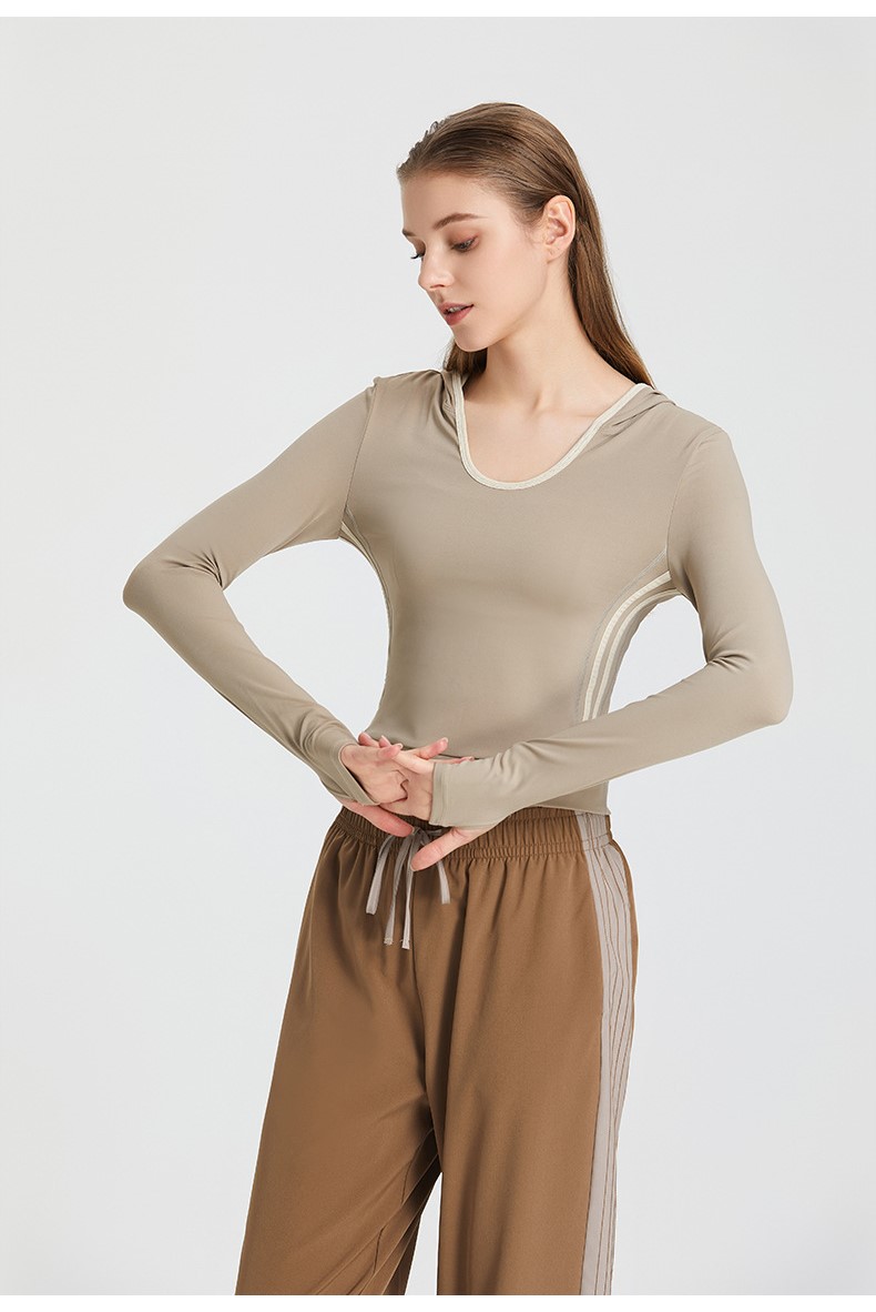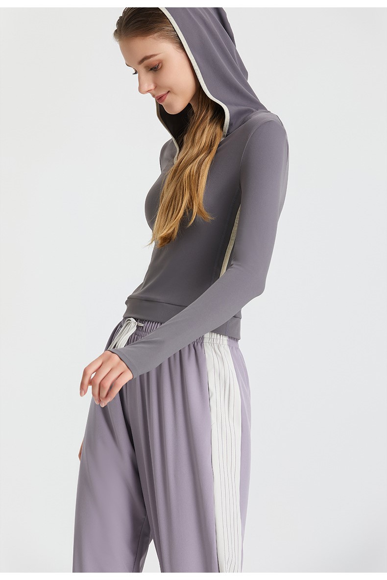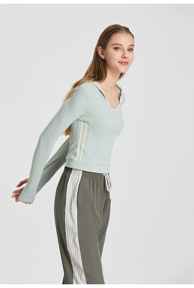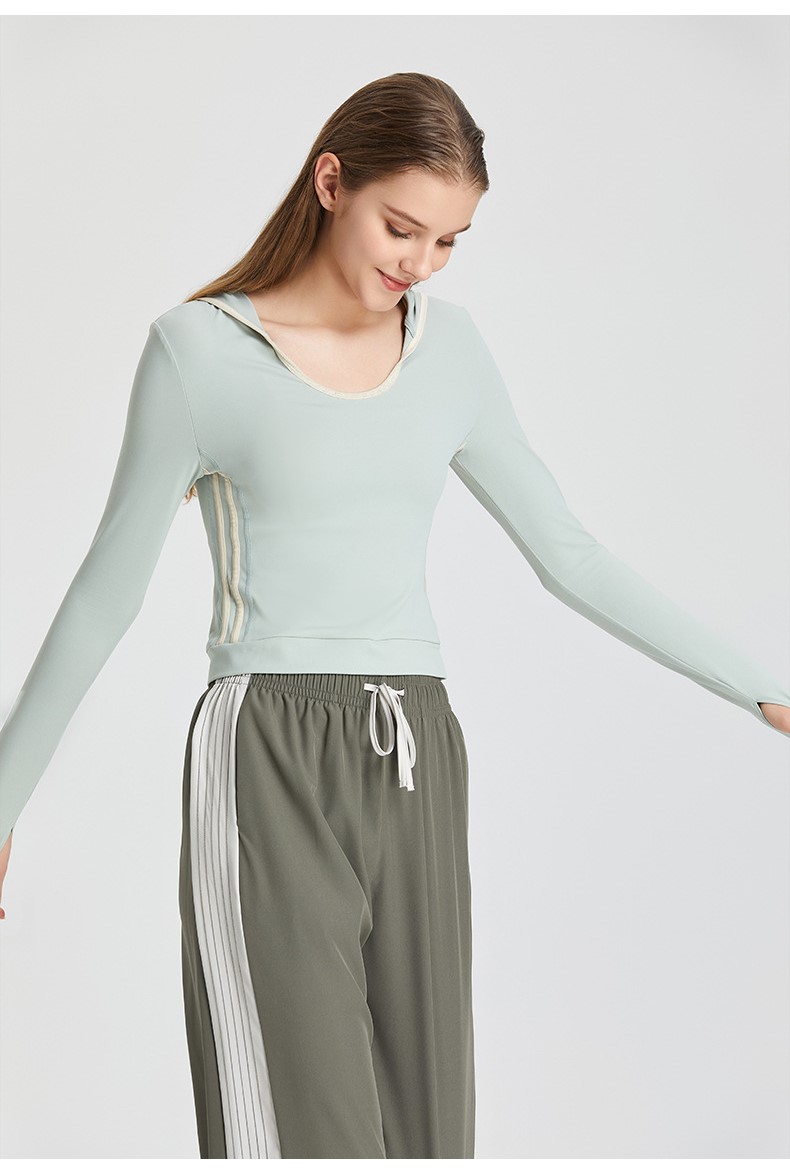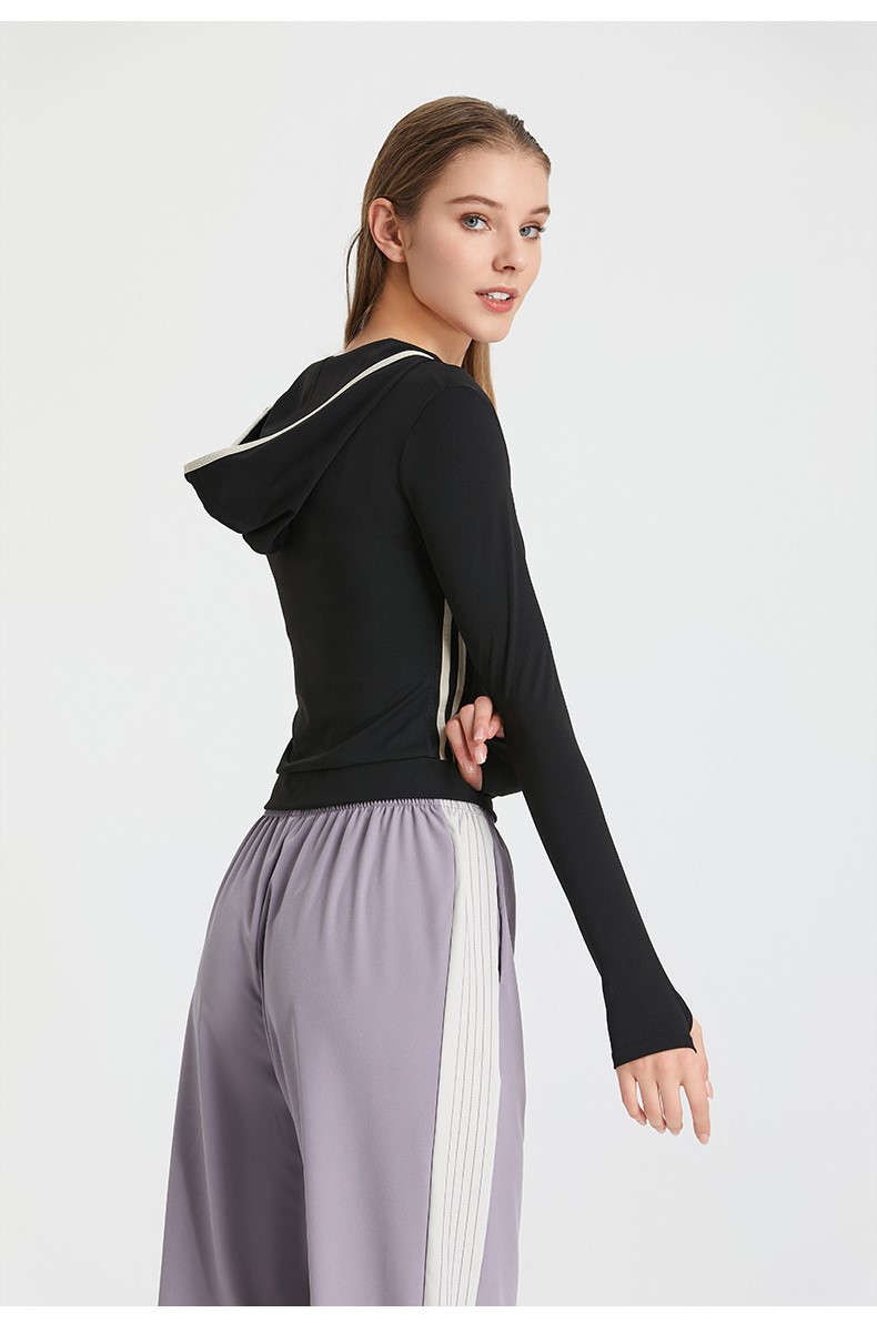 Women yoga top autumn silm fit hooded sports hoodies long sleeve stripe running fitness sweatshirts