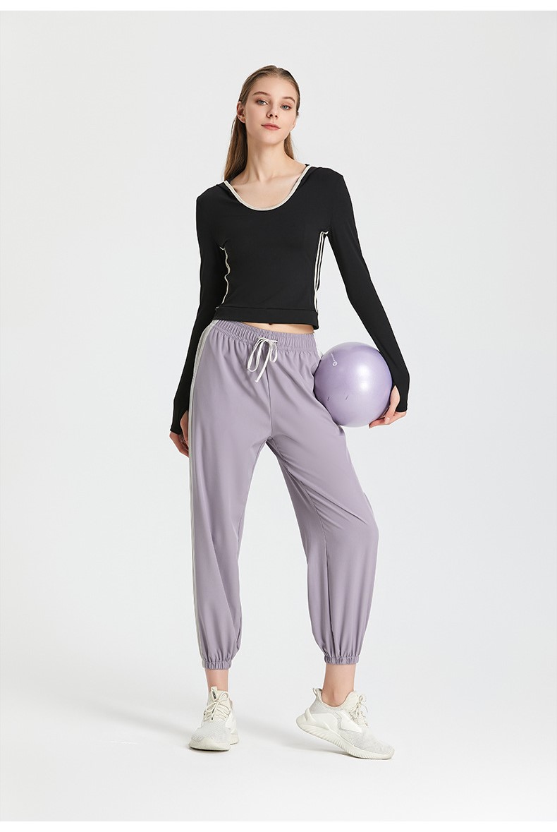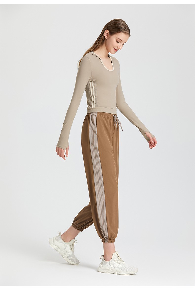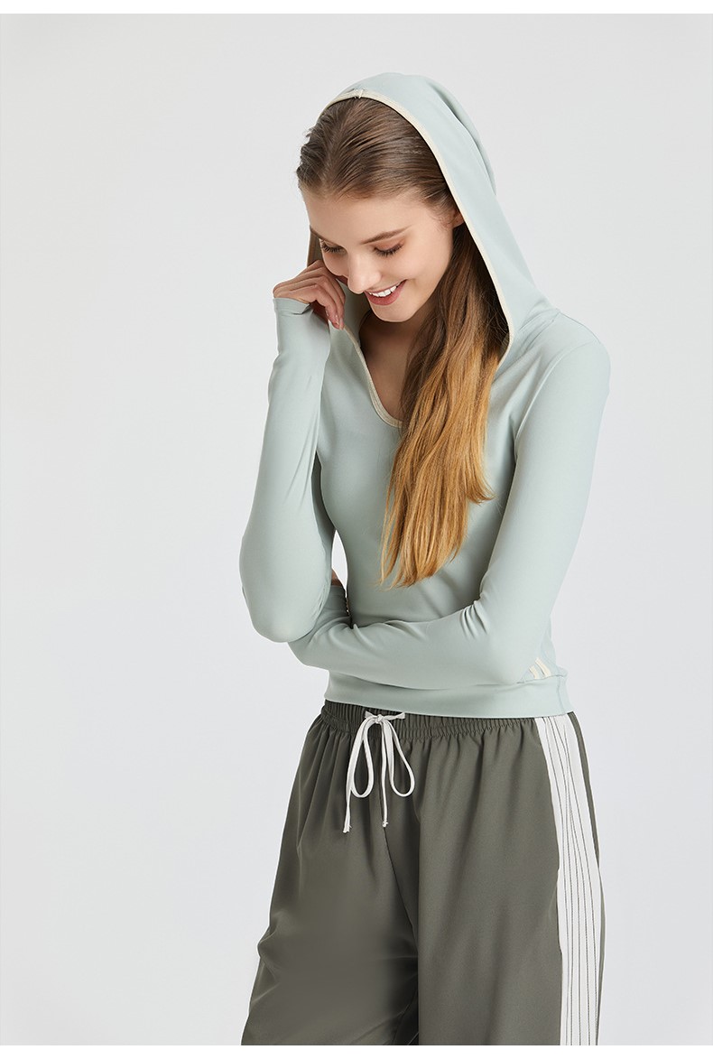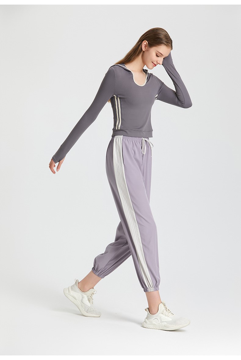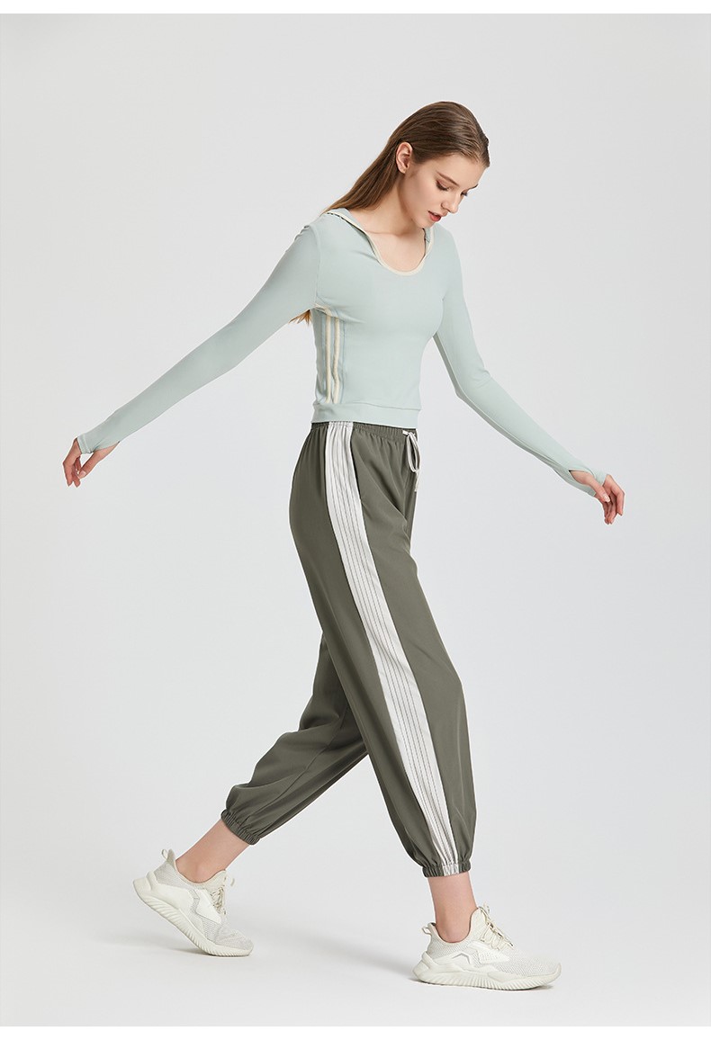 Women yoga top autumn silm fit hooded sports hoodies long sleeve stripe running fitness sweatshirts
