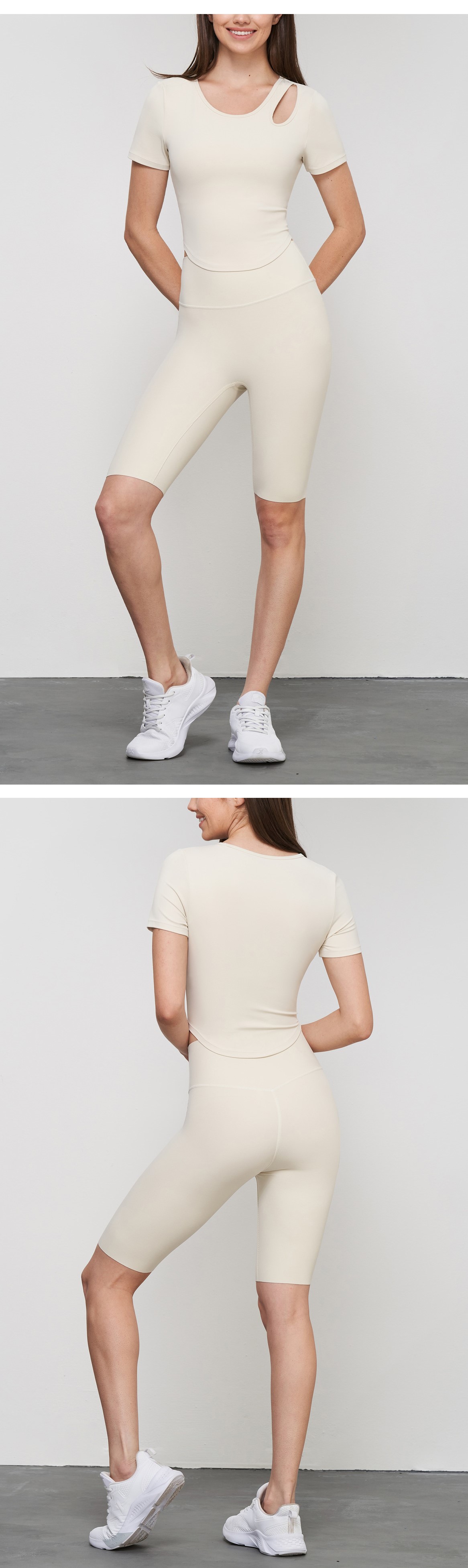 Women yoga top padded tank top hollow out curved hem workout fitness short sleeve tshirts