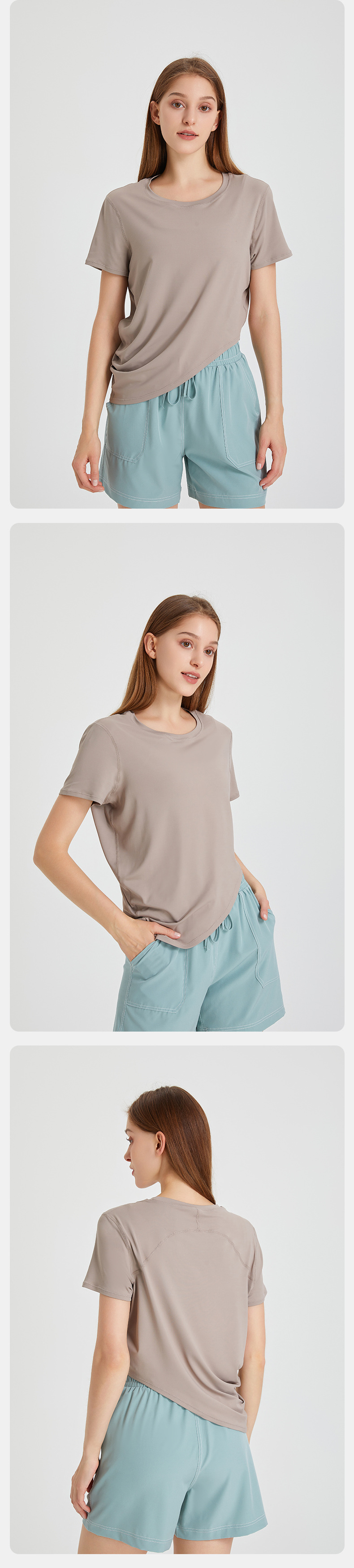 Women yoga top round neck breathable short sleeve running fitness quick dry workout sports t shirt