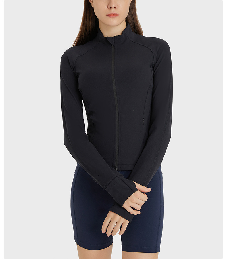 Women yoga wear autumn new zip pocket jacket long sleeve slim fit fitness workout active coat