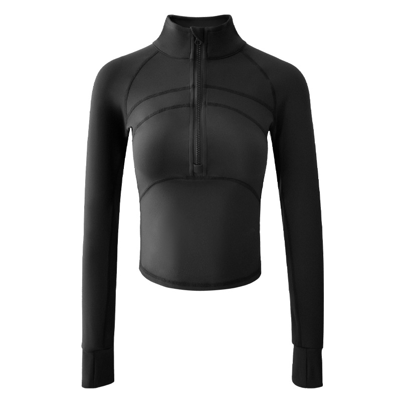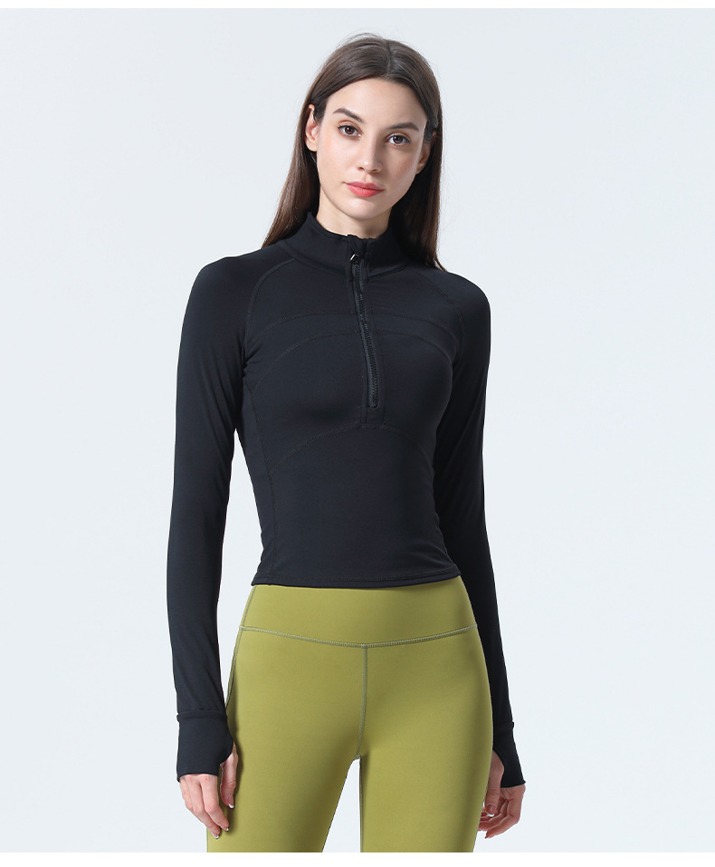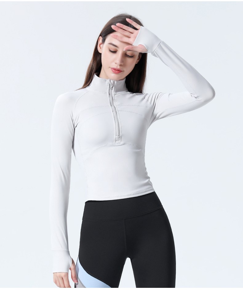 Womens 1/2 zip long sleeve sweatshirt yoga running fitness gym coat with thumb hole