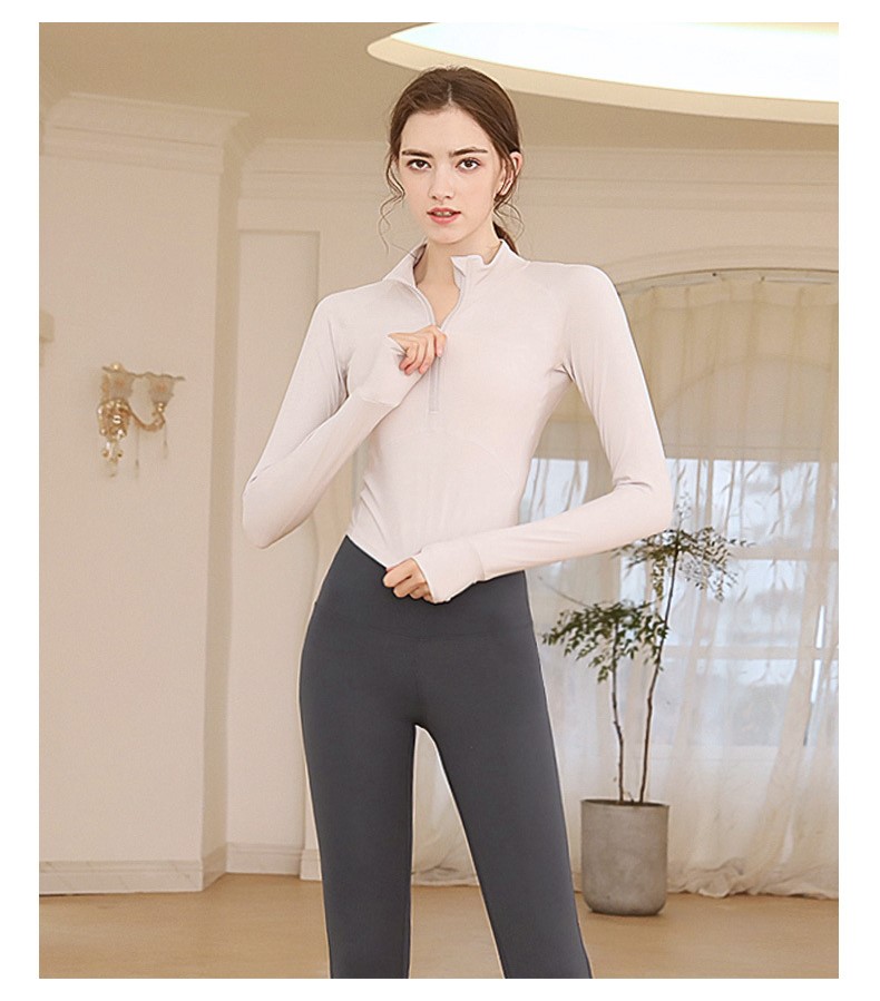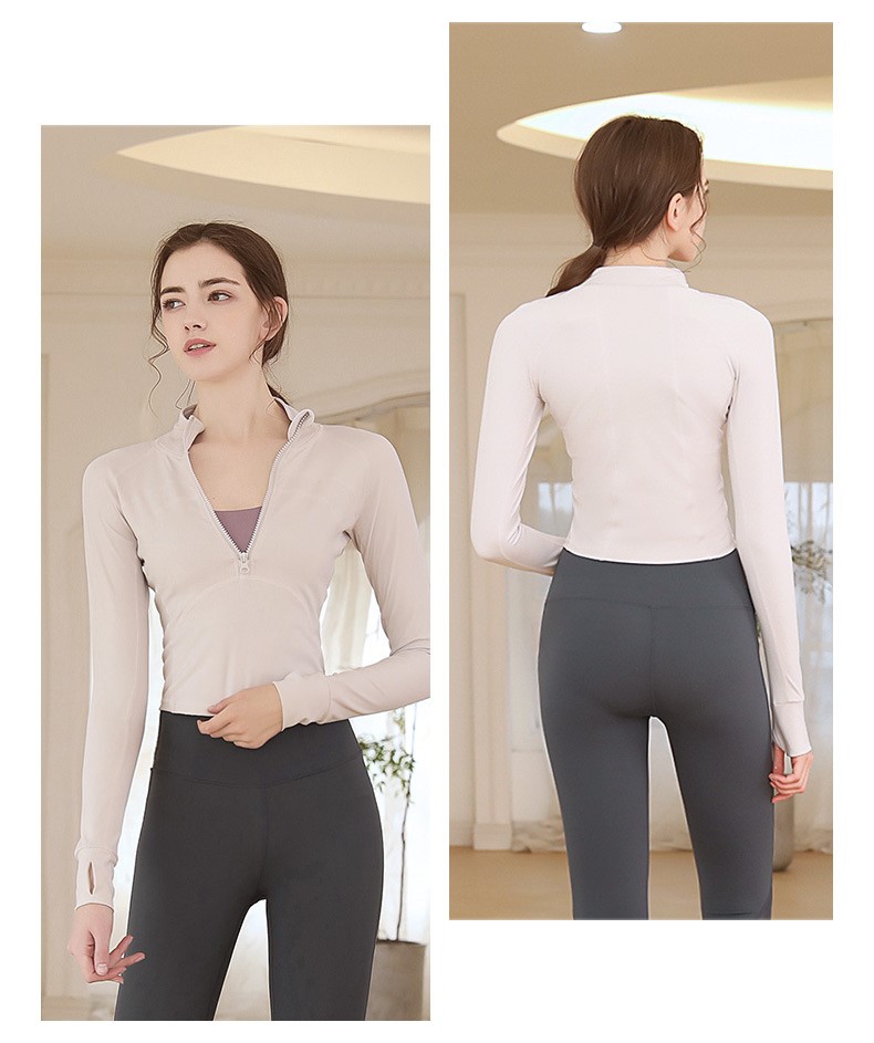 Womens 1/2 zip long sleeve tshirt slim fit running crop sweatshirt sports top with thumb holes