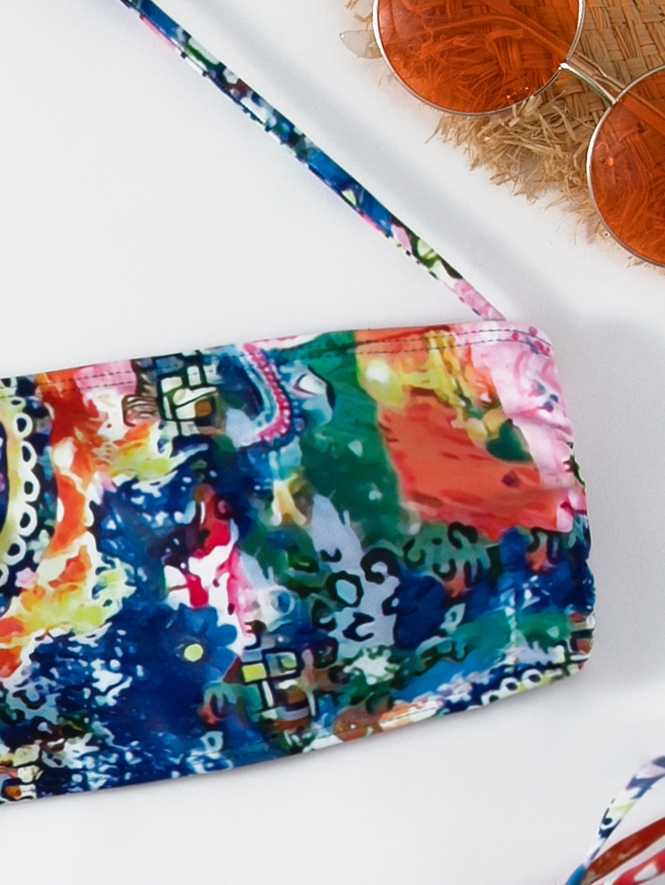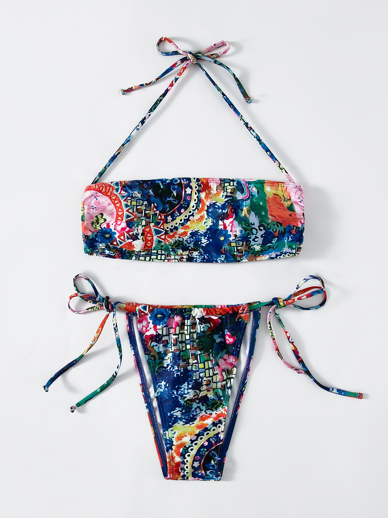 Womens 2 piece halter bandeau bikini set printed triangle bathing suit tie string thong swimwear