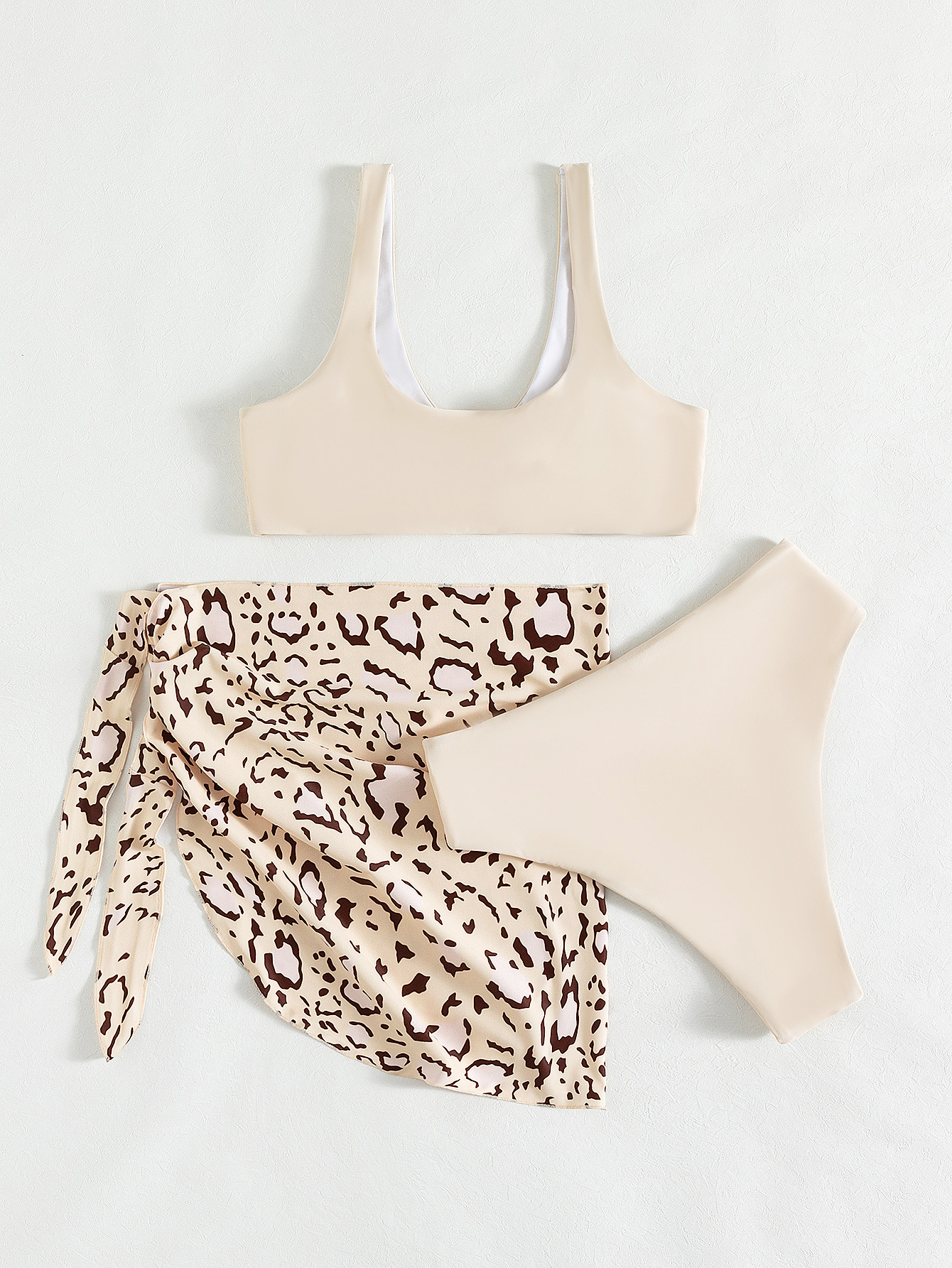 Womens 3 pieces bow tie underwire high cut bikini set sexy bathing suits with cover up wrap skirt