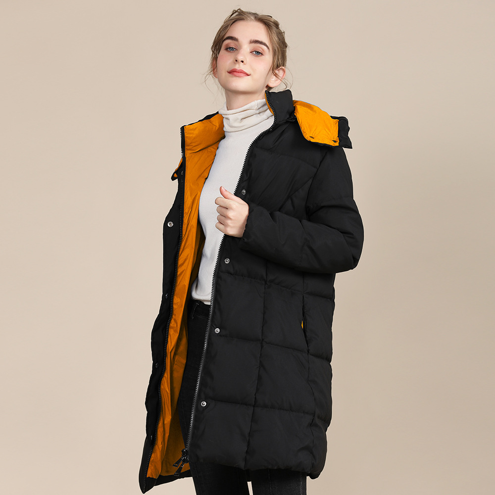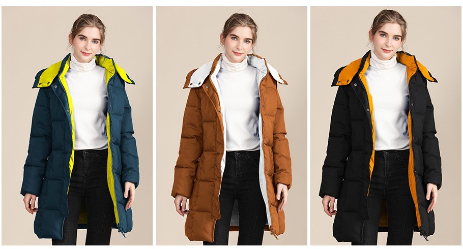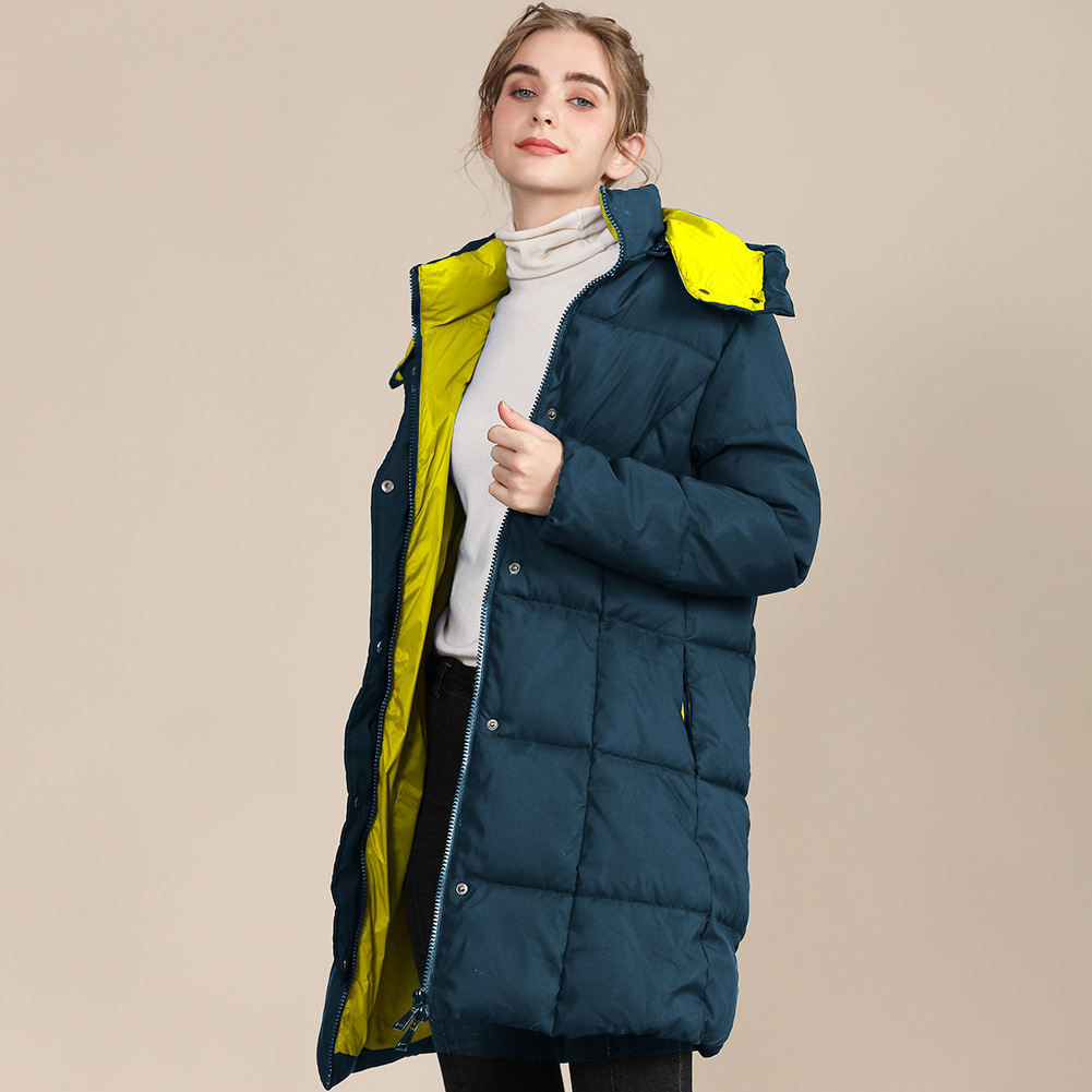 Women’s colorblock padded long jacket hooded full zip up quilted jackets – Coats | Outdoor wear