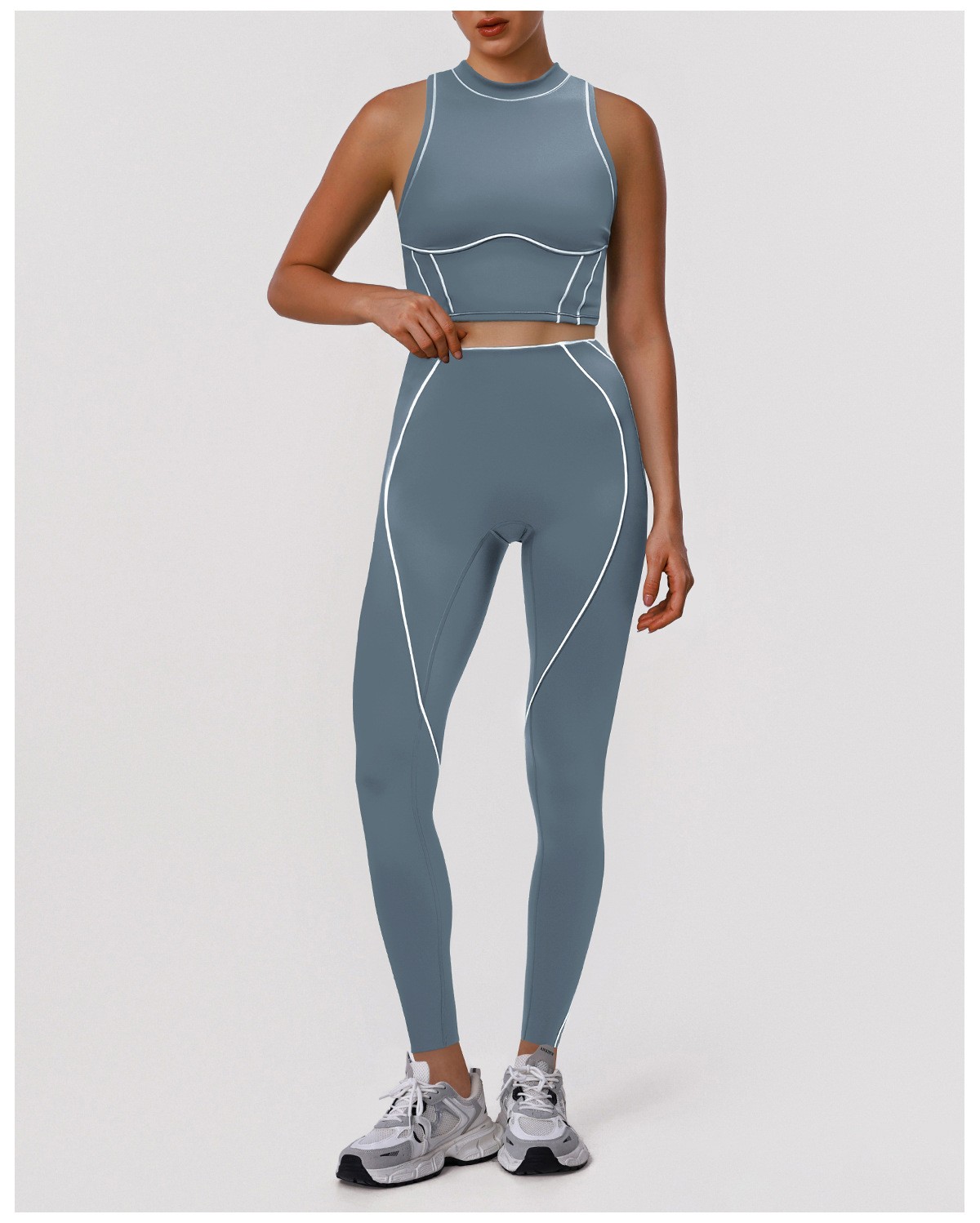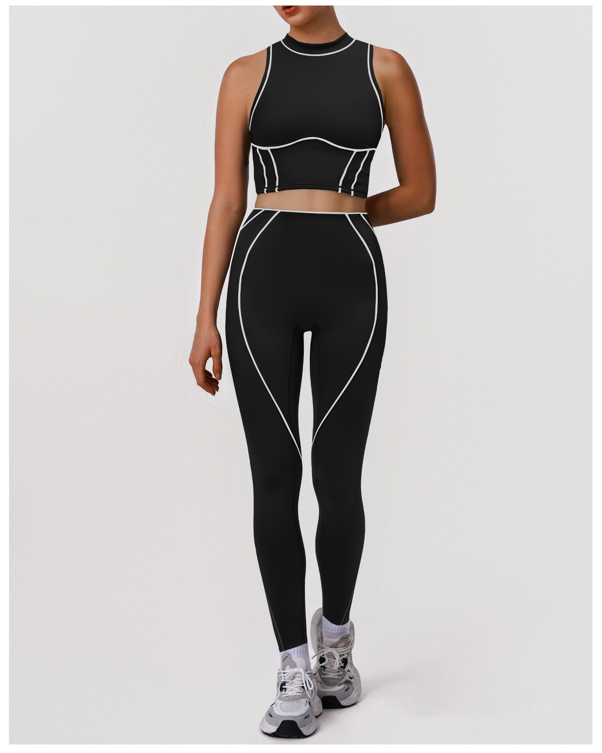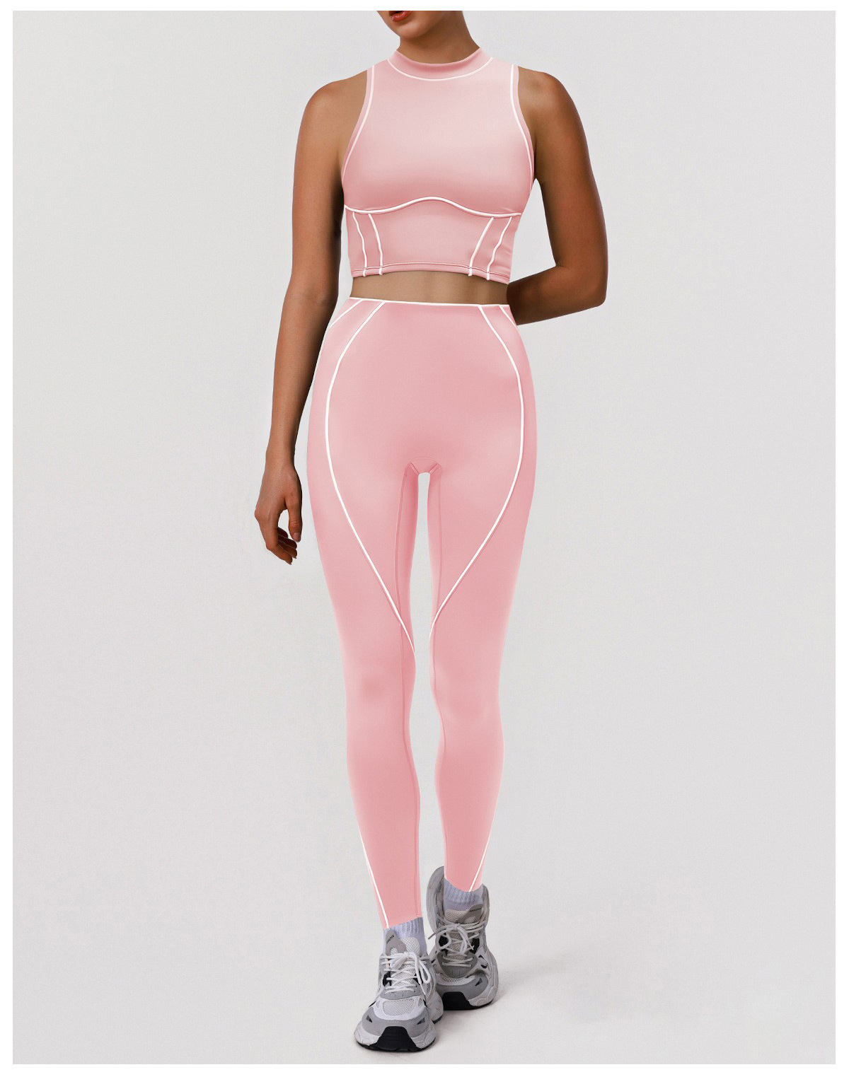 Women's Custom Contrast Color Yoga Workout Set - Shockproof Bra & Compression Leggings for Fitness Training: Omi Apparel Limited offers women's custom color block yoga set, including shockproof high-support sports bra and tight compression training leggings. Ideal for yoga, fitness, running, and daily workouts. Factory-direct bulk customization available. Soft, stretch, moisture-wicking fabric ensures comfort, support, and freedom of movement. Stylish contrast color design, flattering fit, and durable craftsmanship. Tailored to your brand, size, and design needs.