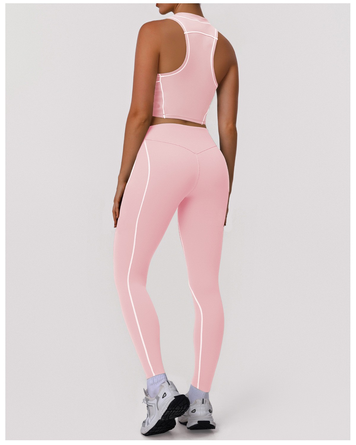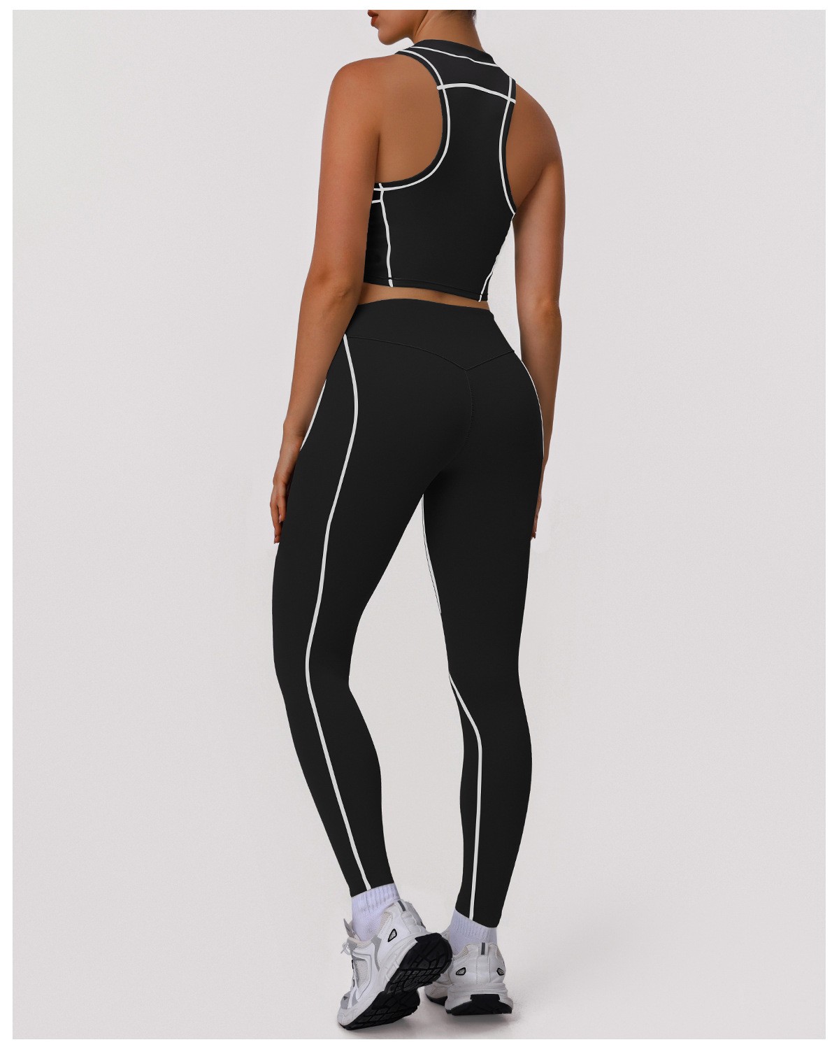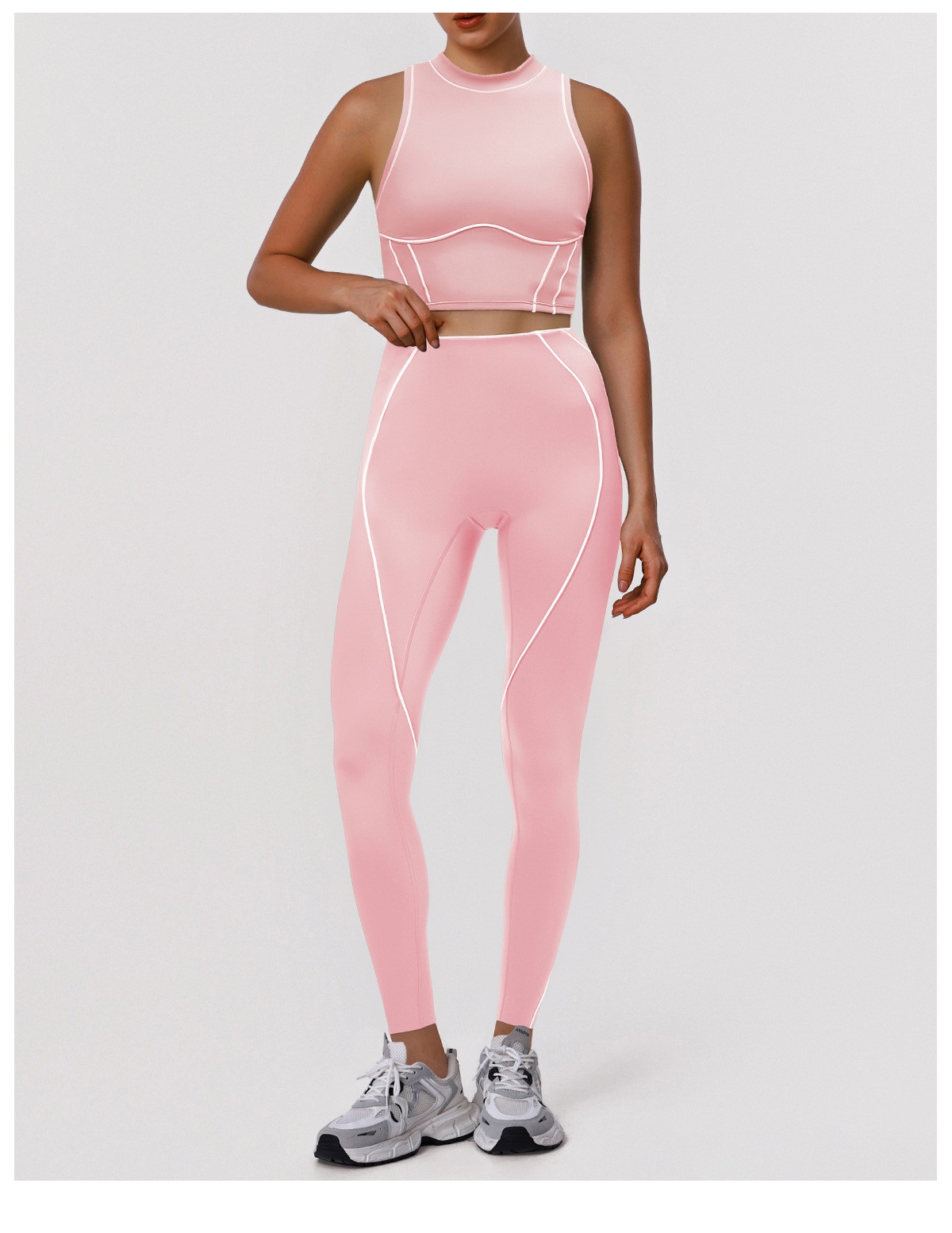 Women's Custom Contrast Color Yoga Workout Set - Shockproof Bra & Compression Leggings for Fitness Training: Omi Apparel Limited offers women's custom color block yoga set, including shockproof high-support sports bra and tight compression training leggings. Ideal for yoga, fitness, running, and daily workouts. Factory-direct bulk customization available. Soft, stretch, moisture-wicking fabric ensures comfort, support, and freedom of movement. Stylish contrast color design, flattering fit, and durable craftsmanship. Tailored to your brand, size, and design needs.