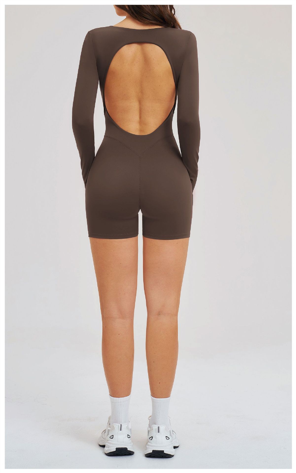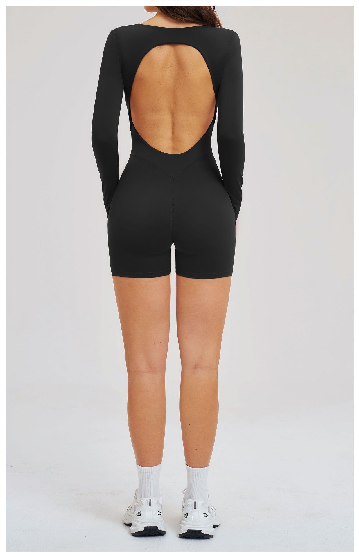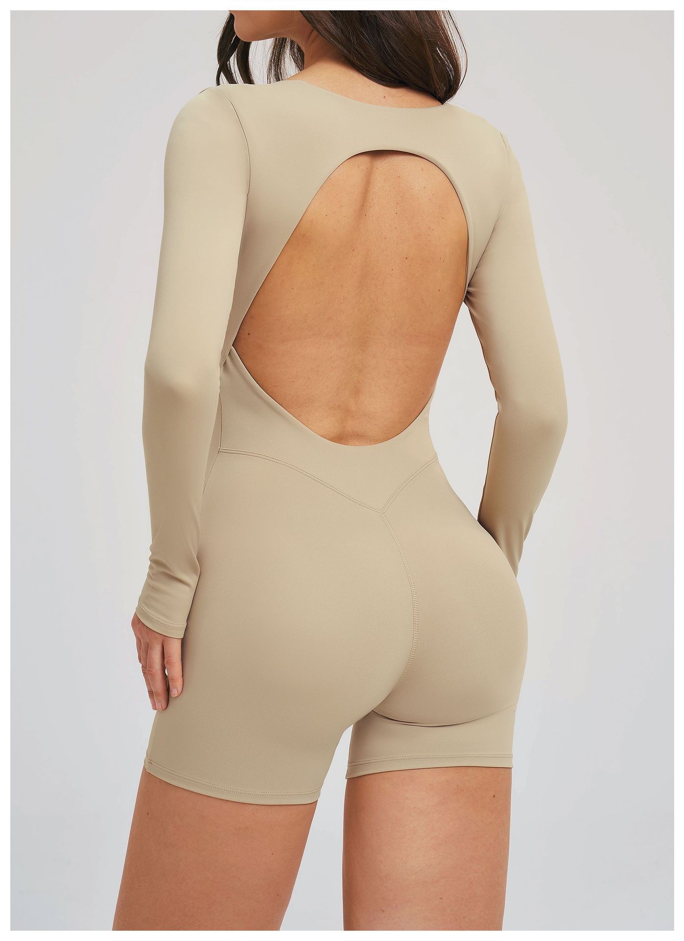 Women’s Custom Hollow Out Open Back Tight Fitness Onesie – Long Sleeve Yoga Suit for Outdoor Running & Gym