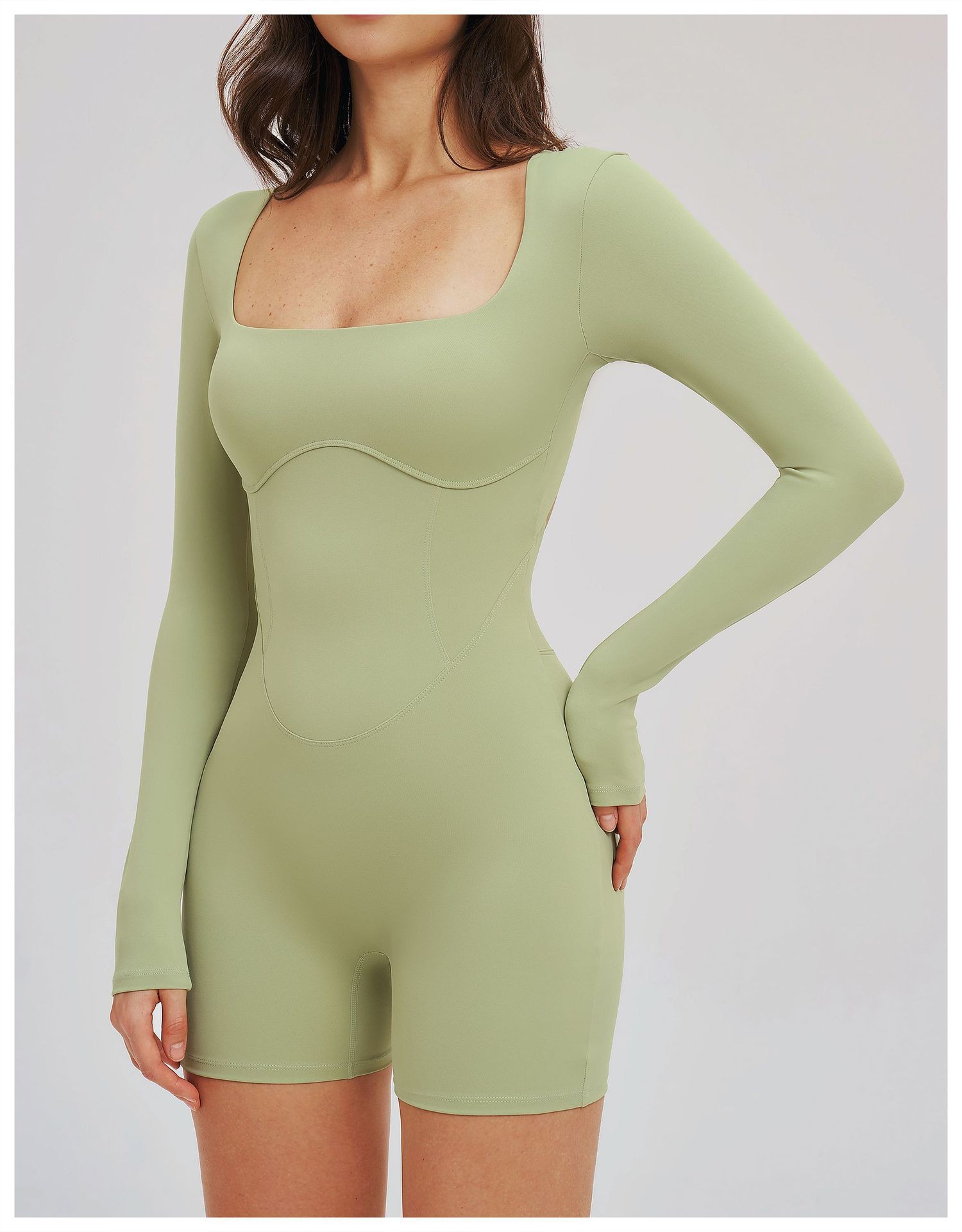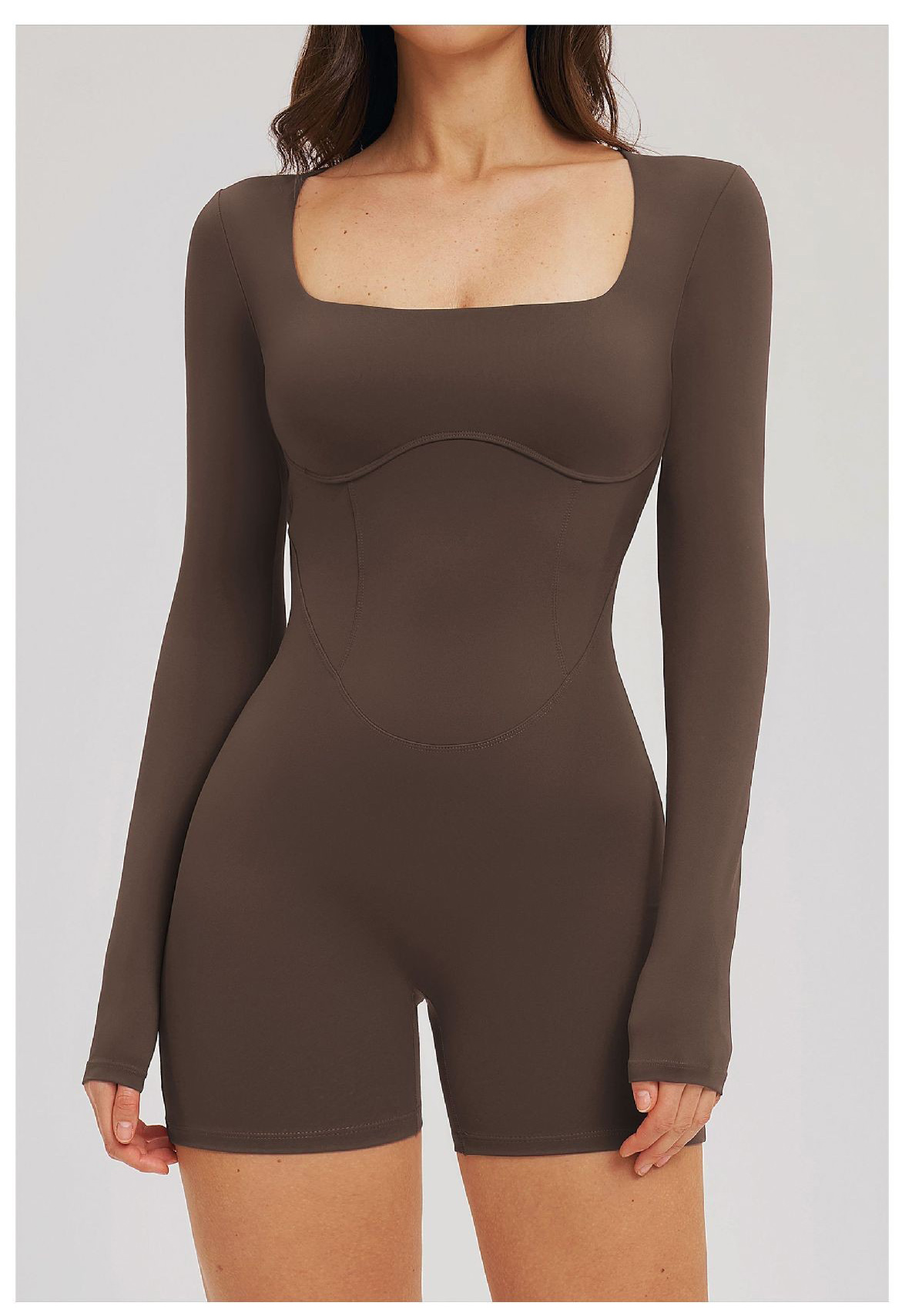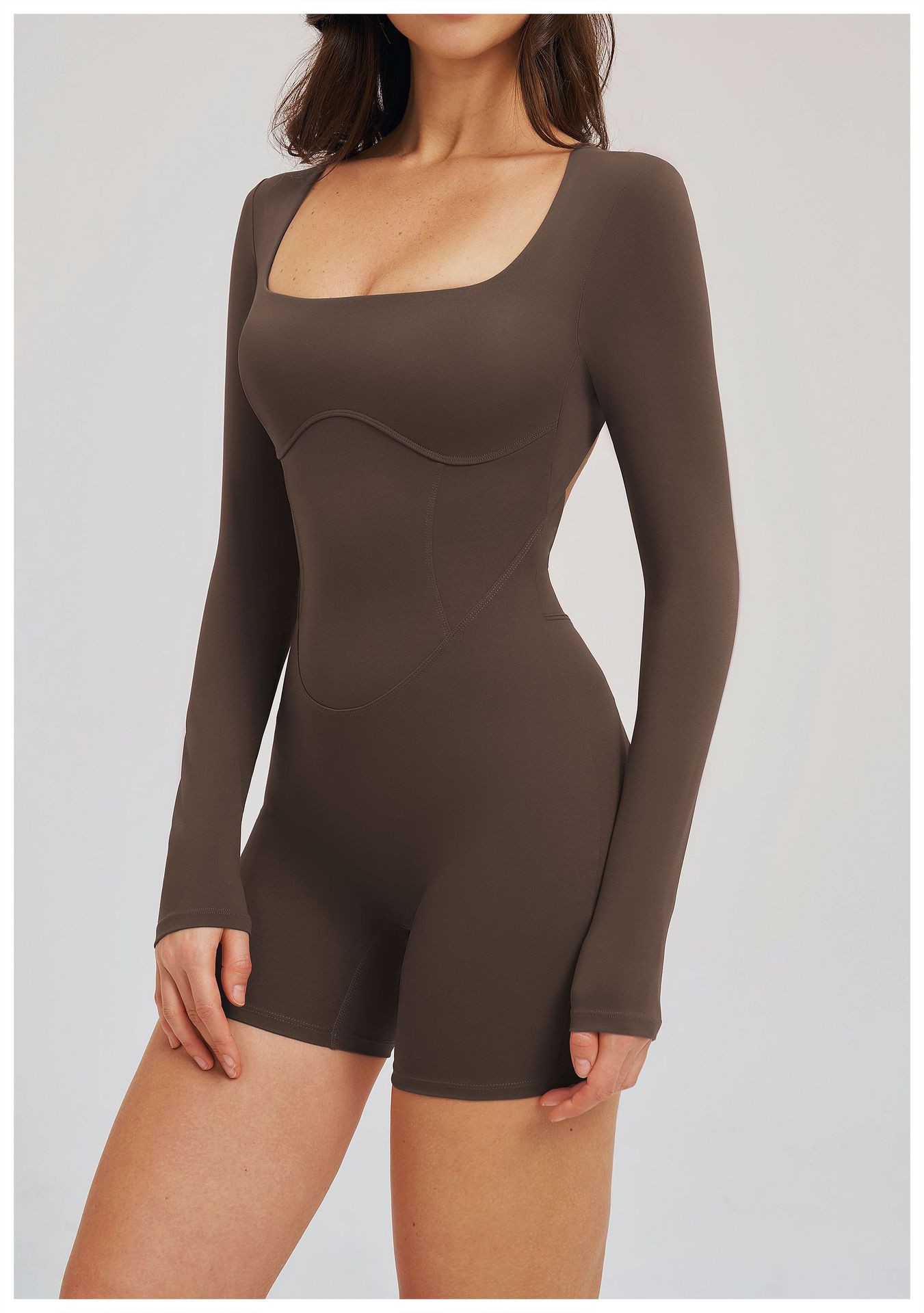 Women’s Custom Hollow Out Open Back Tight Fitness Onesie – Long Sleeve Yoga Suit for Outdoor Running & Gym