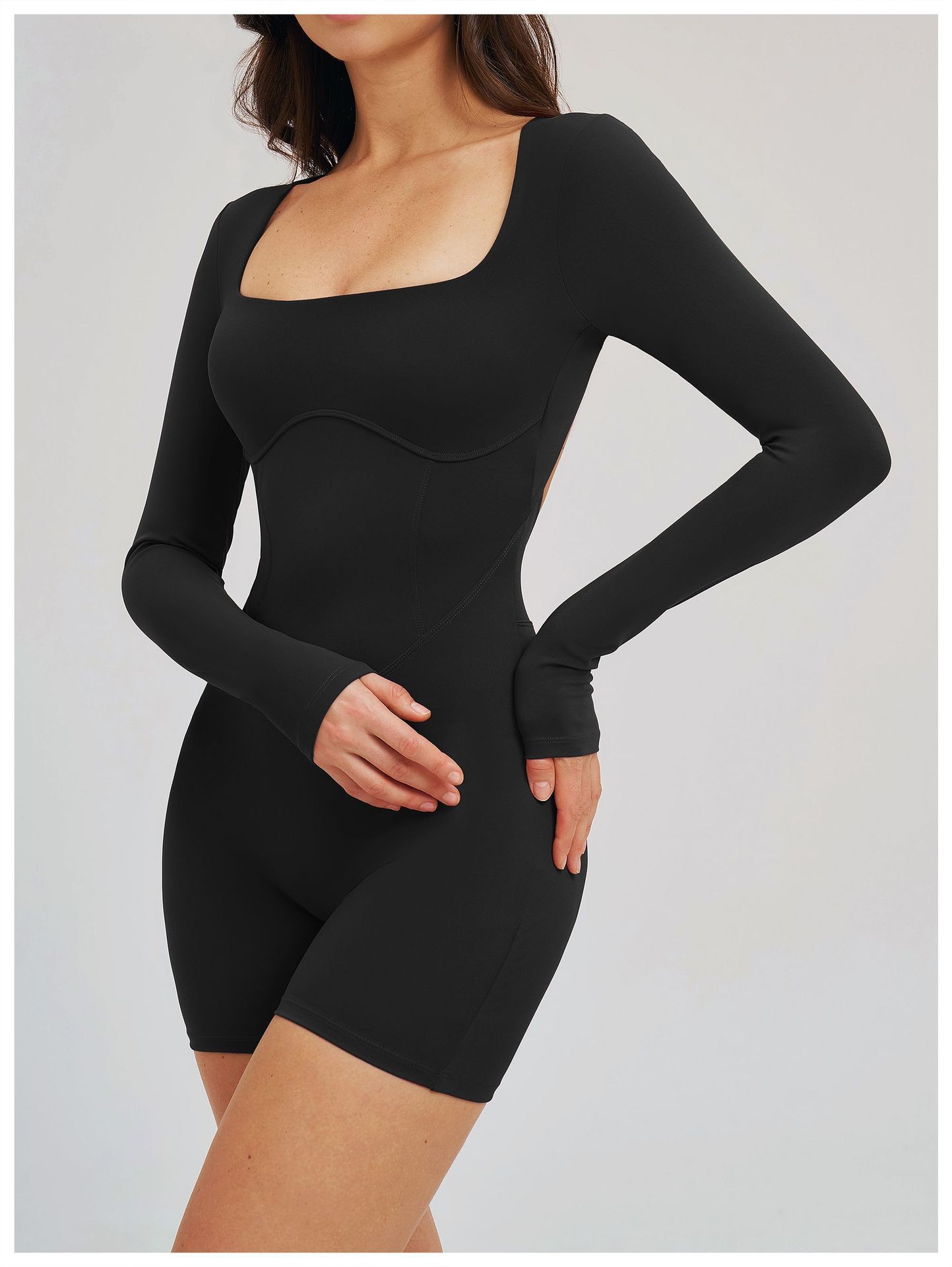 Women's Custom Hollow Out Open Back Tight Fitness Onesie - Long Sleeve Yoga Suit for Outdoor Running & Gym: Omi Apparel Limited provides women's custom hollow out open back tight fitness onesie—long sleeve yoga suit for outdoor running, gym & yoga. Factory-direct bulk customization available. Soft stretch fabric ensures comfort, support and flattering curves. High-quality craft, tailored to your needs.