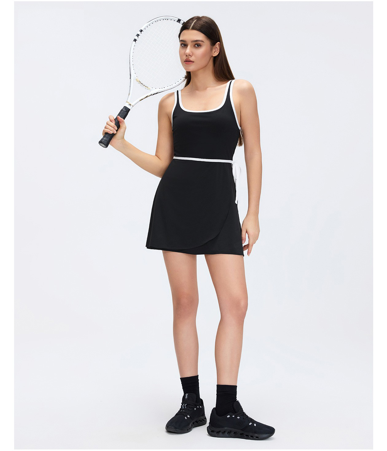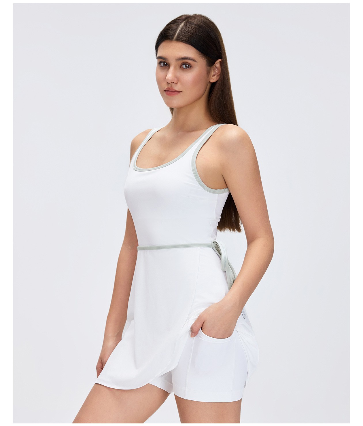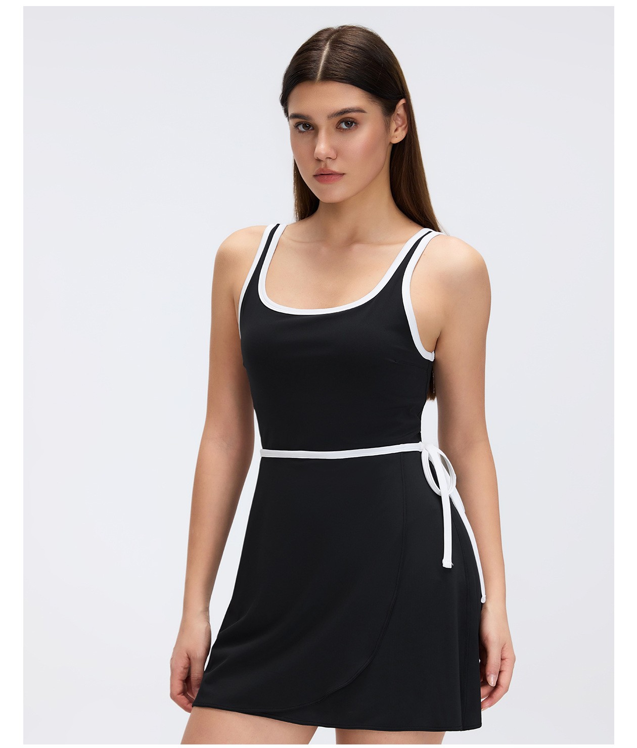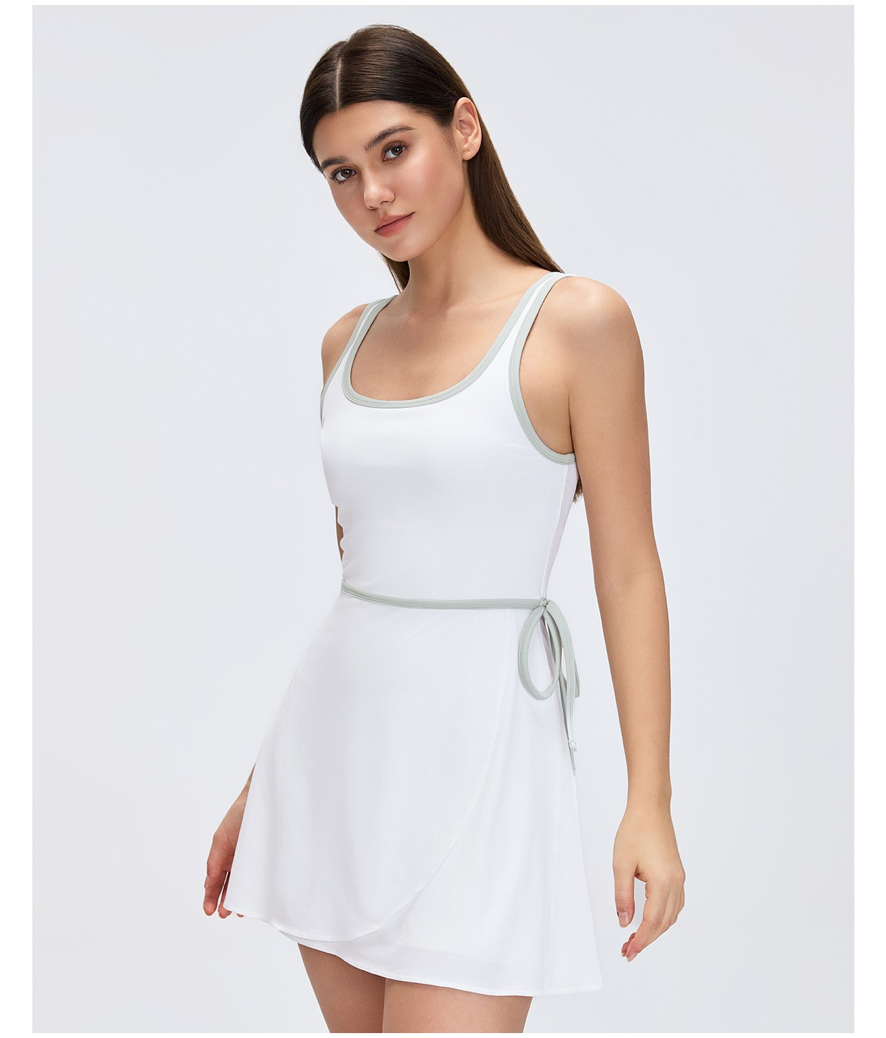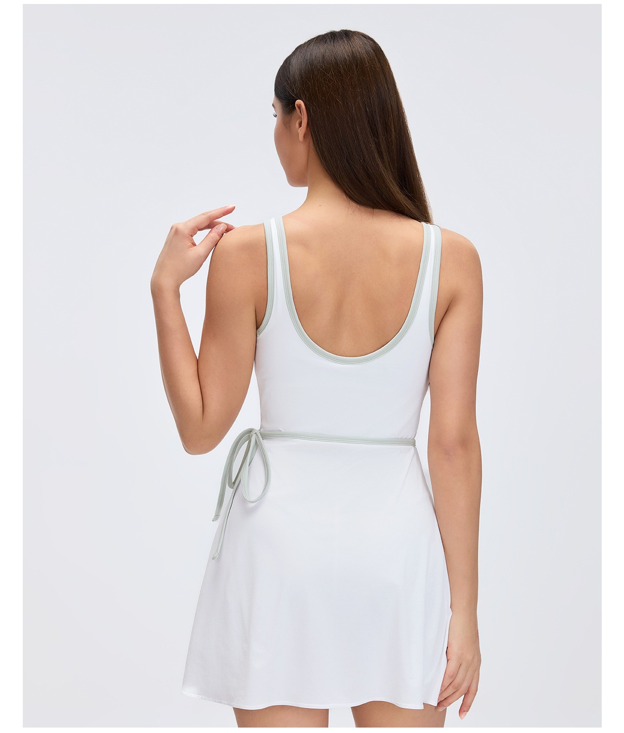 Women's Custom Yoga Tennis Skort Dress - Built-in Bra Pad, Breathable Open Back, Anti-Exposure Fitness Sports Dress: Omi Apparel Limited provides women's custom sports dress with built-in bra pad, breathable open back, and anti-exposure yoga/tennis skort. Perfect for yoga, fitness, tennis, and outdoor activities. Factory-direct bulk customization available. Soft, stretch, moisture-wicking fabric ensures comfort and support. Stylish open back, secure anti-exposure design, and flattering fit for all movements. High-quality craftsmanship, tailored to your brand and requirements.