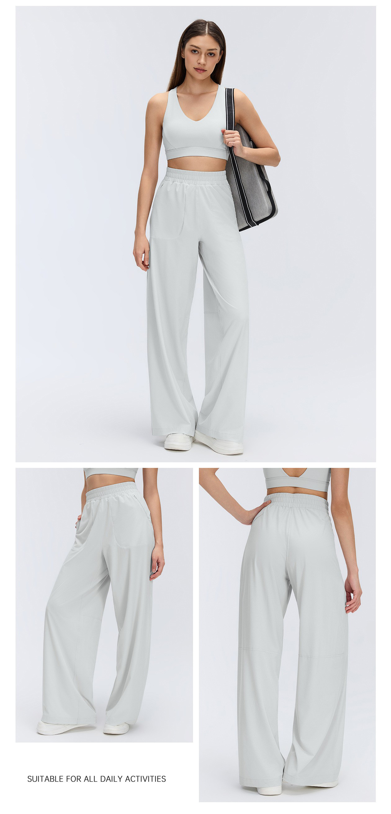 Custom Women’s Lightweight Breathable Straight Leg Sports Pants Loose Slim Fit Casual Wide Leg Trousers: These women’s wide leg sports pants are lightweight, thin and breathable, perfect for spring and summer. Loose yet slim fit with adjustable drawstring waist for comfort. Straight wide leg design flatters all body types, ideal for workout, gym, running, daily casual and outdoor wear.