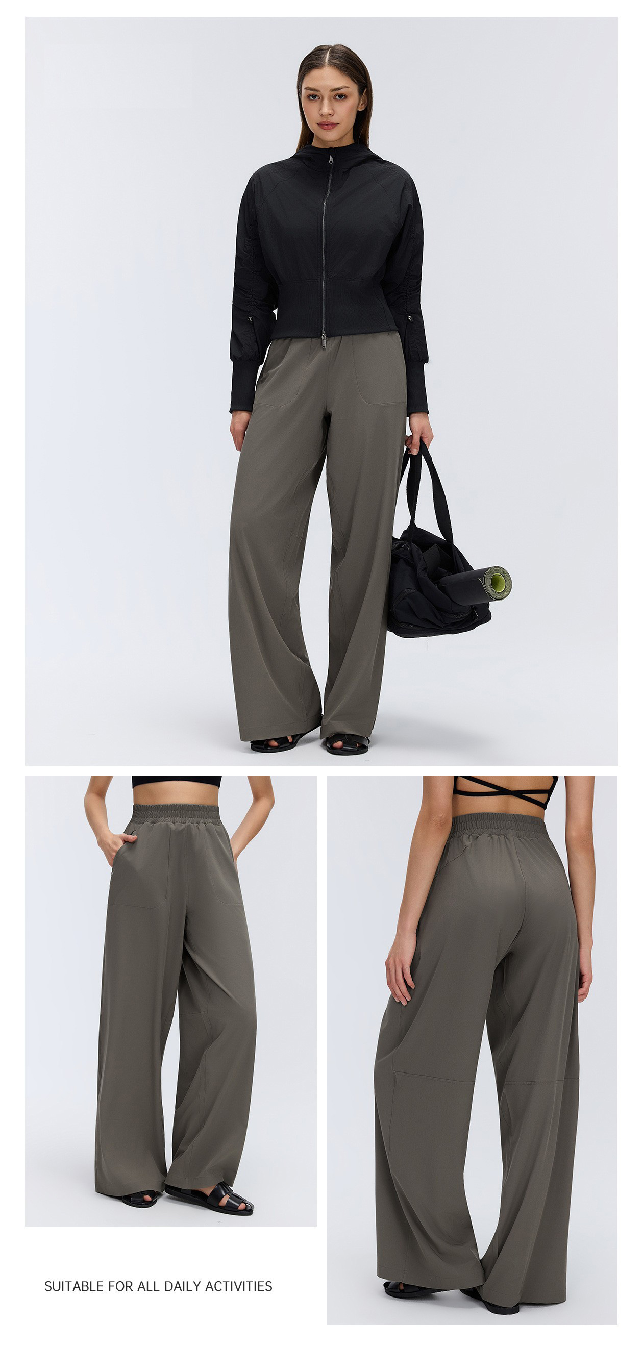 Women’s Custom Spring Summer Thin Breathable Straight Sports Pants Drawstring Loose Slim Casual Wide Leg Pants