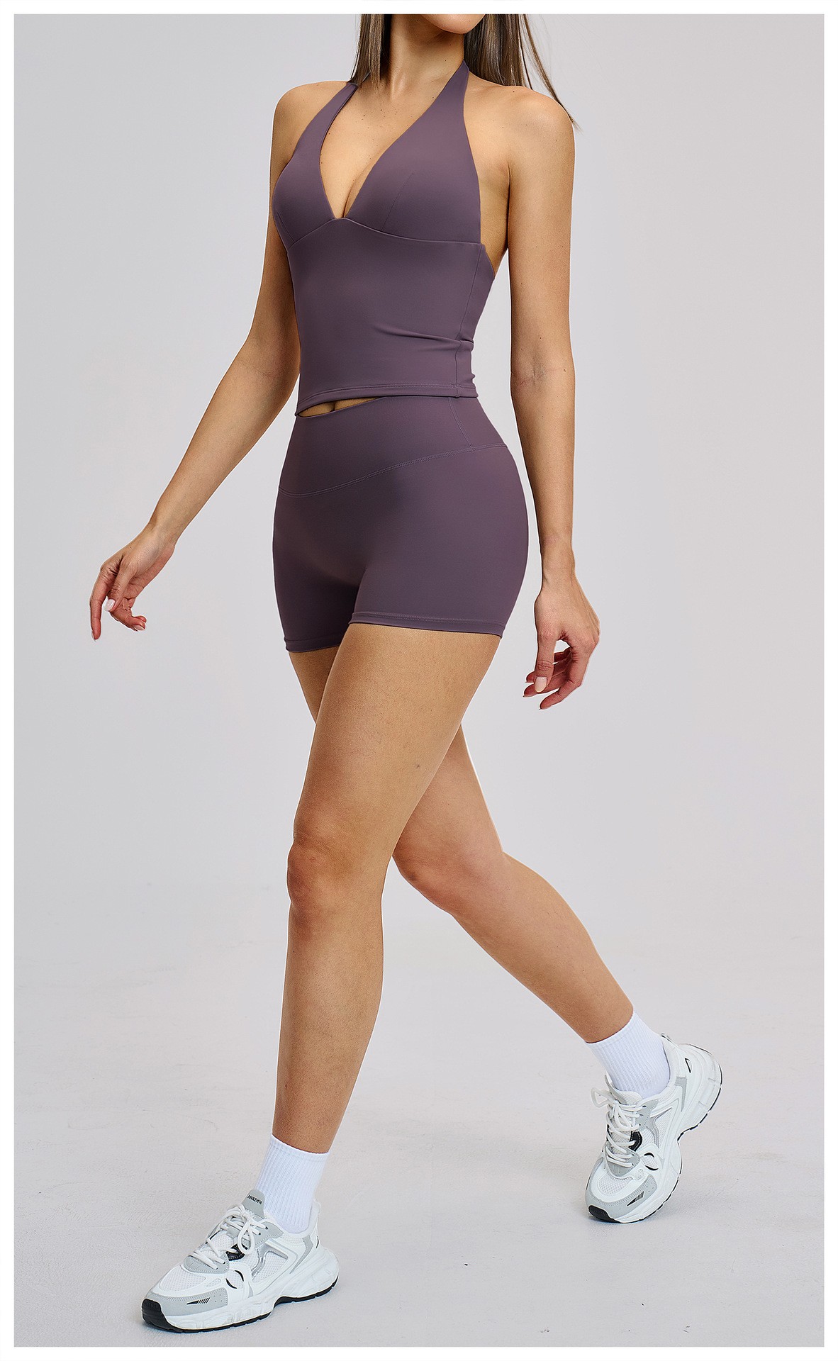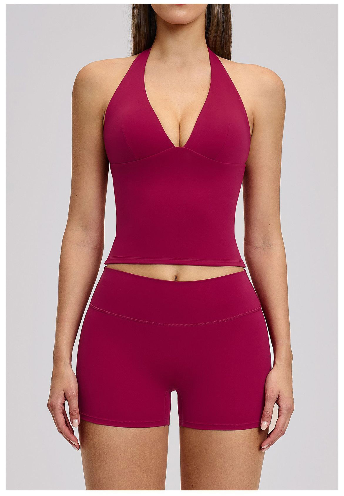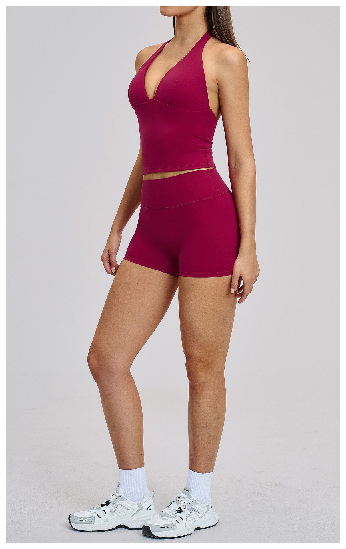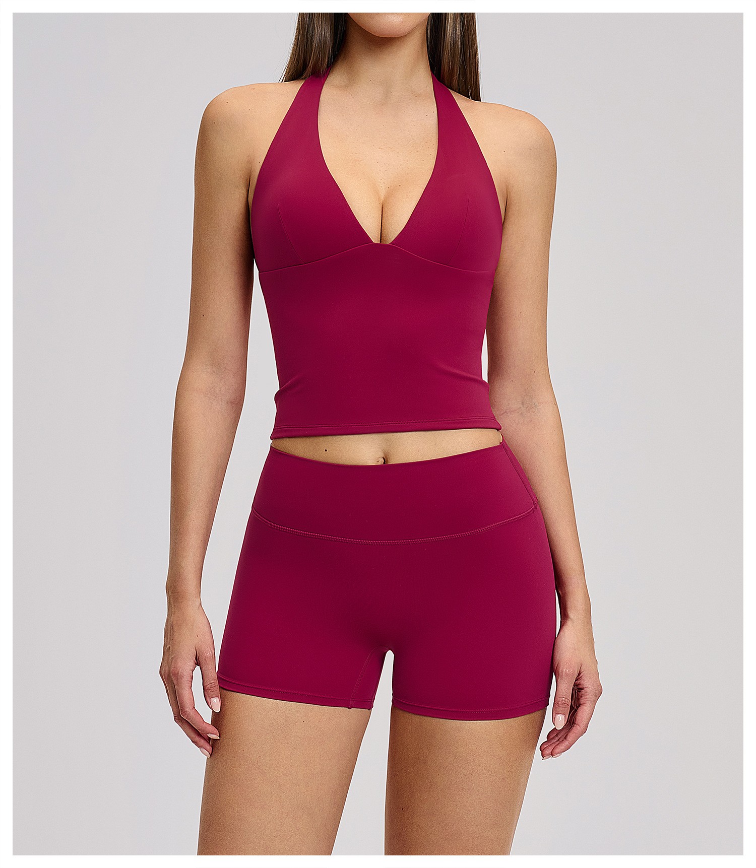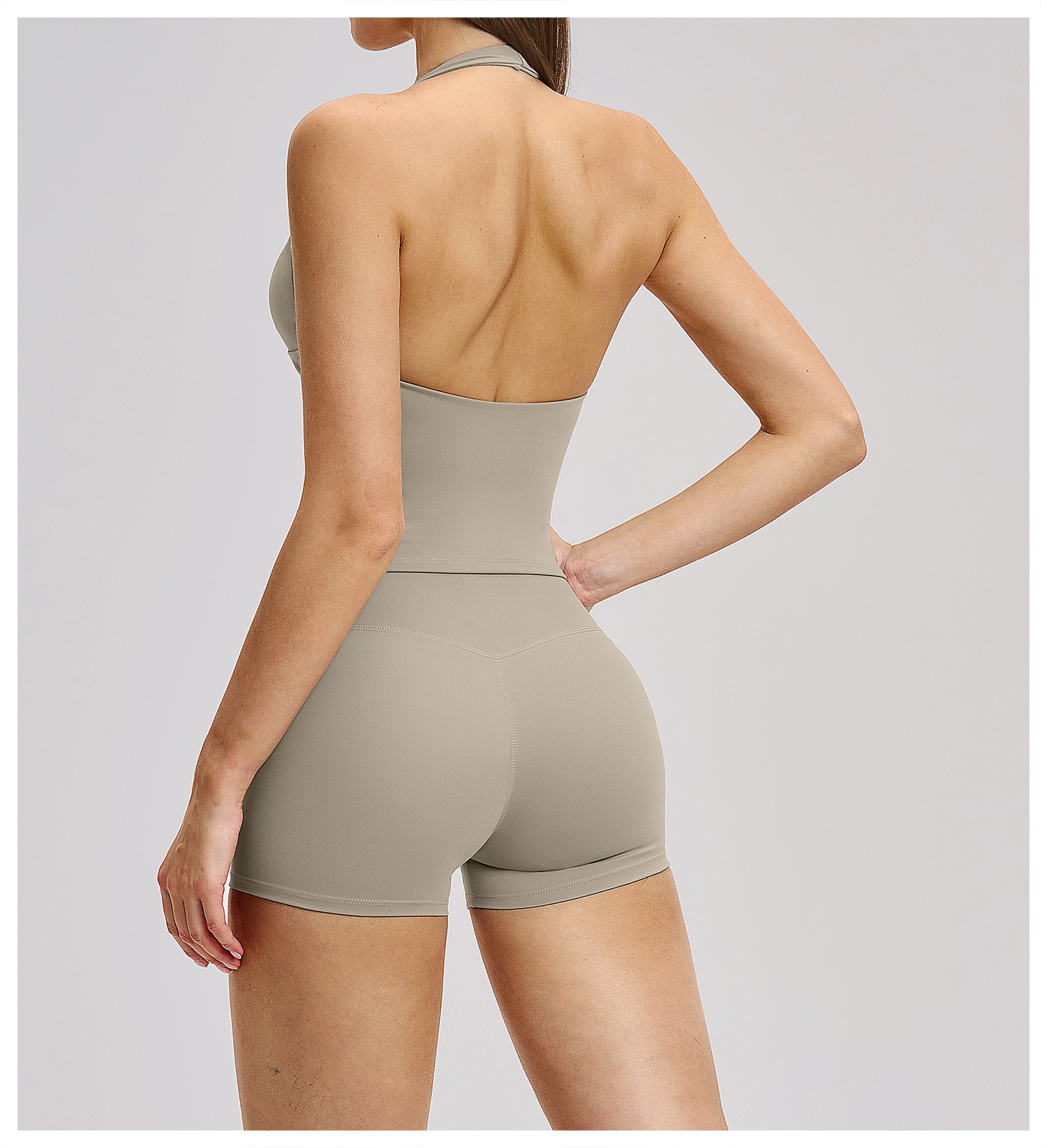 Women’s Halter Beauty Back Yoga Vest with Removable Pads High Elasticity Workout Yoga Set: This women’s halter backless yoga set comes with a built-in chest pad vest and high-stretch bottoms. Soft, breathable, moisture-wicking and quick-dry fabric provides all-day comfort for yoga, gym, training and daily wear. The stylish back design and high-elastic fabric offer great support and a flattering fit. Omi Apparel Limited supports direct factory bulk customization. Custom logo, color, size and style are available. Stable quality, competitive price and on-time delivery. Ideal for brand wholesale and retail orders.