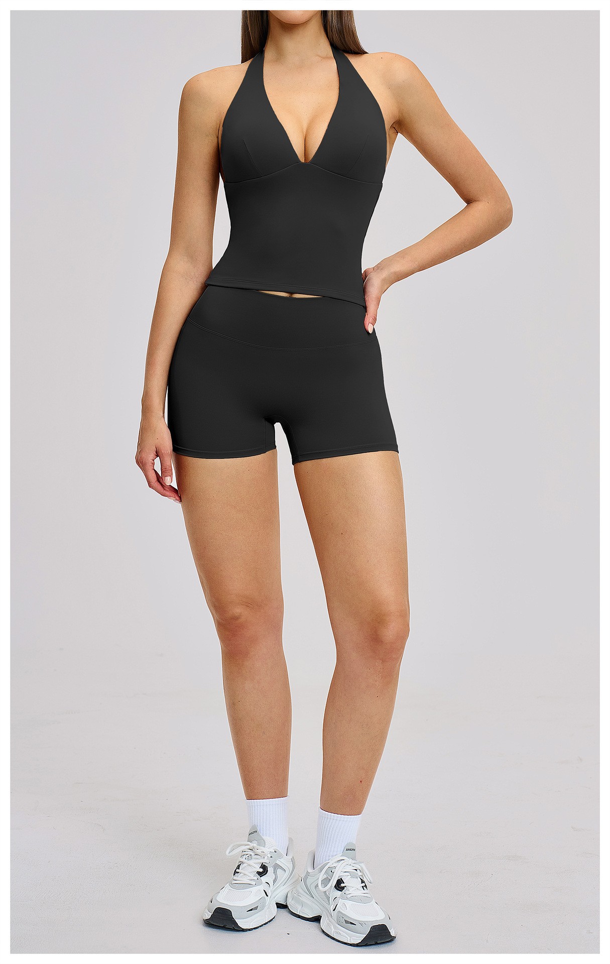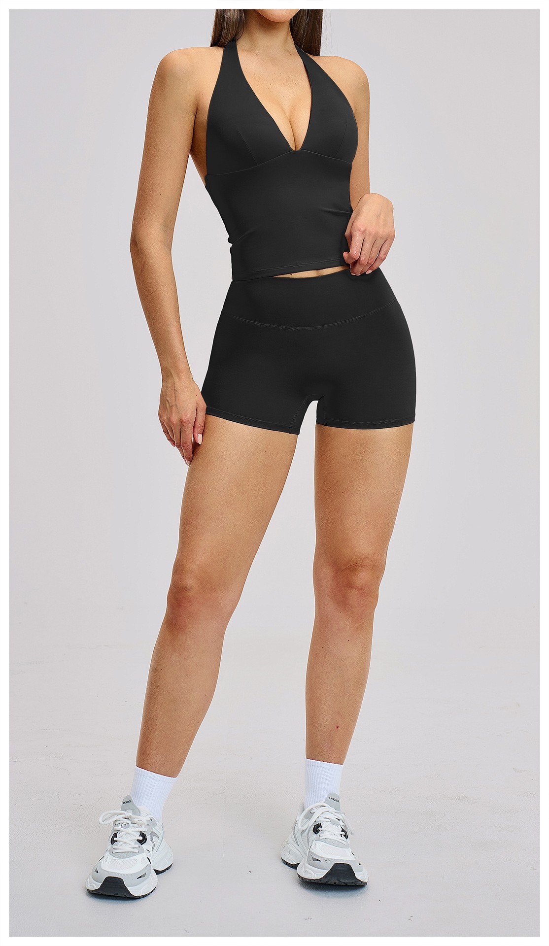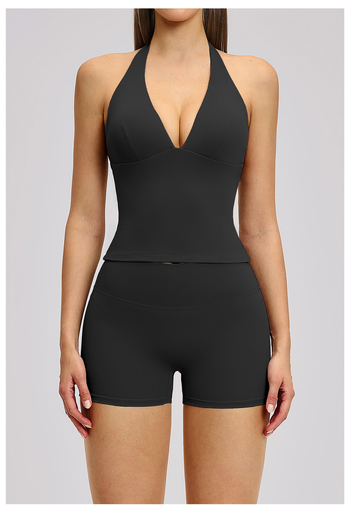 Women’s Custom Yoga Tank Top with Built-in Bra Pad Halter Backless High Stretch Yoga Set