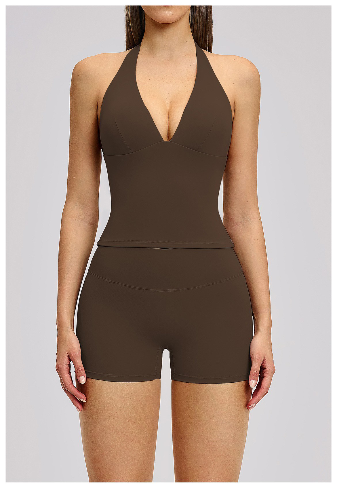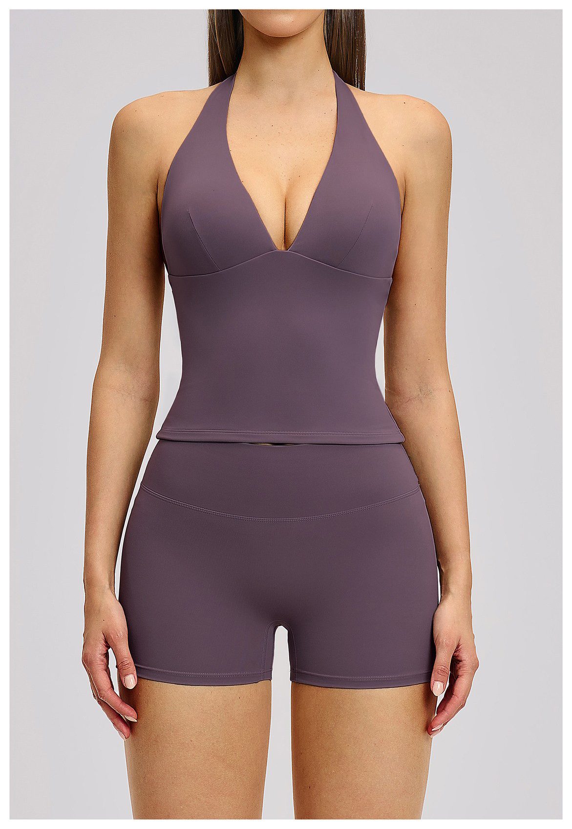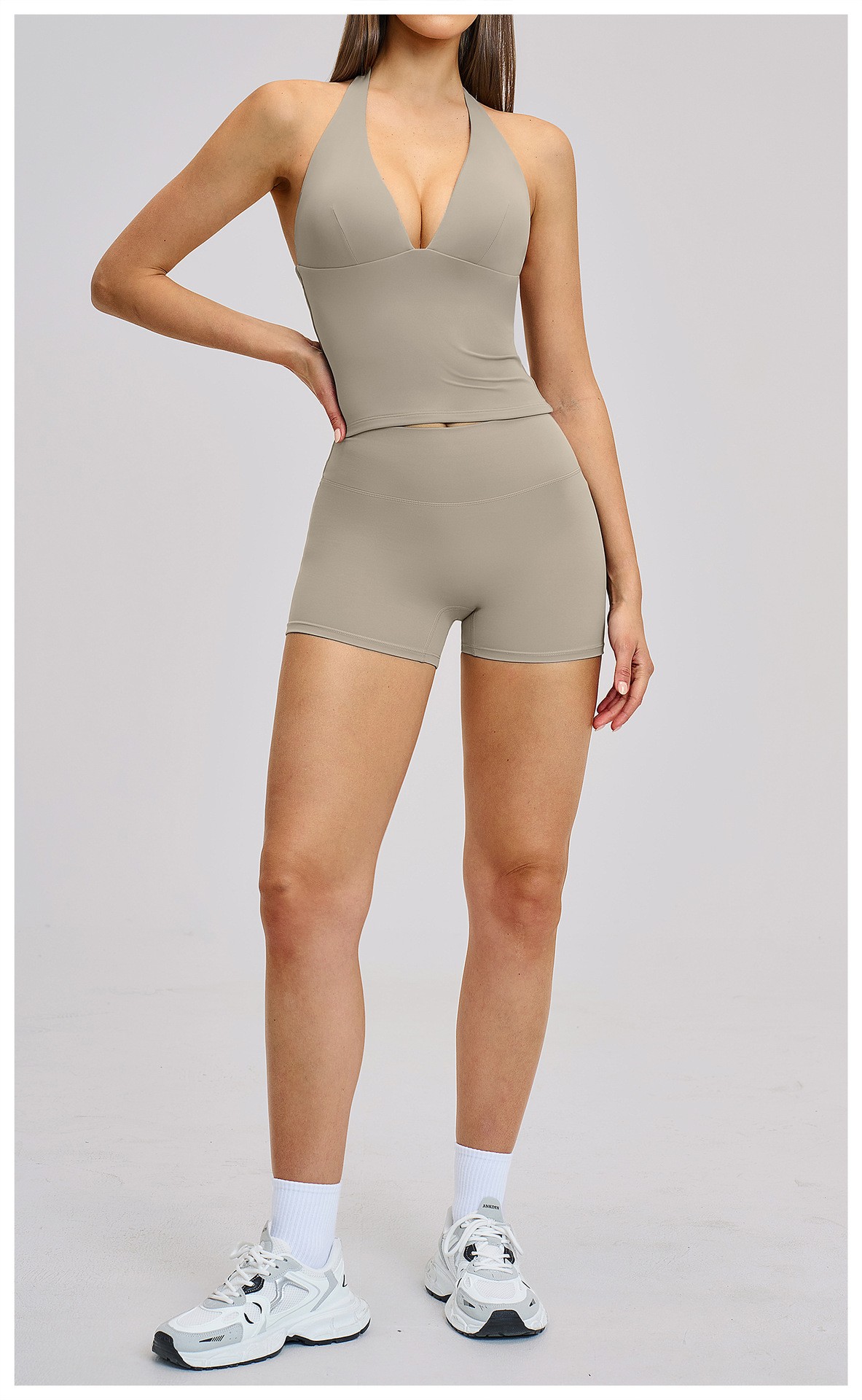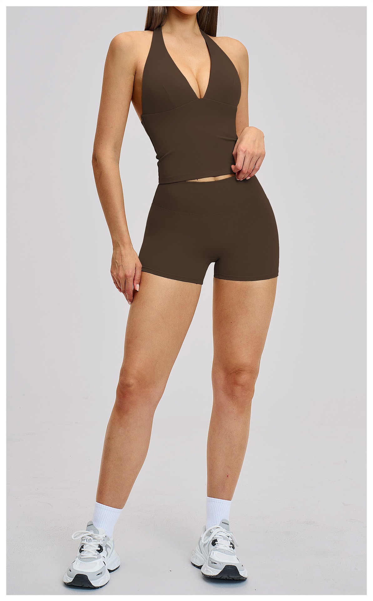 Women’s Custom Yoga Tank Top with Built-in Bra Pad Halter Backless High Stretch Yoga Set