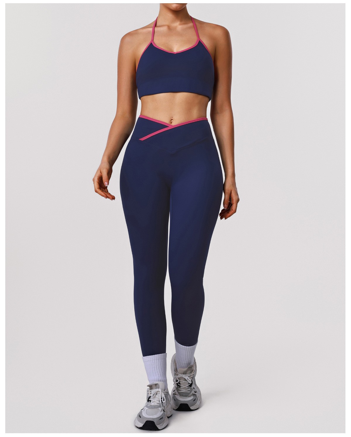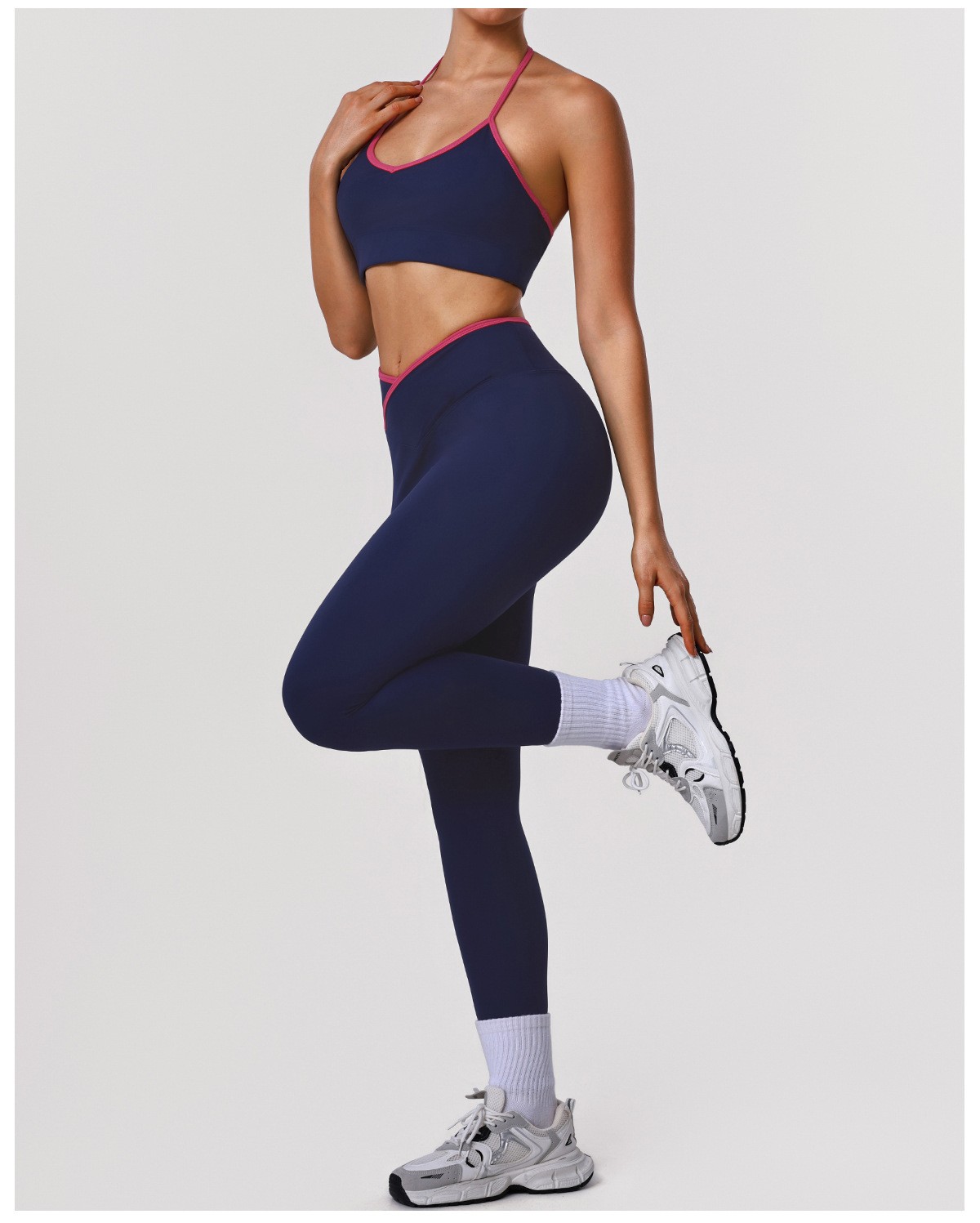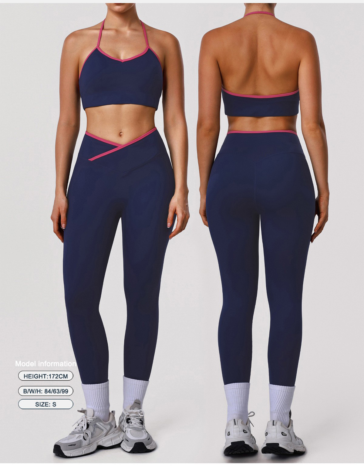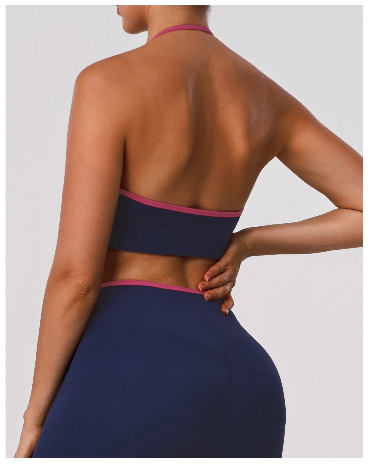 Women’s Customizable Halter Neck Yoga Sports Bra Set – High-Elastic Comfortable Open Back Activewear for Yoga & Fitness