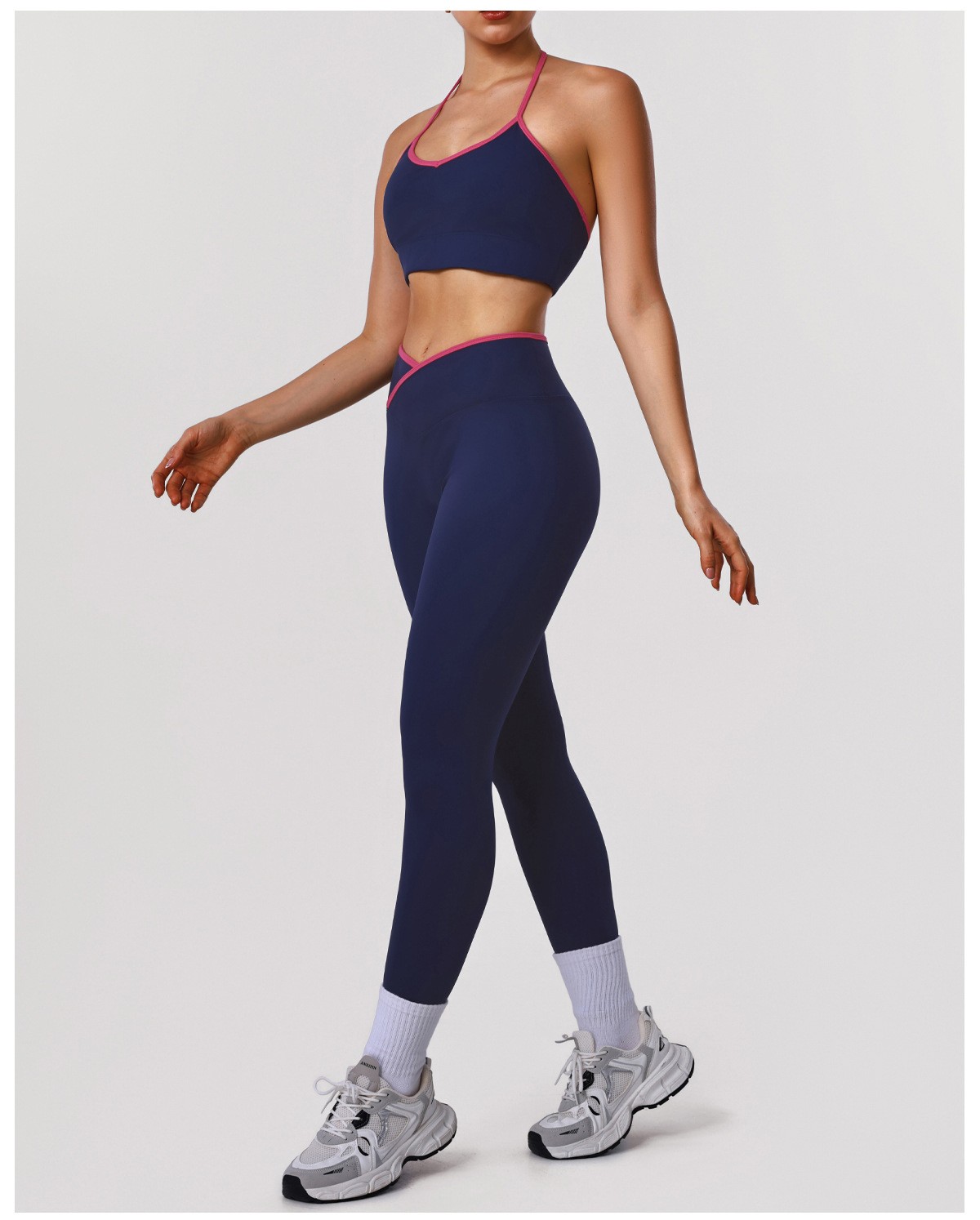 Women’s Customizable Halter Neck Yoga Sports Bra Set – High-Elastic Comfortable Open Back Activewear for Yoga & Fitness