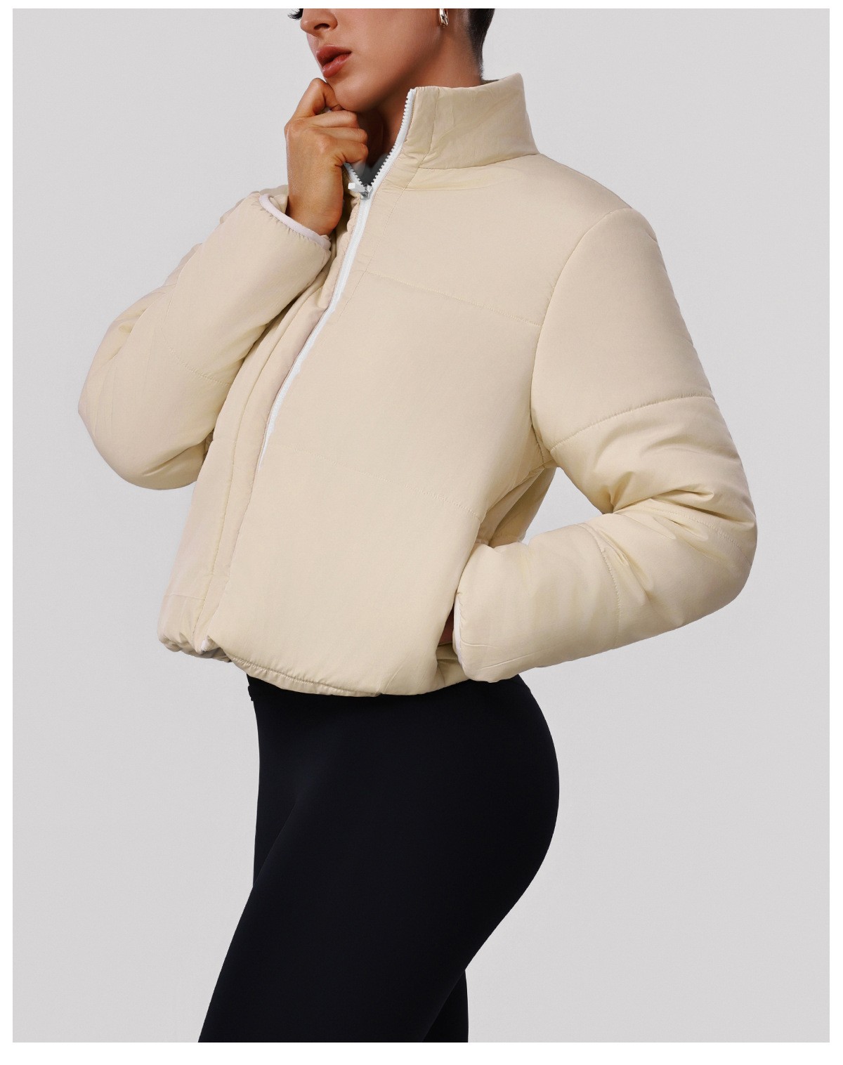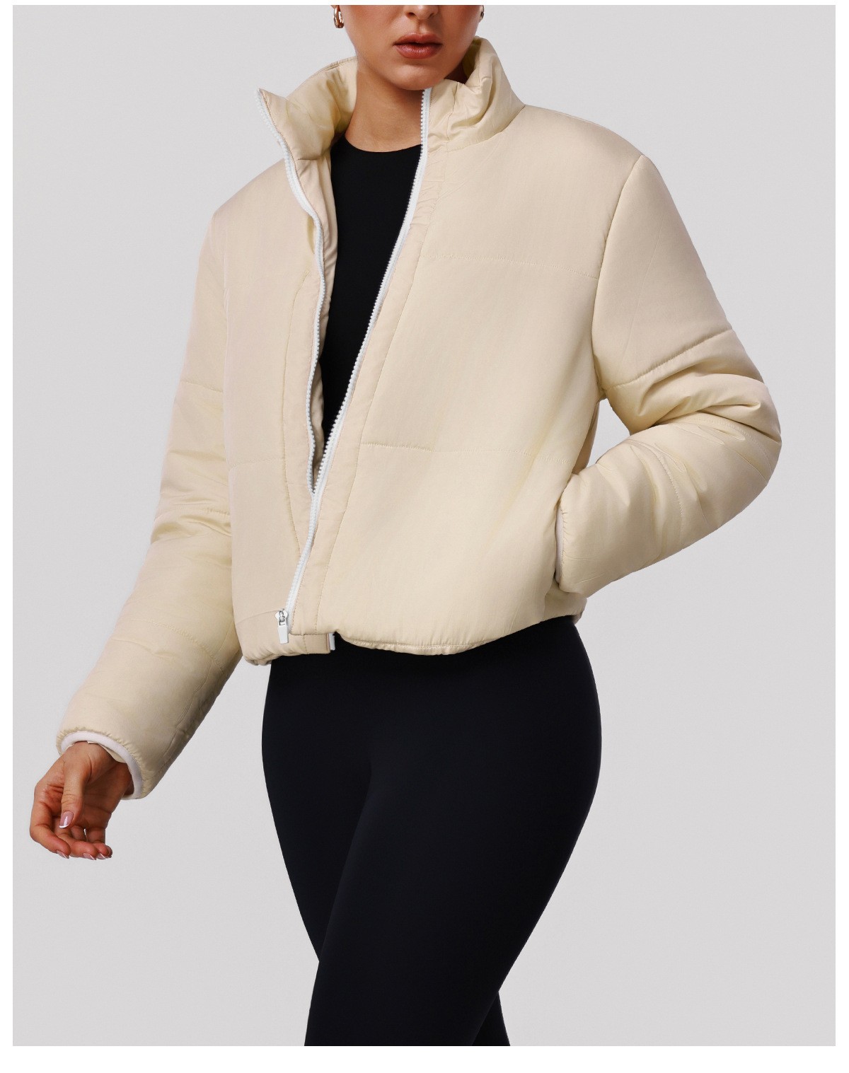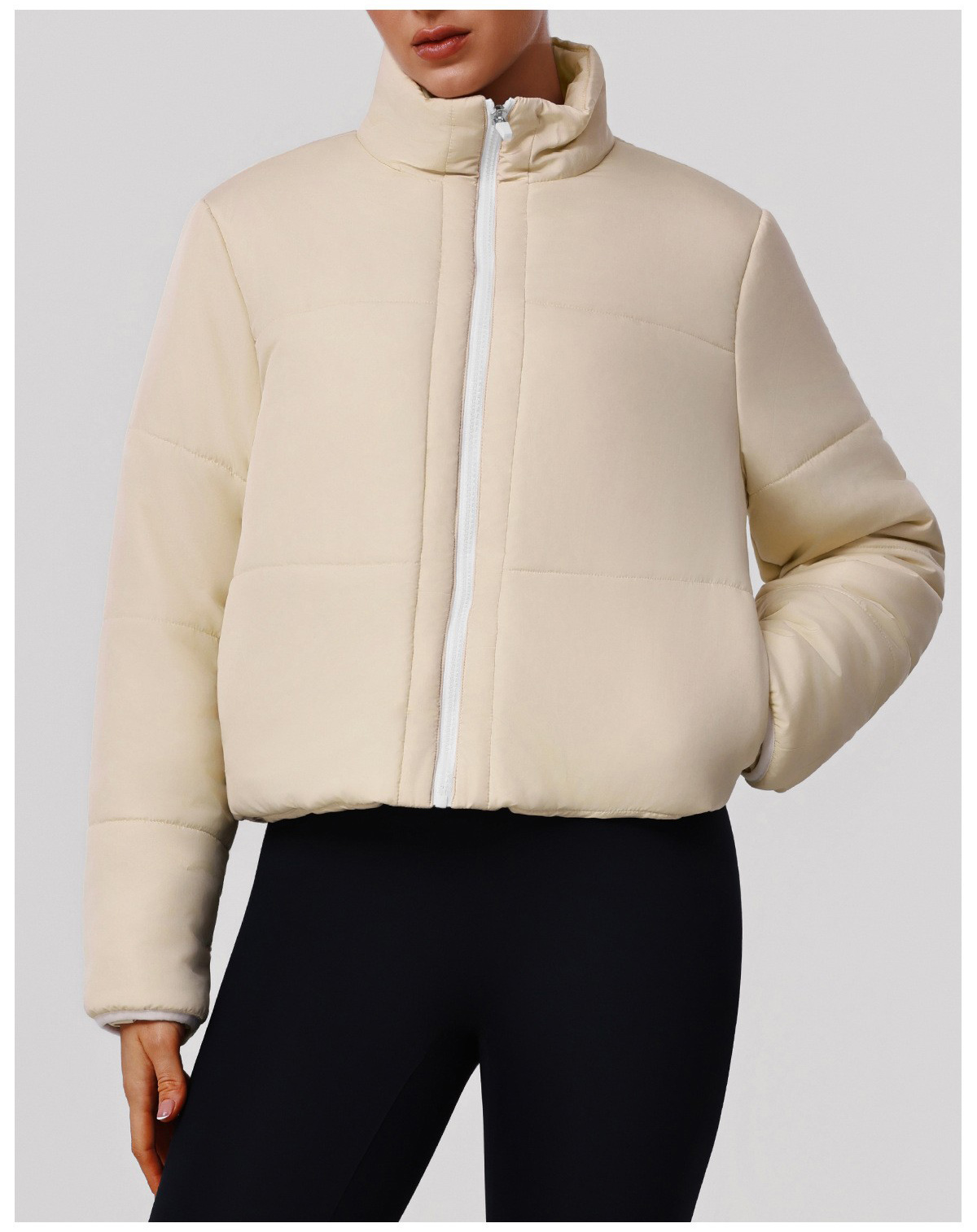 Women’s Customizable Slim-Fit Winter Cotton Jacket – Thick Windproof Outdoor Sports Coat with Zipper for Running & Fitness