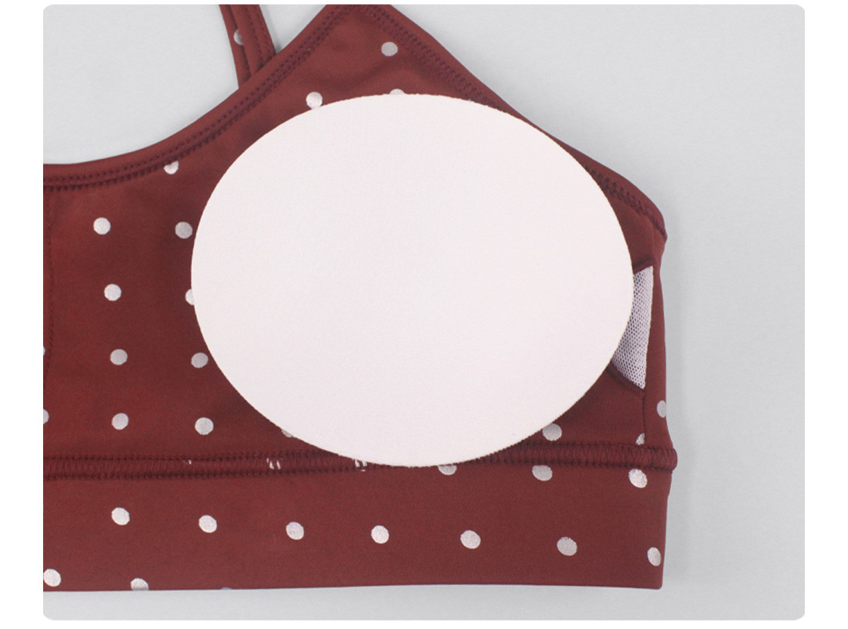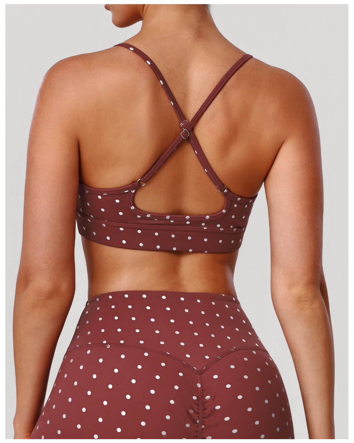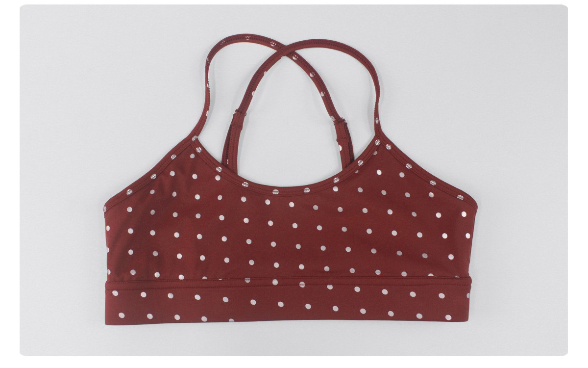 Women’s Customizable US/EU Shockproof Sports Bra – Silver Hot-Stamped Polka Dot Thin Strap High-Elastic Yoga Fitness Bra