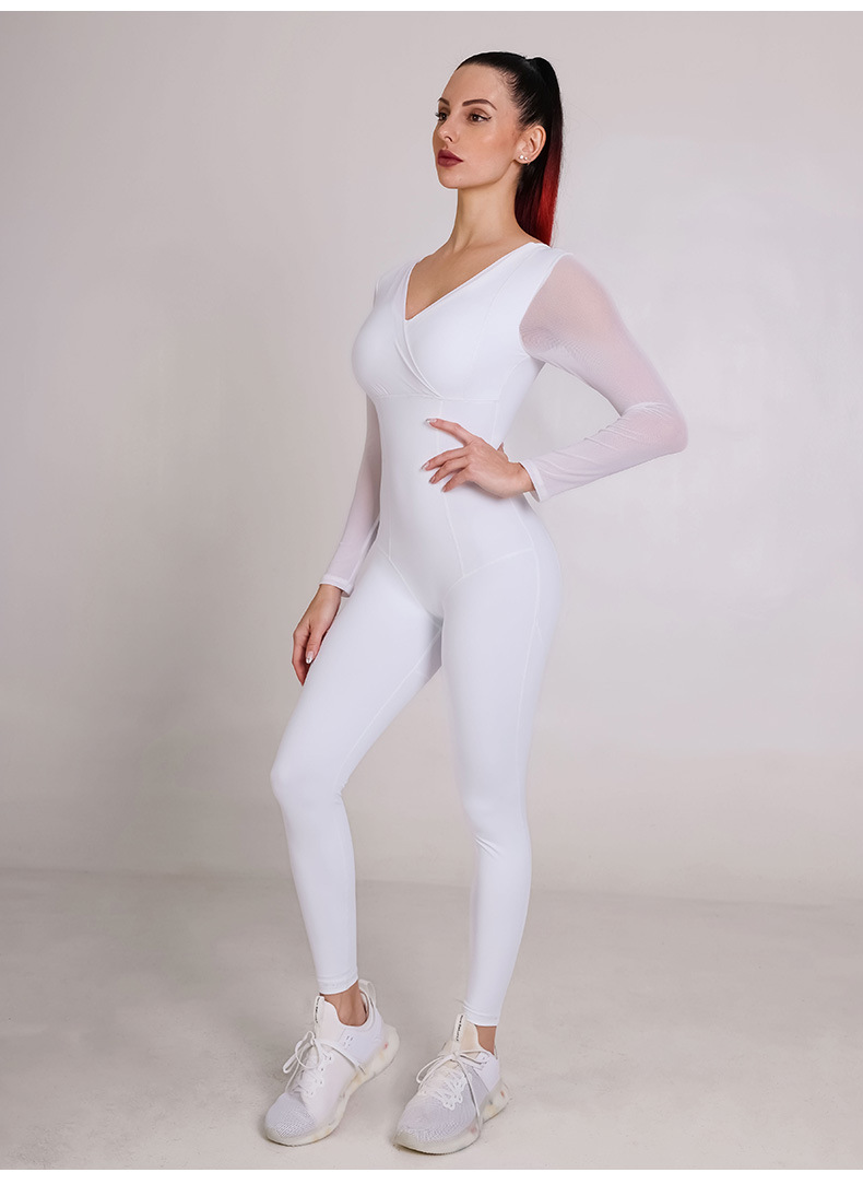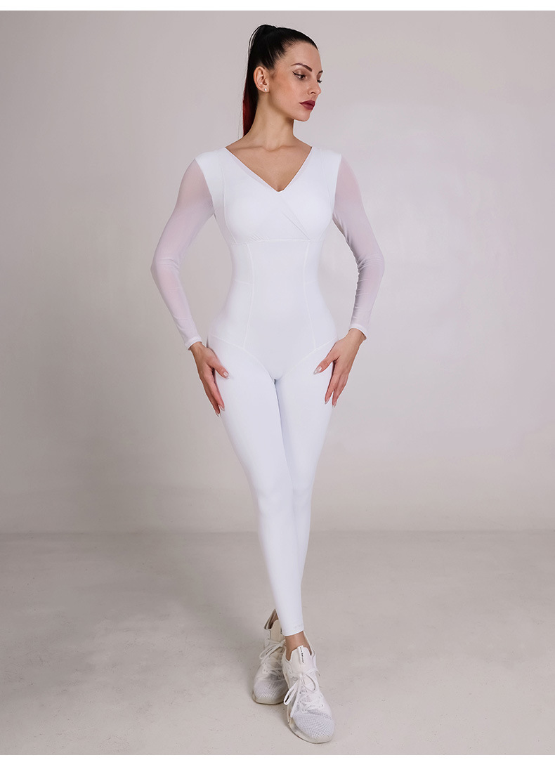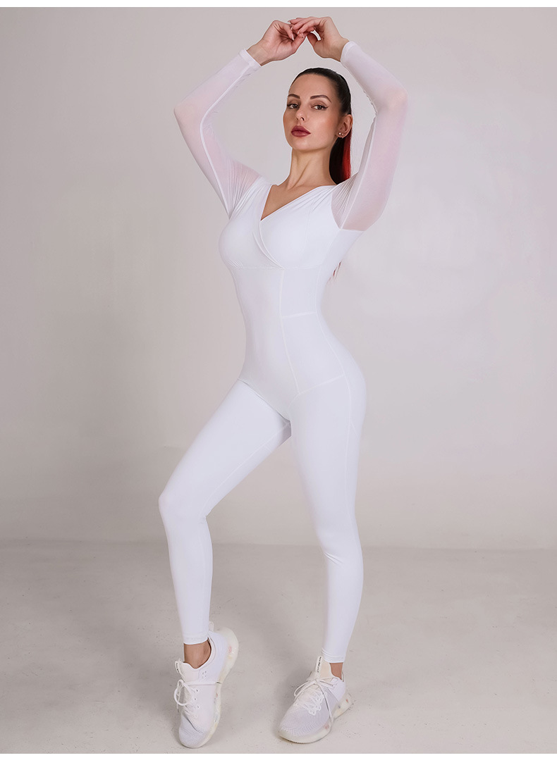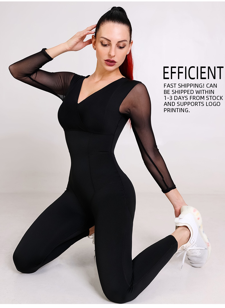 Womens dance wear long sleeve mesh patchwork one piece yoga wear active jumpsuits